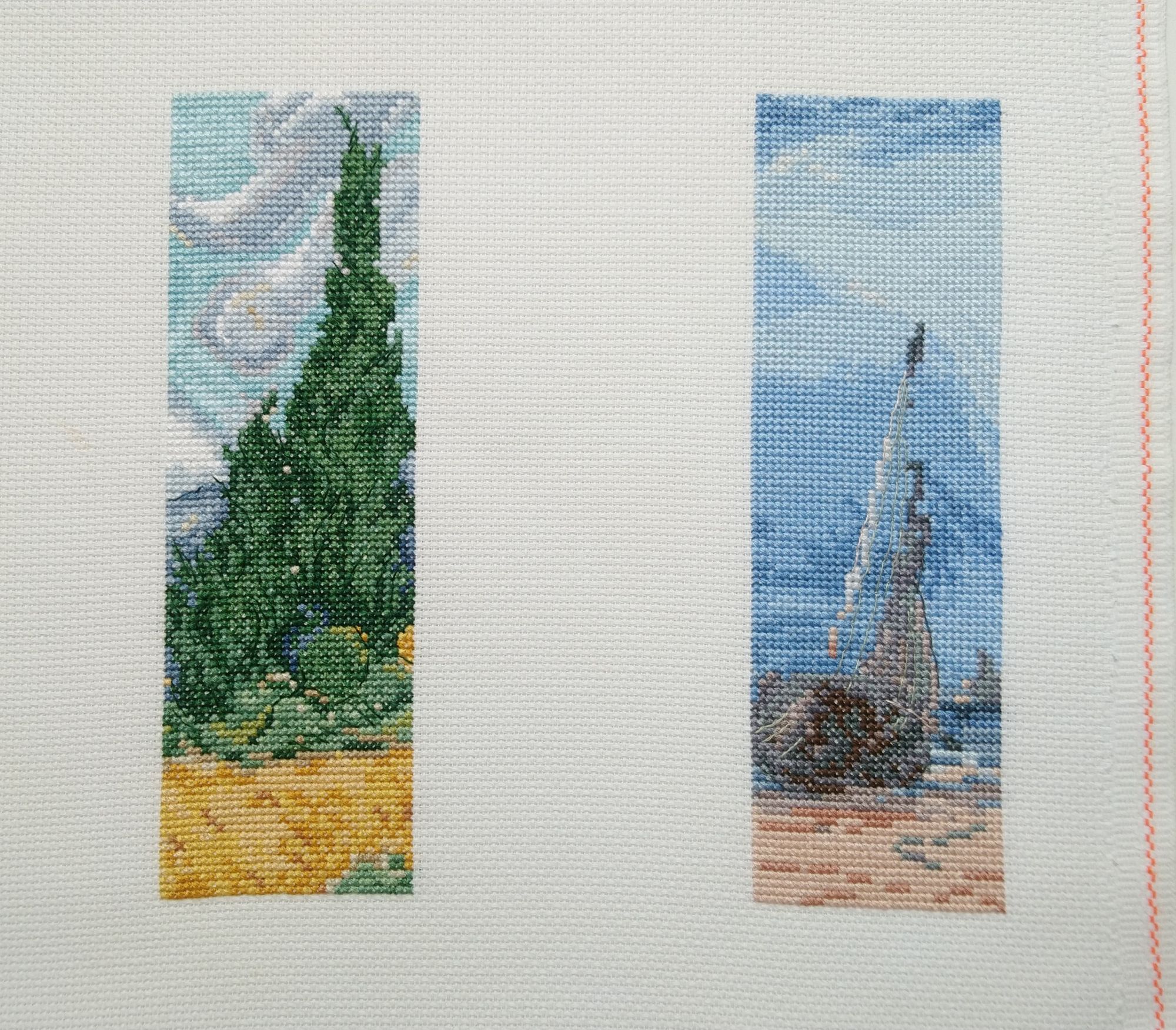 17 июня 2023 И снова здравствуйте! Небольшой отчет, дабы не забыть о том, что вышито. Коротко - рукоделие вытягивает, отвлекает и врачует. Татуся, Таня, все фото не в гайку Итак, есть три готовых работы 1. Heritage 396, "Winter Village" , или "Зимняя колонка" как прозвали ее в Клубе или "Смеркалось" - кодовое название по моей версии. Когда-то Наташа, Raduga777 написала пост, в котором рассказала нам о местах, где Клейтон рисовал свои акварели https://forum.stitch.su/topic/4880/?do=findComment&comment=2264599 Так вот, колонка эта, или насос, реально существующий старинный объект, находится в дер. Вестмилл, графство Хартфордшир. Деревушка небольшая, ухоженная и уютная. Коттеджи в ней построены в разных стилях, а церковь, что виднеется на дальнем плане, носит имя Святой Марии. На фотографиях деревушки есть и уютная чайная, Tea room, где для вас приготовят пирожные и чудесные торты. Про насос , что расположен под черепичной крышей, попалась такая информация (перевела через переводчик): " Около 1900 г., отреставрирован в 1975 г. Цилиндрический и куполообразный дубовый насосный механизм с рифленым корпусом из литого бронзового носика и наконечником из желудя. Дубовый шестигранный навес на 6 столбах с двускатной крышей с резным навершием.Резное украшение в стиле «Искусство и ремесла» на сужающемся цилиндрическом корпусе с покрытыми скошенным основанием, вертикальными рифлеными и формованными секциями, литой капителью и куполообразным верхом с резными перекрывающимися остроконечными листьями. Надпись вокруг заглавной буквы «ПЕРЕЕЗДИТЕ ПО ПУСТЫНЕ, И ТОГДА ВЫ МОЖЕТЕ СКАЗАТЬ, КАКОЕ СОКРОВИЩЕ СУЩЕСТВУЕТ В ПРОХЛАДНОМ ГЛУБОКОМ КОЛОДЦЕ». Вот и мой готовый круг Клейтона Он вышивался в рамках игры, процесс несколько затянулся, конечно. Сложности фирменных крестиков уже забылись. Так что, все прекрасно и круг вышивать мне понравилось. Параллельными процессами стали закладки от фирмы DMC. Канву из набора заменила на 14 аиду, чтобы облегчить процесс. Ниточек, хватило с лихвой. Процессы были не очень сложными, благодаря наличию двух схем - цветной и черно-белой. Они дополняли друг друга. Глянцевую бумагу еще как-то можно было перетерпеть. Но вышивать по одной цветной схеме было бы крайне сложно - темные оттенки на ней сливались абсолютно. Как и линии бэка, едва различимые на кипарисе (темно зеленые на темно-зеленом) Теперь две закладки готово La Ferte по мотивам картины английского живописца Ричарда Паркса Бонингтона Wheatfield Пшеничное поле с кипарисом Винсента Ван Гога. По мотивам, конечно. Совместное фото ближе по оттенкам к вышивке Остались еще солнечные подсолнухи Процесс обещает быть интересным, ибо в ключе замечены бленды. Всем добра и хорошего настроения! И большое спасибо, что заходите в гости Охотница, maui, Molly21 и 26 других сказали спасибо Поделиться сообщением Ссылка на сообщение