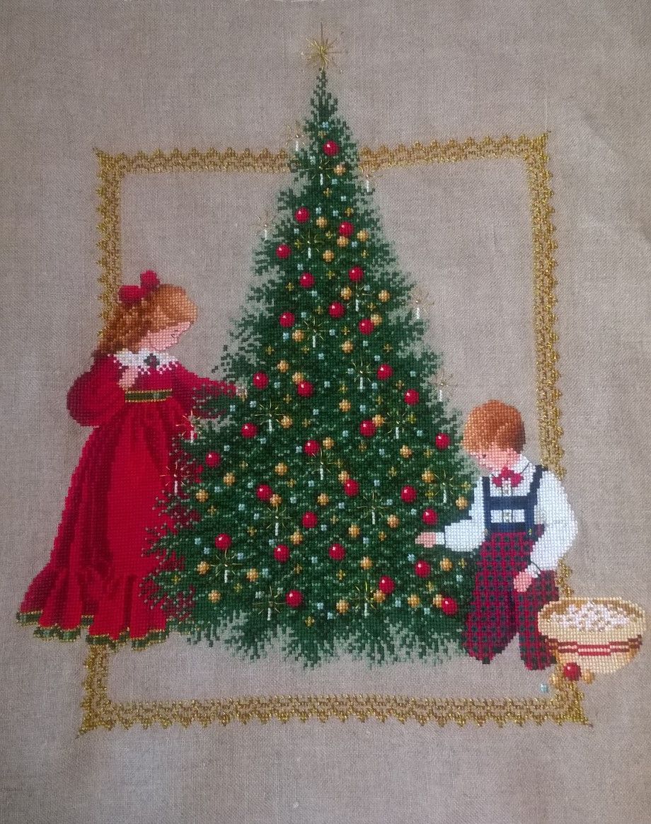 6 декабря 2016 Всем привет, принесла показать доделанную Ель! Вчера весь вечер провела за тем, что пришивала, порола, опять пришивала и опять порола бисер. Гирлянду решено было не делать, и распорола ореол из бисера над звездой. В итоге использовала только золотой цвет, белый и красный не понадобились. Впечатления от процесса остались самые хорошие, наибольшие трудности возникли с металликом, прямо завязла я с ним, во-первых, шить сложно, во-вторых, повторяющийся рисунок дался мне не с первого раза, путалась, порола, но потом вошла в ритм и все наладилось))) Работа выглядит очень красиво и нарядно, ни грамма вычурности, в моем представлении именно так и должна выглядеть новогодняя винтажная вышивка. Про проработку схемы скажу следующее: девочке, елке и орнаменту ставлю по 5 баллов, мальчику четверку, действительно неоправданное количество близких, совершенно неразличимых цветов. Сама схема мне была неудобна в силу своего размера, сканировать и распечатывать я ее не стала, шила с этой огромной простыни, складывала ее, в местах сгибов она тут же протерлась. Значки похожи, но я пользуюсь маркерами, поэтому тут проблем не возникло. Лен после стирки здорово сел и я подумала, что хорошо, что не стала стирать перед тем, как вышивать, дырочек бы не разглядела (на 36 льне шить не возьмусь, уже поняла это). Наташа Н, olnikva, Ярославовна и 19 других сказали спасибо Поделиться сообщением Ссылка на сообщение