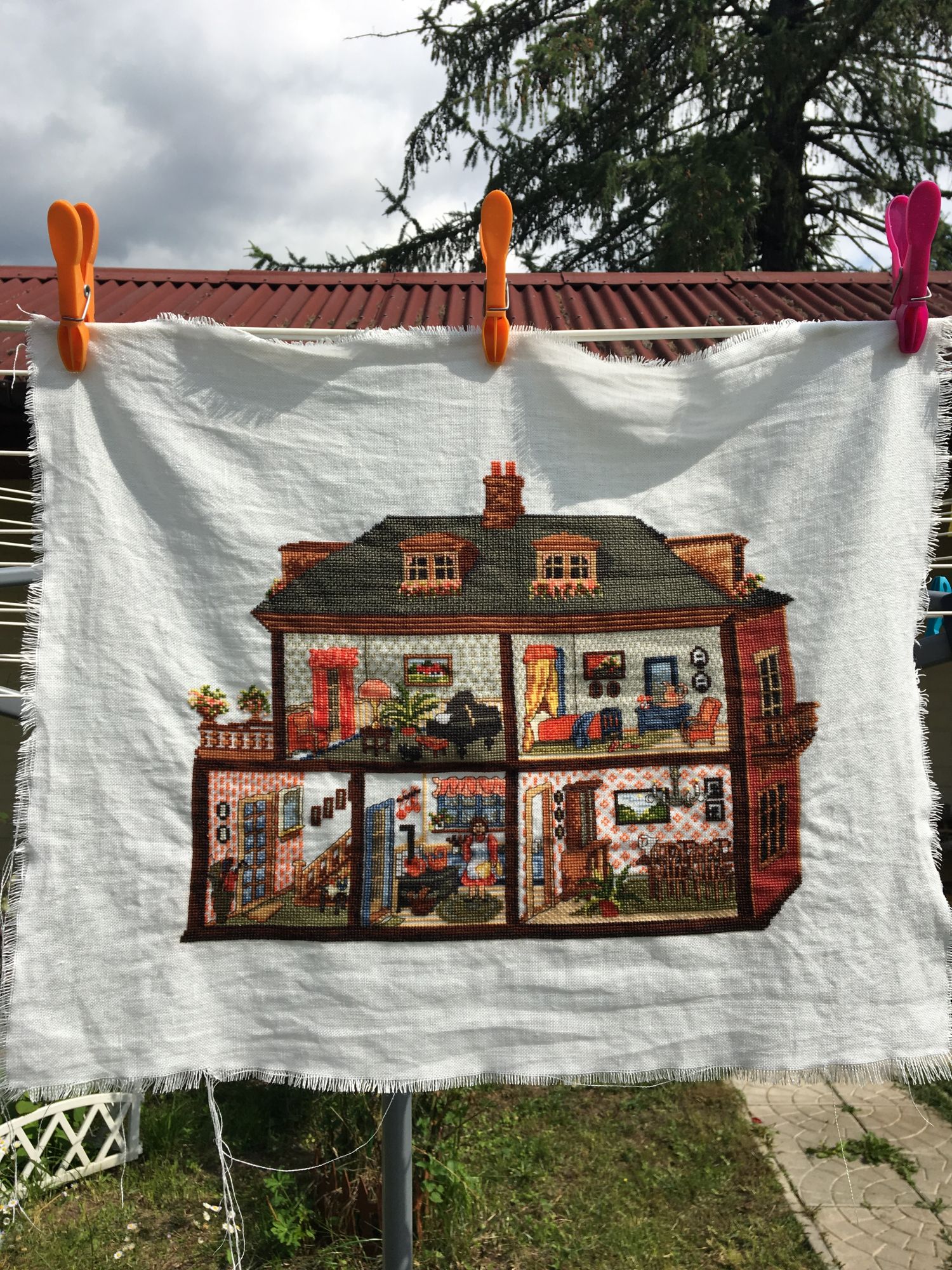7 августа 2019 Девочки, всем привет! Не стану долго растекаться мысль по древу- показываю законченный Домик от Permin! Рояль и серый кот, Начало хозяйской спальни Мокрый домик, потому такой яркий, подсохший домик на фоне основного домика, итоговый домик после глажки. Размер вышивки получился 33 на 25 см, смотрится очень прикольно! Впечатления от отшива хорошие, хотя в схеме были мелкие ошибки, особенно на втором этаже - где-то пропущен крестик, где-то один значок заменен на другой, где-то нарисован лишний Я бы с удовольствием вышила еще один подобный дизайн, чтобы получилась серия. Никаких сложностей не возникло, все вышивается крестом в две нити, и два значка ( обои) - крестом в одну. Самое интересное для меня было шить стены-окна-крышу-вазоны, а из комнат-спальню. Ну, вот- вроде, все рассказала, всем спасибо за внимание! ( про следующий процесс не спрашивайте, я его шью, но показывать буду, когда полностью закончу) ЛюдмилаЕр, Аринесса , irisheckin и 37 других сказали спасибо Поделиться сообщением Ссылка на сообщение