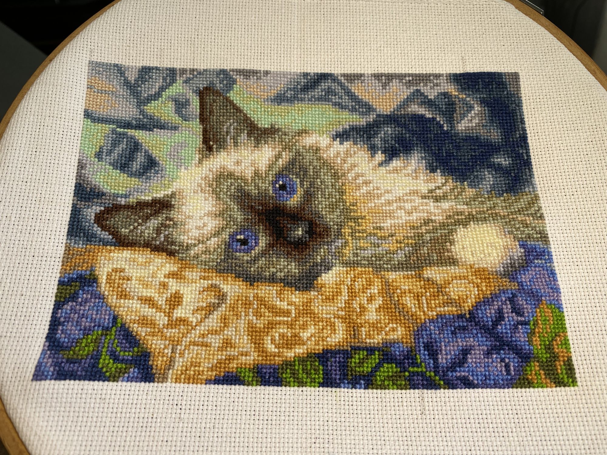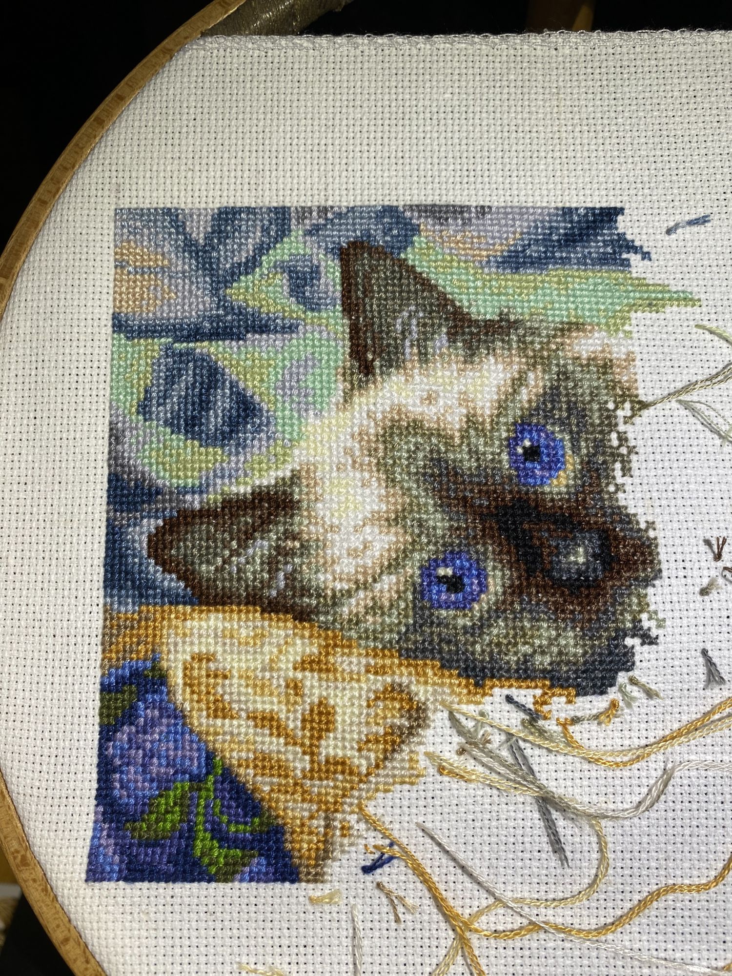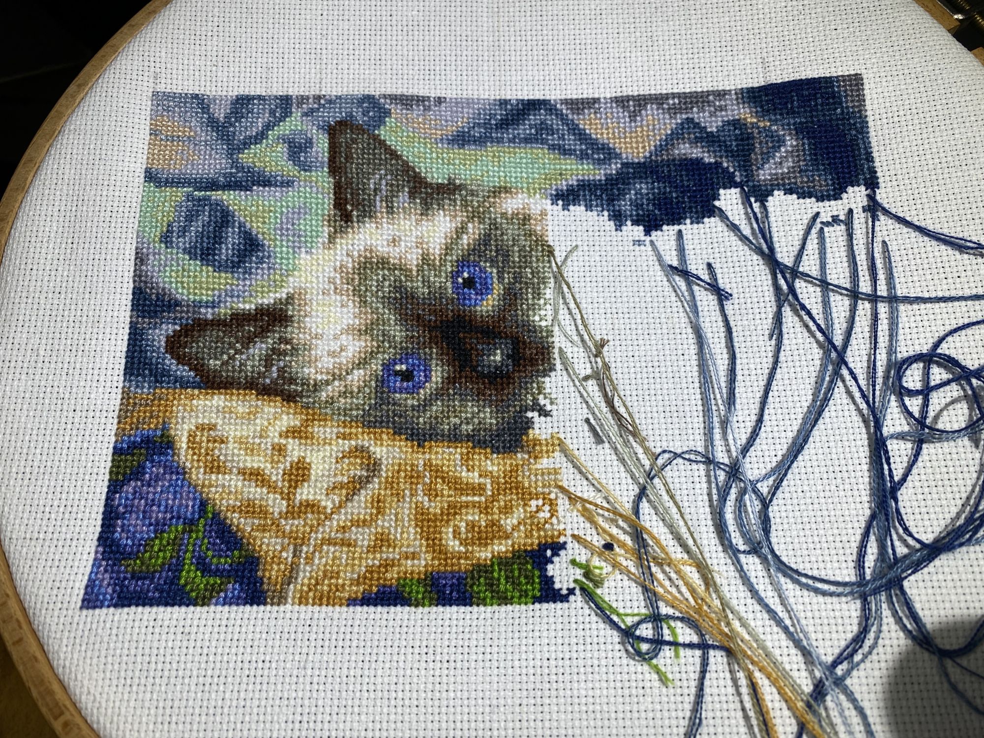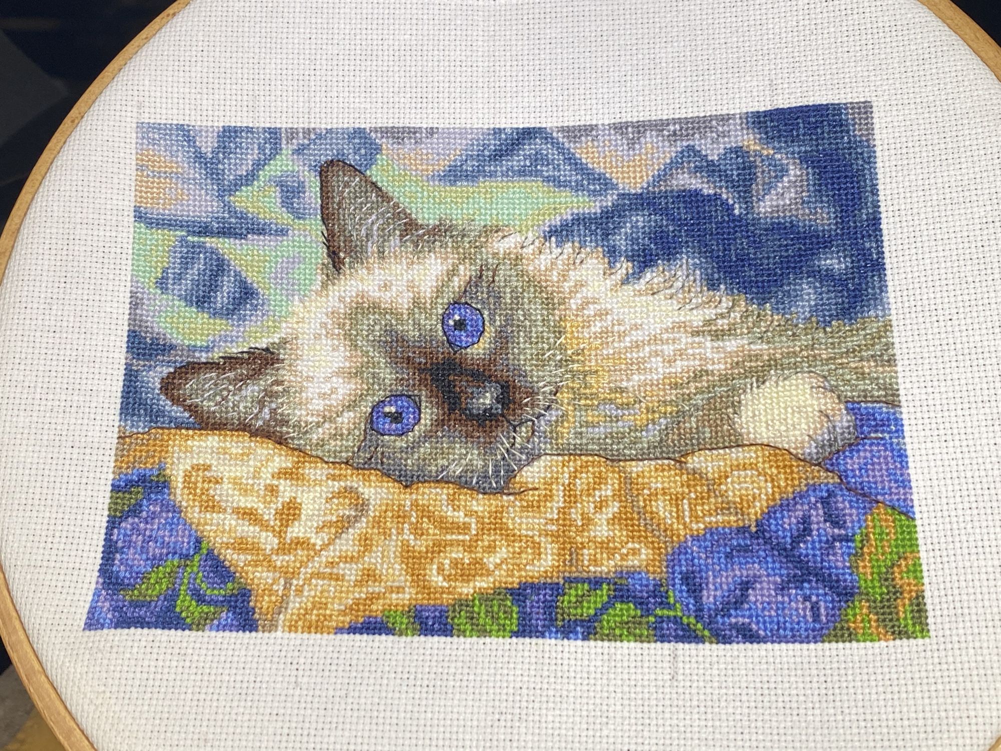 2 сентября 2022 "Речушка на опушке" (Panna). Польстилась на милый пейзаж и сто раз пожалела о приобретении. Весь набор - сплошные разочарования. Отрез канвы ( готовая работа шириной в 54 см) не помещалась на станок шириной 60см, а отрезать не рискнула. Пришлось разместить с поворотом и вышивать боком. Полукрест в 4 нити на канве 16 превращает любимое рукоделие в тяжкий труд. Почему не крестик? Вышиваю всегда "парковкой, а полукрест к ней так и не приспособила. Большинство отттенков закончились на двух третях работы и пришлось подбирать из запасов. Хорошо, что это пейзаж, в нем подмены не заметны. Очень хотелось бросить и забыть, но закончила из принципа. Так еще в результате после стирки и отпаривания стал заметен перекос работы по диагонали (потому что полукрест на большой ширине). Совет всем, кто готов взяться за этот набор: вышивайте кретиком в две нитки и сразу подберите запас ниток. Некоторые оттенки используются в блендах, там их можно смело заменить на близкие по цвету. Nata86, Хозяйка смешных зверей, Palex и 1 другой сказали спасибо Поделиться сообщением Ссылка на сообщение