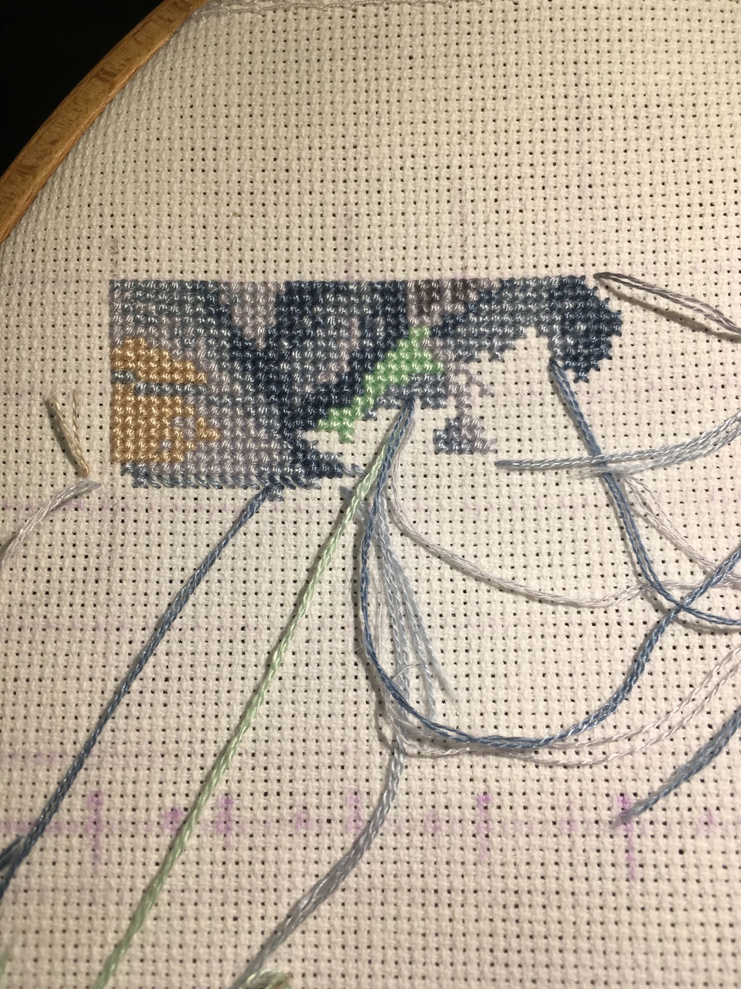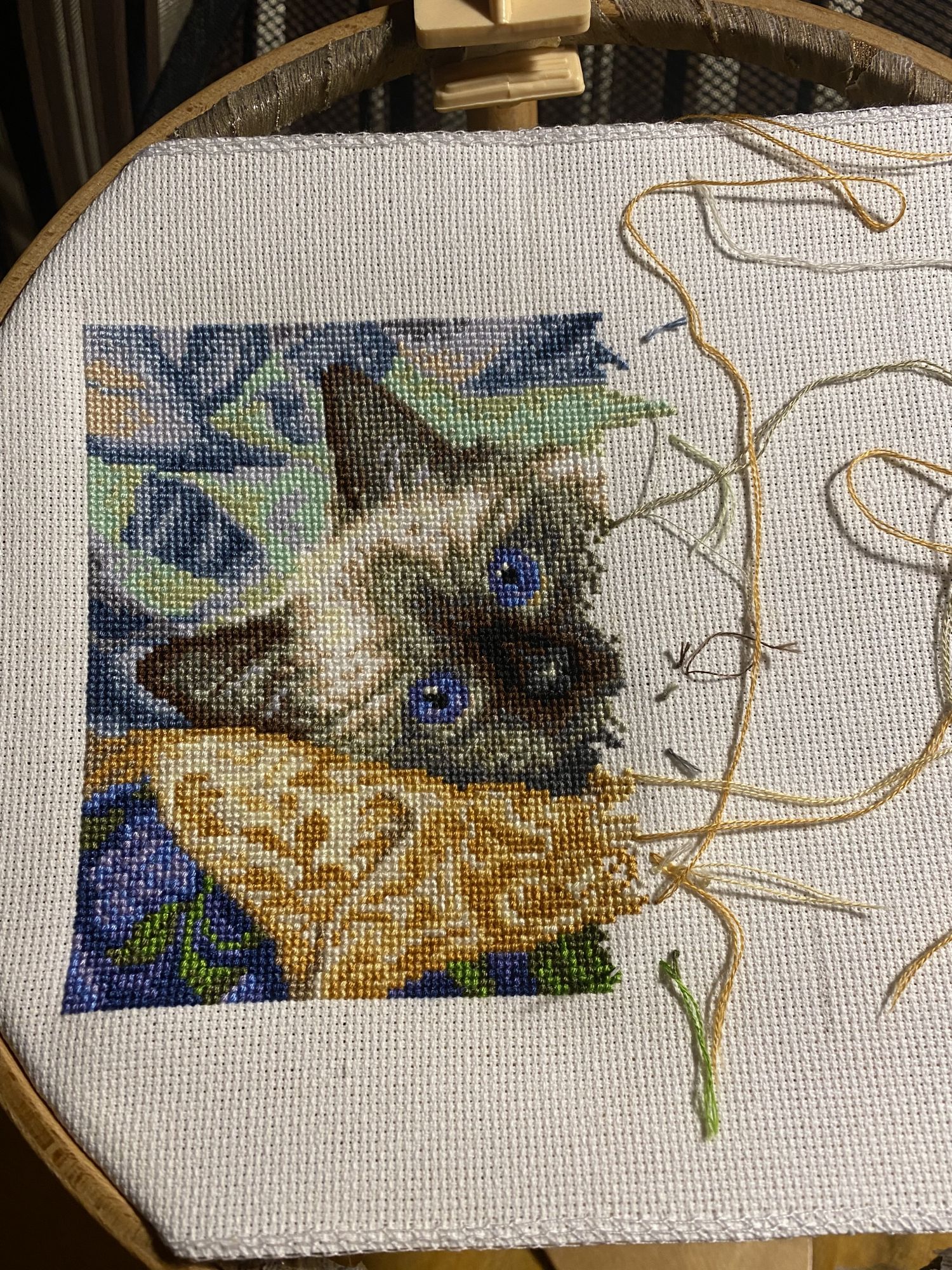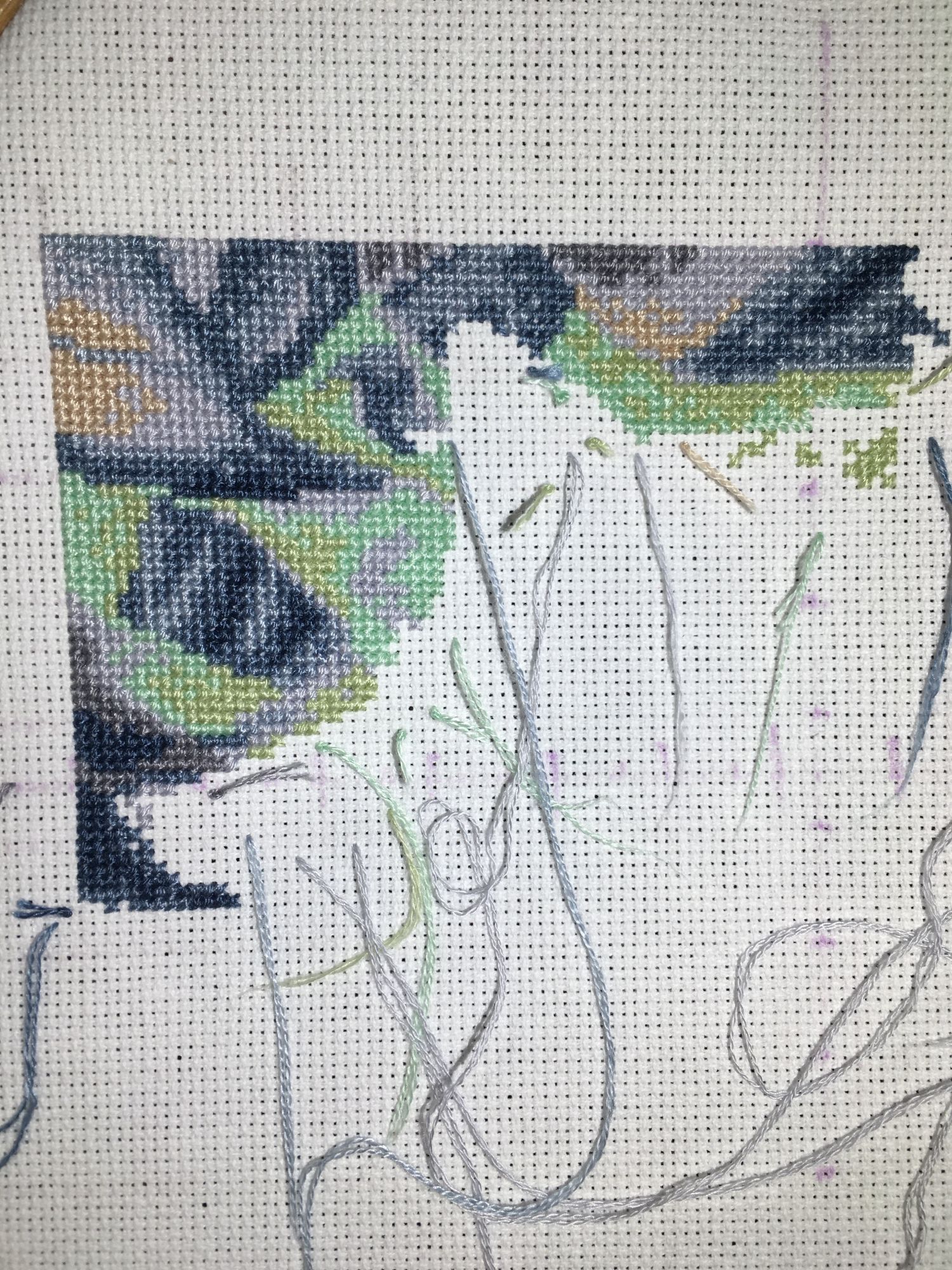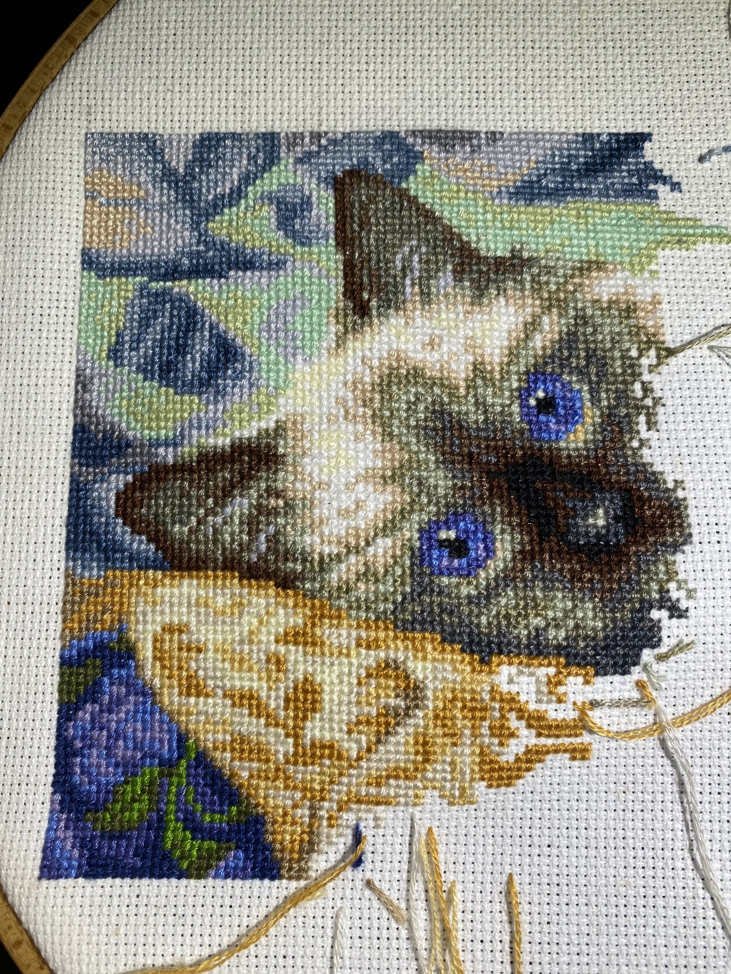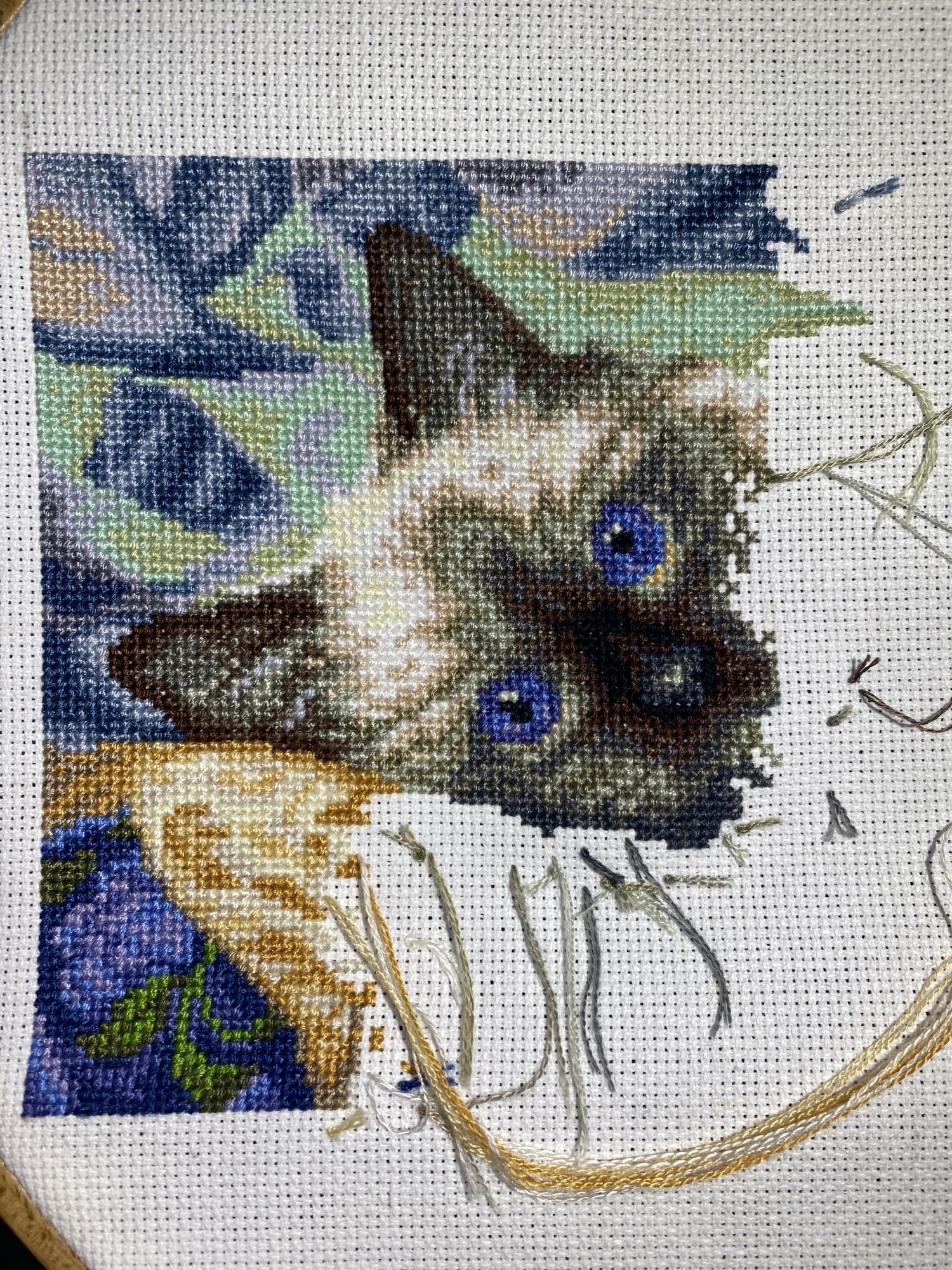 2 сентября 2022 "Речушка на опушке" (Panna). Польстилась на милый пейзаж и сто раз пожалела о приобретении. Весь набор - сплошные разочарования. Отрез канвы ( готовая работа шириной в 54 см) не помещалась на станок шириной 60см, а отрезать не рискнула. Пришлось разместить с поворотом и вышивать боком. Полукрест в 4 нити на канве 16 превращает любимое рукоделие в тяжкий труд. Почему не крестик? Вышиваю всегда "парковкой, а полукрест к ней так и не приспособила. Большинство отттенков закончились на двух третях работы и пришлось подбирать из запасов. Хорошо, что это пейзаж, в нем подмены не заметны. Очень хотелось бросить и забыть, но закончила из принципа. Так еще в результате после стирки и отпаривания стал заметен перекос работы по диагонали (потому что полукрест на большой ширине). Совет всем, кто готов взяться за этот набор: вышивайте кретиком в две нитки и сразу подберите запас ниток. Некоторые оттенки используются в блендах, там их можно смело заменить на близкие по цвету. Nata86, Хозяйка смешных зверей, Palex и 1 другой сказали спасибо Поделиться сообщением Ссылка на сообщение