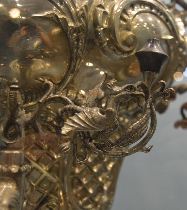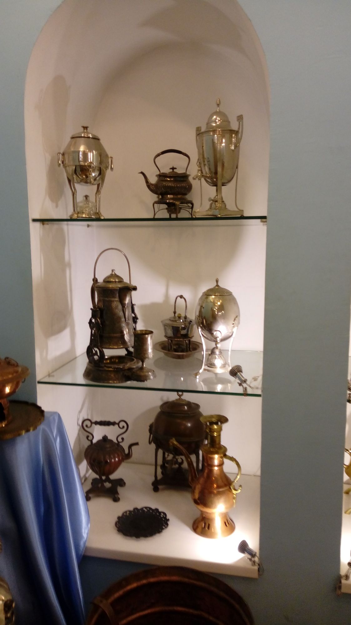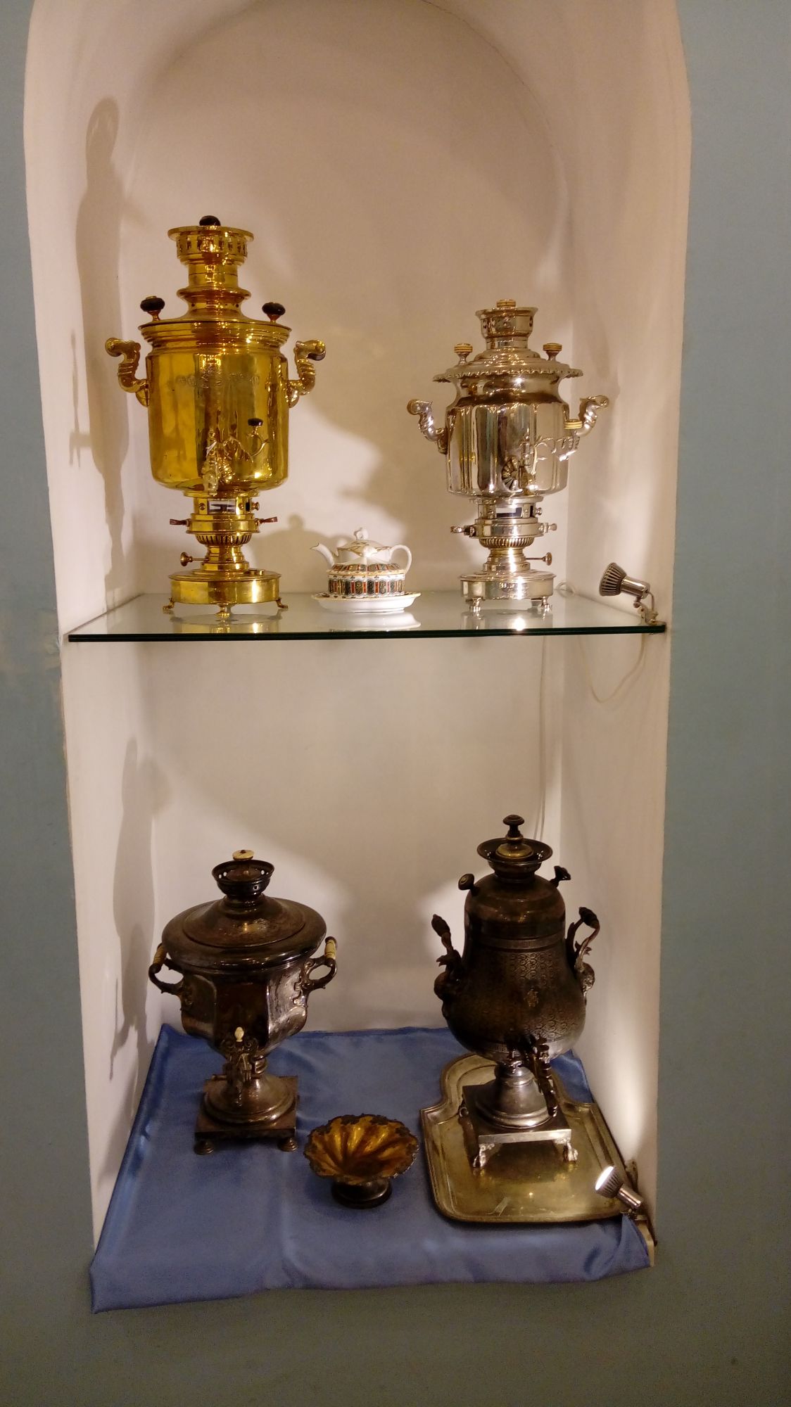 8 августа 2017 И с вашего позволения немного подробнее о некоторых экземплярах коллекции. это один из первых самоваров а это прототип современной мультиварки Этот самовар называется Леший. а тот красавец справа Каскад, остальные Пауки. этот самовар из гостиницы в которой умер Есенин, этот самовар называется Посвящён искушению , а как справится с искушением? Подсказка под носиком самовара Это распятие ( надеюсь видно) то есть искушение победит Вера. Еще один необычный самовар и чашечка с завода Кузнецова. А этот самовар путешествовал в поезде Колчака. Он был изготовлен для Сибирской железной дороги Этот самовар был подарен императорской семье из восточной страны дракончики видно? этого красавца изготовили для императора Николая ||, зная о его любви к балету., но так и не подарили , так как раскрылся его роман с балериной. этот красавец был подарен Екатериной своему незаконнорожденному сыну это подарок императору Александру слева, справа гусарский самовар. это уникальные фарфоровая чайная пара, ей 300 лет и таких всего 8 во всем мире. самовар в виде кубка, в форме шишк., а этот самовар мастер сделал в подарок на свадьбу дочери он в сердечках у этого самовара интересный эффект, под определенным углом около ручки в самоваре отражаются купола( сфотографировать не получилось). Этот самовар сделан в форме первого Спутника Земли и был подобен Брежневу. а этот самовар был привезён из Украины, за два дня до закрытия границы и из него поят чаем всех гостей. надеюсь я вас не утомила своими рассказами. Завтра приглашу вас в музей Колоколов. olnikva, Selinta, Lenara и 19 других сказали спасибо Поделиться сообщением Ссылка на сообщение