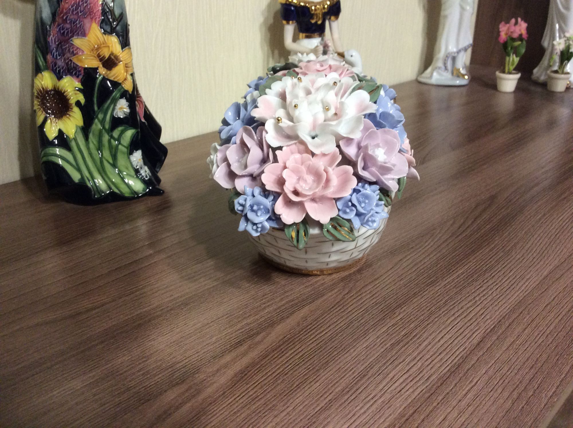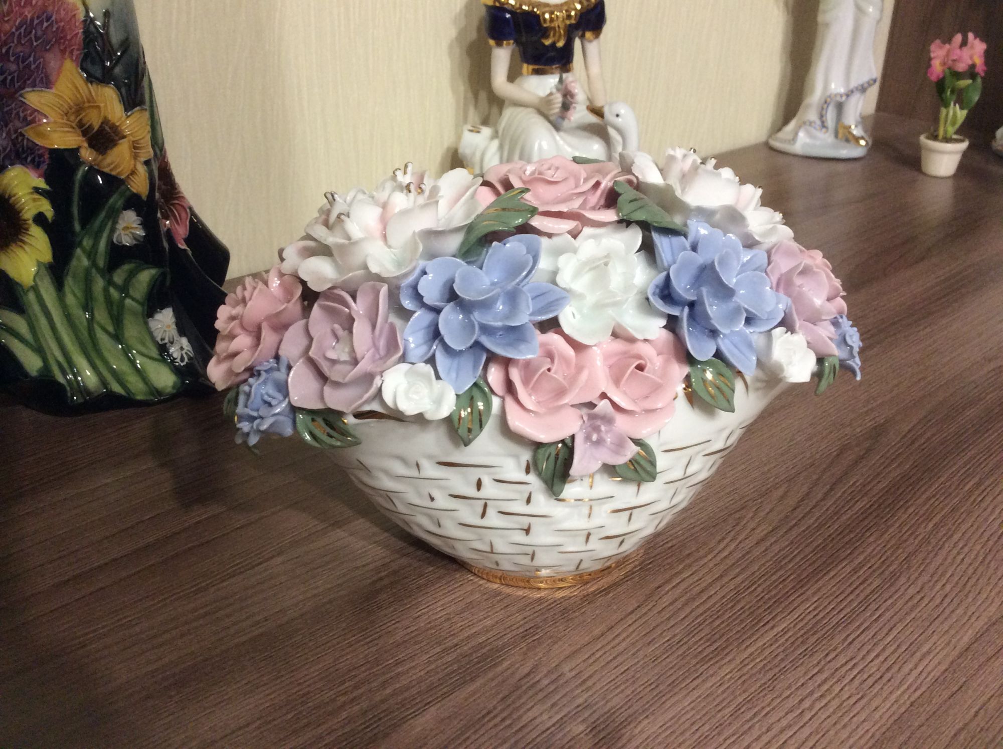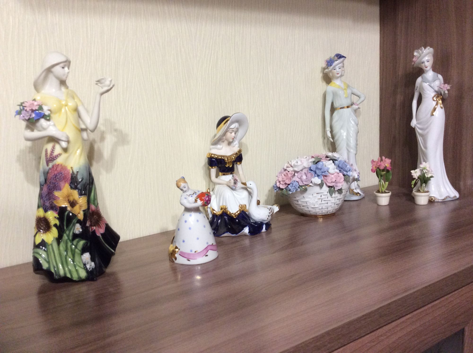 29 августа 2017 Вот как и обещала покажу вам своих девочек. Я уже некоторых показывала, но может кто не видел, так я повторюсь. И так это общий вид. ну и познакомимся поближе эту красавицу мне подарил сын на день рождение в этом году эти цветочная карзина- подарок коллег эта красавица живет у меня уже 12 лет с этих дамочек все начилось, их было 4 штуки, к сожалению 2 разбили. это дамочка из так называемого мягкого фарфора есть ещё вот такая дамочка , вот такой конь и вот такая птичка. А ещё вот такая чашка с блюдцем и ложечкой и очень тонкого фарфора увы подобные чашки в виде ромашки, колокольчика и хризантемы разбиты. Этой повезло больше, но без скола не обошлось. и из Тайланда были привезены вот такие орхидейки. Ну а коллекция гжельских фигурок сейчас убрана, пока нет возможности их выставить. nastygera, agapenok, Sky026 и 25 других сказали спасибо Поделиться сообщением Ссылка на сообщение