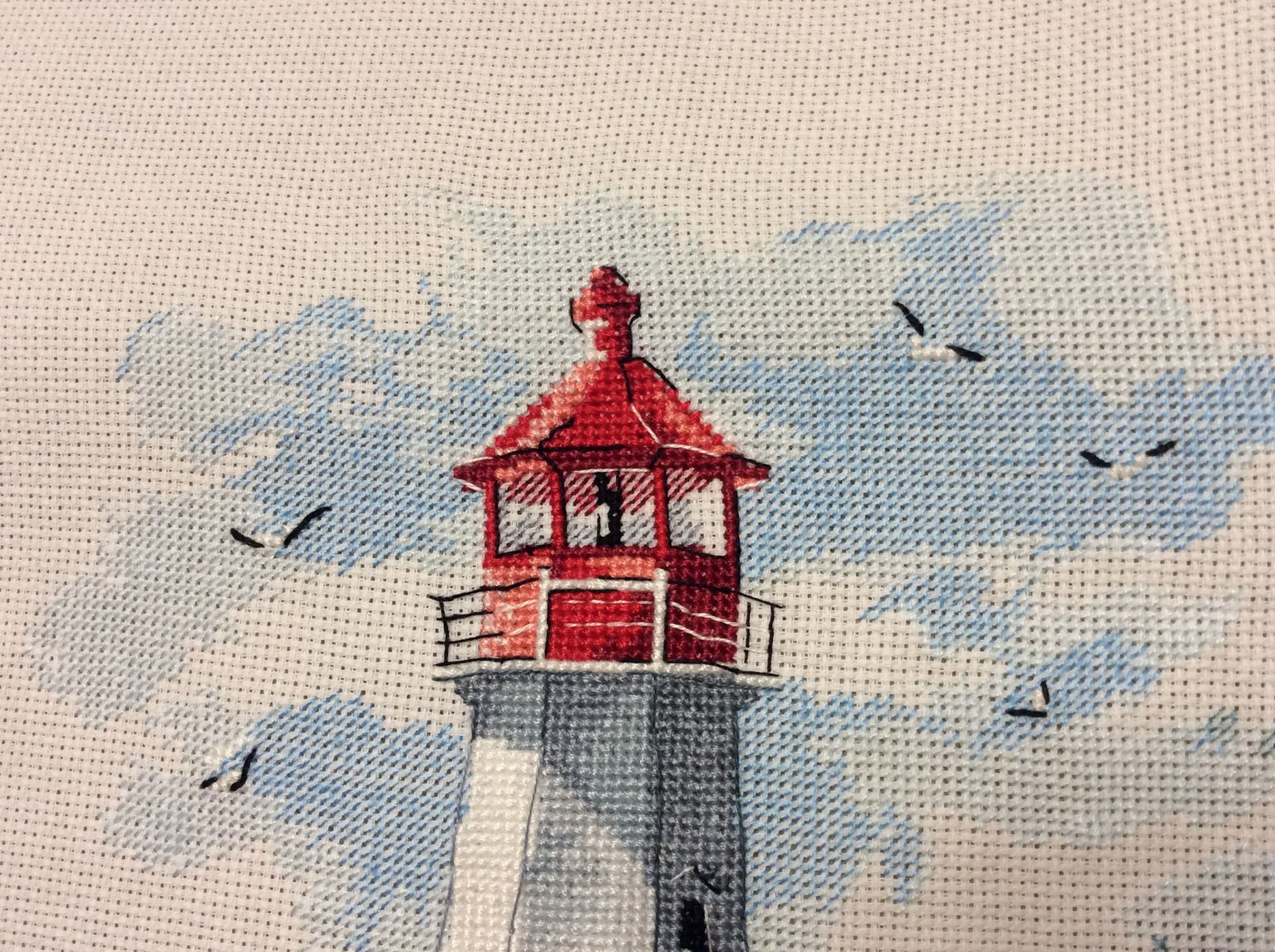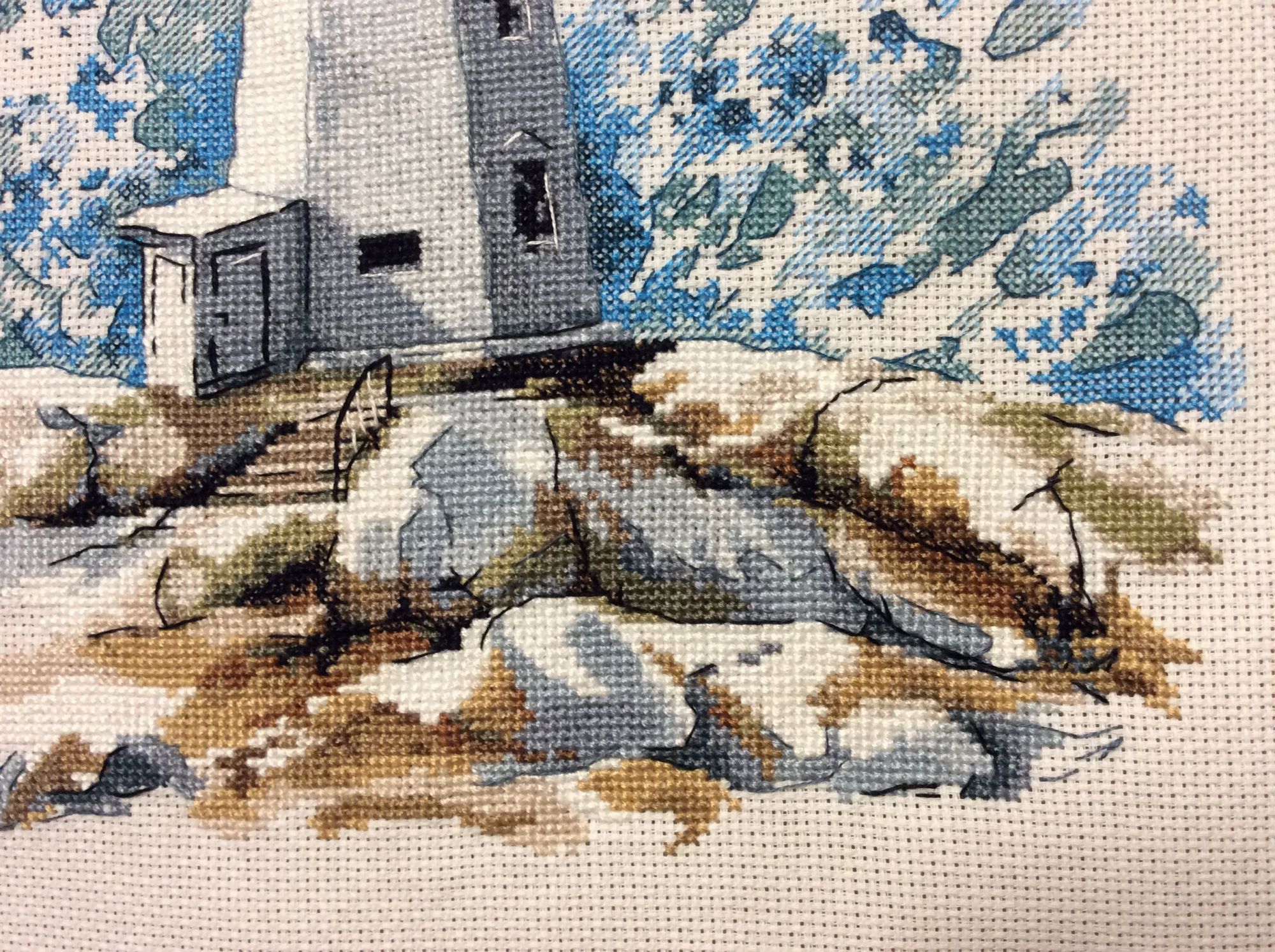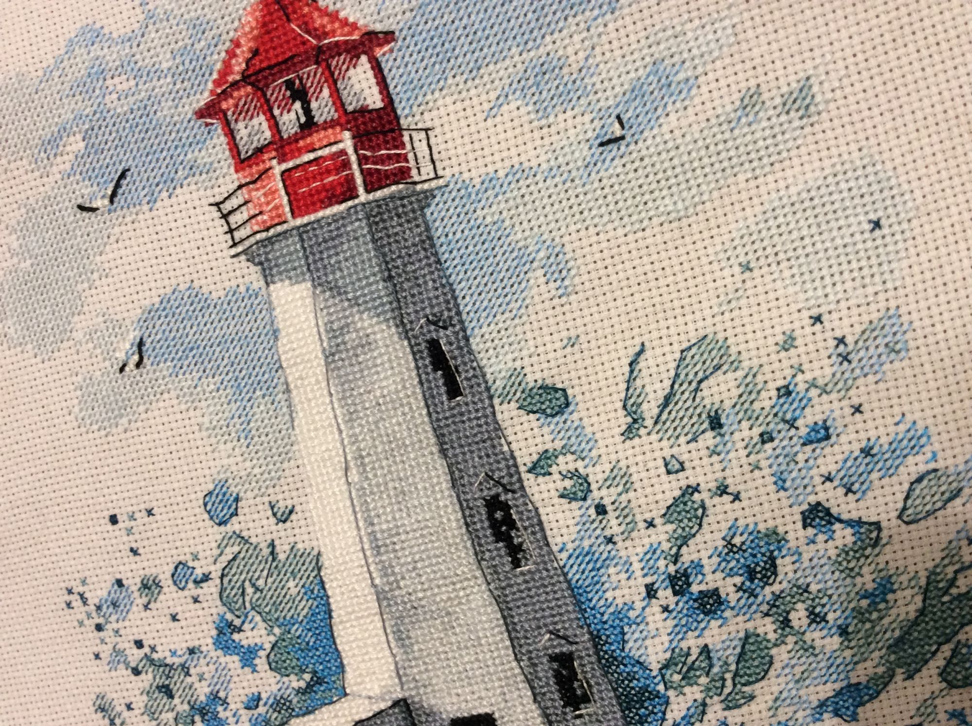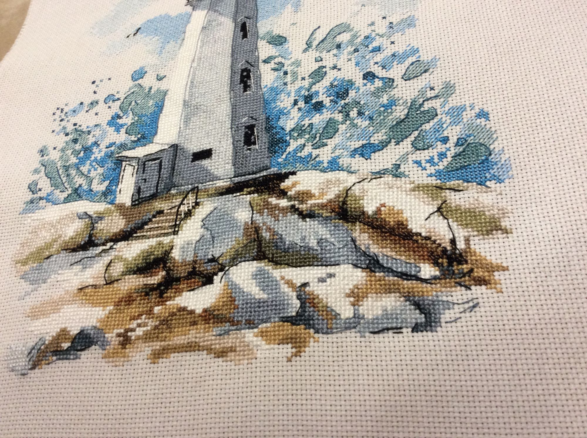 8 сентября 2017 Всем добрый день! Я обещала вчера показать маяк во всей красе, но вчера отрубился интернет, вот только что заработал и я бегом зеленить гаечку. И так маяк. Свет надежды. смотрите какой красавец получился( не зря я в него влюбилась с первого взгляда). Фото без бека и вот он во всей красе Немного впечатлений от набора. Я уже писала что чёрные и белые нитки просто отвратительного качества , все в катышках. В работе нитки тоже проявили себя не лучшим образом, пушились и узелковались. Канва.... ну терпимо конечно, но как я не старалась все равно есть перекос. Сама работа средней сложности, в валунах намешано много цветов и группы крестиков по две - три штуки, но на мой взгляд все оправдано. Бек не сложный, но на самом маяке сложно сделать швом назад иголка и я кое где заменила на выкладную нить. Я читала в галерее к фото первого отшива, что там нет одиночек ну если это не одиночки то не знаю что тогда это, ещё и бек вокруг этих отдиночек. все оправдано и это брызги, но одиночки есть. Ну а теперь по поводу некоторых ошибок с которыми я столкнулась в моей комплектации набора. Видите справа на ограждении чёрная вертикальная линия( не крайняя). Ее на фото обложки нет, а по схеме она есть. Я и так и так посмотрела и решила Ее оставить. на этом фото две ошибки: на перилах в схеме отсутствуют вертикальные белые линии. И на схеме так же отсутствует полоса бека, стык пристройки( входа) с самим маяком. На обложке набора все это есть. ну. Немного фоток Наталья2013, Мальва20, ЛюдмилаЕр и 24 других сказали спасибо Поделиться сообщением Ссылка на сообщение