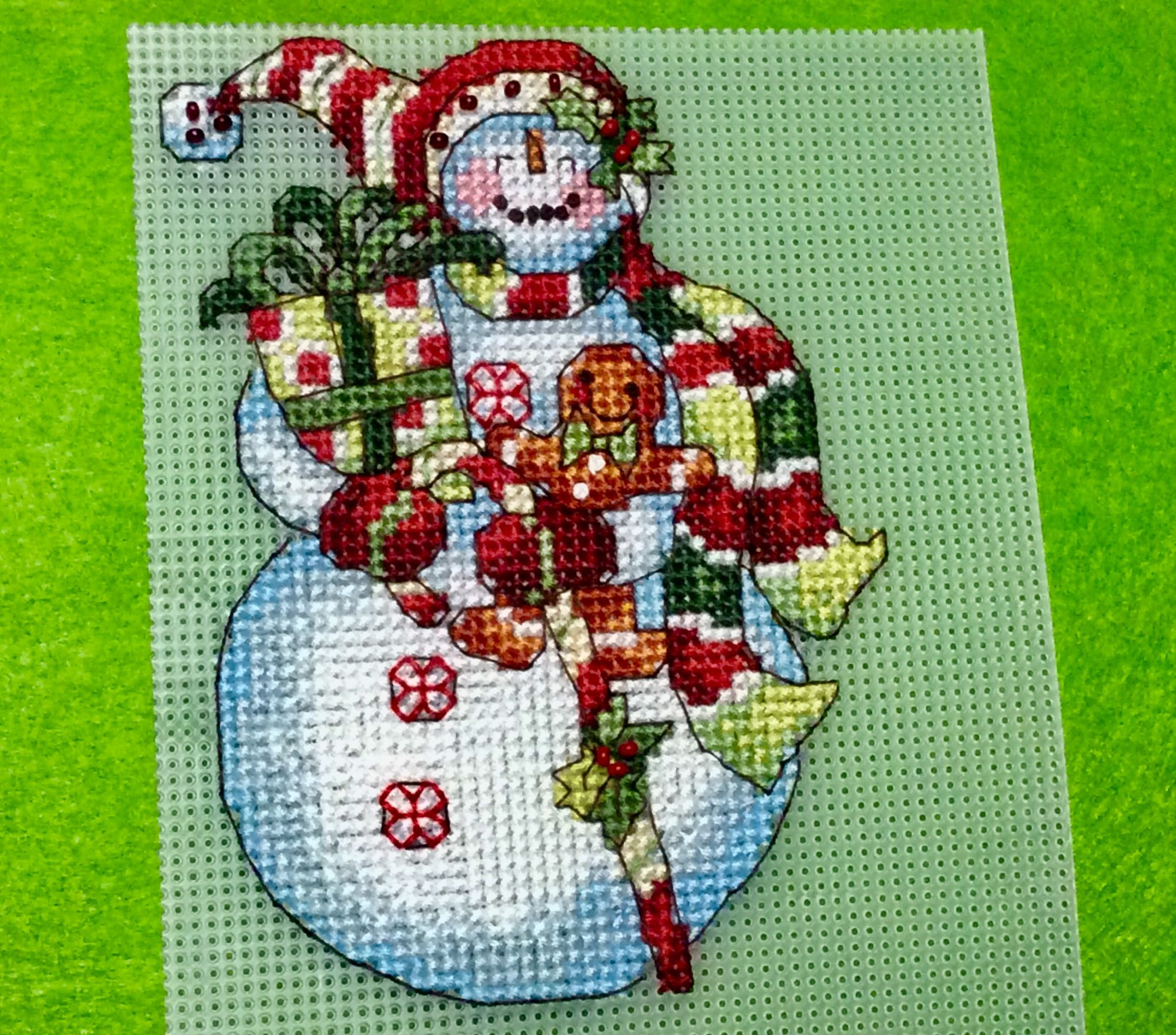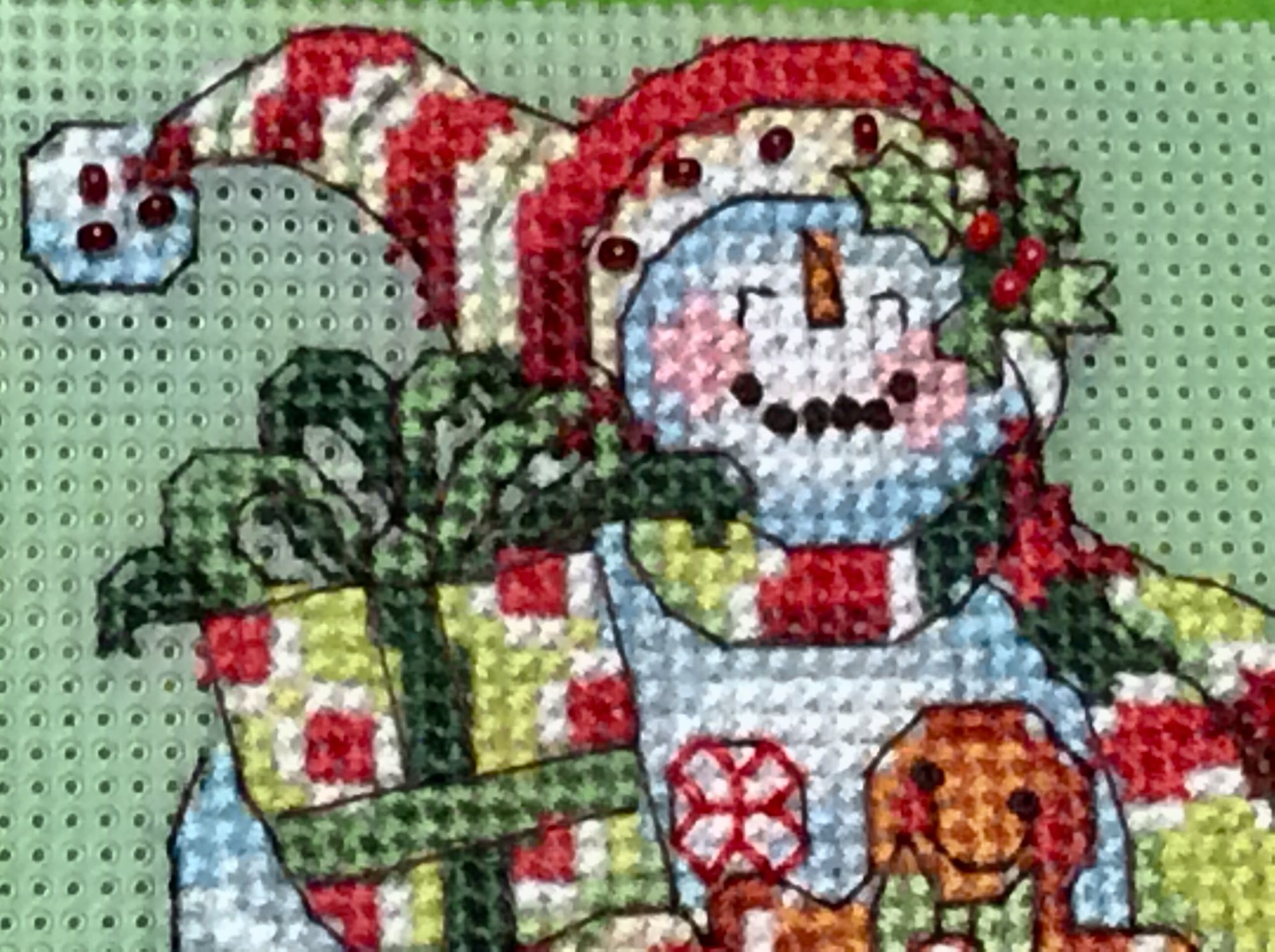 16 ноября 2017 Всем привет! Я с не большим отчетом! Я закончила вышивальную часть снеговика от дим. Пока я его ещё не собирала. Думаю пока на петельку его или может на палочке сделать. Вышивать на пластиковой канве с непривычки мне не очень понравилось, но потом втянулась и вроде так ничего. Нужно сказать это моя первая вышивка на пластиковой канве и моя первая новогодняя игрушка. Я внесла немного изменений, на шариках изменила узор. Вроде когда смотришь на обложку и все хорошо и ничего не бросается в глаза , но на схеме ( кстати черно белой) я не могла отделаться от мысли что это свастика . В итоге получились что то типа цветочка. Немного изменила улыбку, в оригинале она как то кривая. Хотела сделать просто беком, но от замены фрузелков на бек как то теряется шарм этого снеговика. Ну и на шапочке пришила бисер и ягодки тоже бисером сделала. Хотела и на пряничном человечке бисером сделать глазки и пуговки, но мне не понравилось. Были мысли добавить крейник или ещё что то блестящее, но решила что лишнее лепить не буду. В итоге вот такой парнишка получился. Девочки- модераторы не закрывайте мне пока гаечку, я финишное фото сделаю когда соберу игрушку. За ранее благодарю! apanjul, Wian, tavenir и 22 других сказали спасибо Поделиться сообщением Ссылка на сообщение