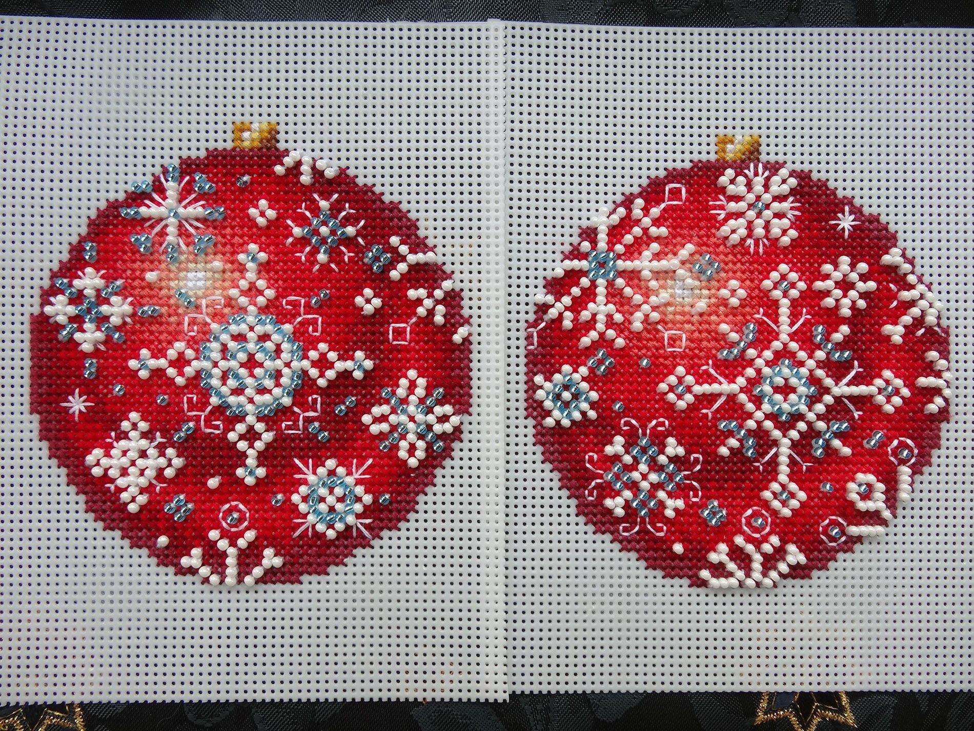 25 июля 2019 Всем привет, яхонтовые! Затянула с выкладыванием отчета токмо по причине летней легкой лени) Но, несмотря на лето, вышивается) 1. Новый процесс и сразу его окончание! МП Студия Р-167, Морозный рубин. Этот шарик был куплен и, минуя мои закрома, сразу пущен в отшив в качестве рабочего процесса. Мне понравилось шить пластиковые штучки в полевых условиях. Скорее всего эта практика будет продолжена. Первой стороной шарика так увлеклась, что аж забывала фотать процесс) Вторая половинка готова... и обе вместе: Затем - сшивание: шарик готов! Бисер пришивала мулинешкой в две нитки - сработали мои "тараканчики" насчет прочности) А вот половинки попробовала сшивать той нитью для бисера, которой шью кота, а именно - Титан 100. Рекомендую - более легкий результат получился... для сравнения шарик с Морозной рябинкой, где я сшивала белым мулине толщиной во всю пасму и этот: (НЕ В ГАЕЧКУ!) Но в Морозной рябине мне нравится этот толстый край, он дает ощущение заснеженности... или вышивальщица всегда найдет себе оправдание, чтоб не перешивать? А сам по себе мне шарик понравился, яркое новогоднее сочетание красного, белого и синего, томный блеск бисера, что может быть праздничнее? 2. Продолжение процесса "Лунный кот, Золотые ручки". Было: стало: Кот уже следит за вами!) 3. Продолжение "Мимоза", Риолис. Было: стало: Фруузикиии! 4. Продолжение процесса "Скалистый берег" (Маяк). Было: стало: Ушла на левую часть неба, плюс еще чайка. ---------------------------------- Еще была еда на природе: Сама природа: - это грецкие орешки, их в этом году что-то очень много народилось. Дары маленького подрастающего сада: - последнее это тимьянчик. И домашние яства: что-то типа домашних шавермочек из лавашей и скумбрия под морковкой Кошки в этот раз решили остатья в тени... фоток не будет... ну вот так! Всем приятного лета! Вкусных природных даров! Ярких впечатлений! Хорошего отдыха! snowflake, katushka90, Дикая белочка и 50 других сказали спасибо Поделиться сообщением Ссылка на сообщение