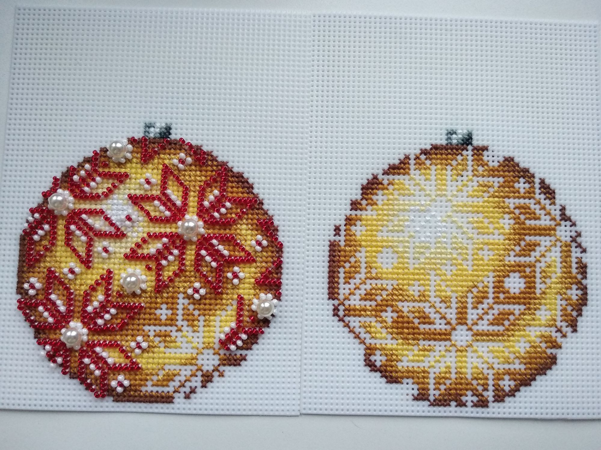 13 декабря 2020 Всем приветик! Зима, скоро праздники и я от души желаю встретить их радостно, тепло, в кругу близких и родных людей! Немного запоздала с отчетом. Спешу, несу) 1. Завершение процесса "Янтарное великолепие", Р-168, МП-студия. Было: стало: И сшитый-собранный Процесс окончен! Если честно, то этот шарик всегда казался мне непонятным по цветовой гамме, но когда вышила бисер, то оказалось, что он очень гармонично смотрится и это сочетание золотого и красного выглядит прямо-таки как королевский янтарь! А вот так выглядит вся коллекция вышитых украшений 2. Продолжение процесса "Кот и швейная машинка", Риолис 857. Было: стало: 3. Продолжение процесса "Мой друг", Панна КВ-551. Было: стало: 4. Продолжение процесса "Пробуждение", Панна Ж-1841. Было: стало: Готово ровно 25% работы! 5. Продолжение процесса "Персидский сад" (Риолис,100-029). Было: стало: Спой, птичка! (с) 6. Продолжение процесса "Оберег домашнего очага", Панна СО-886. Было: стало: Такая классная вязь блэкворка И завела два новых процесса... 7.Новый процесс Риолис 914, Средневековье. Начало: Старенький наборчик, выигран в конфетке у Олечки @оленек74 8. Новый процесс МП Студия Р-162, Узоры зимы. Начало: Снова праздник! Не знаю, насколько успею его до НГ, но на каникулах точно завершится) Таким был мой вышивальный месяц. Всем котика! Ваша Наташа! Agusia, Кисюня, mamatata и 32 других сказали спасибо Поделиться сообщением Ссылка на сообщение