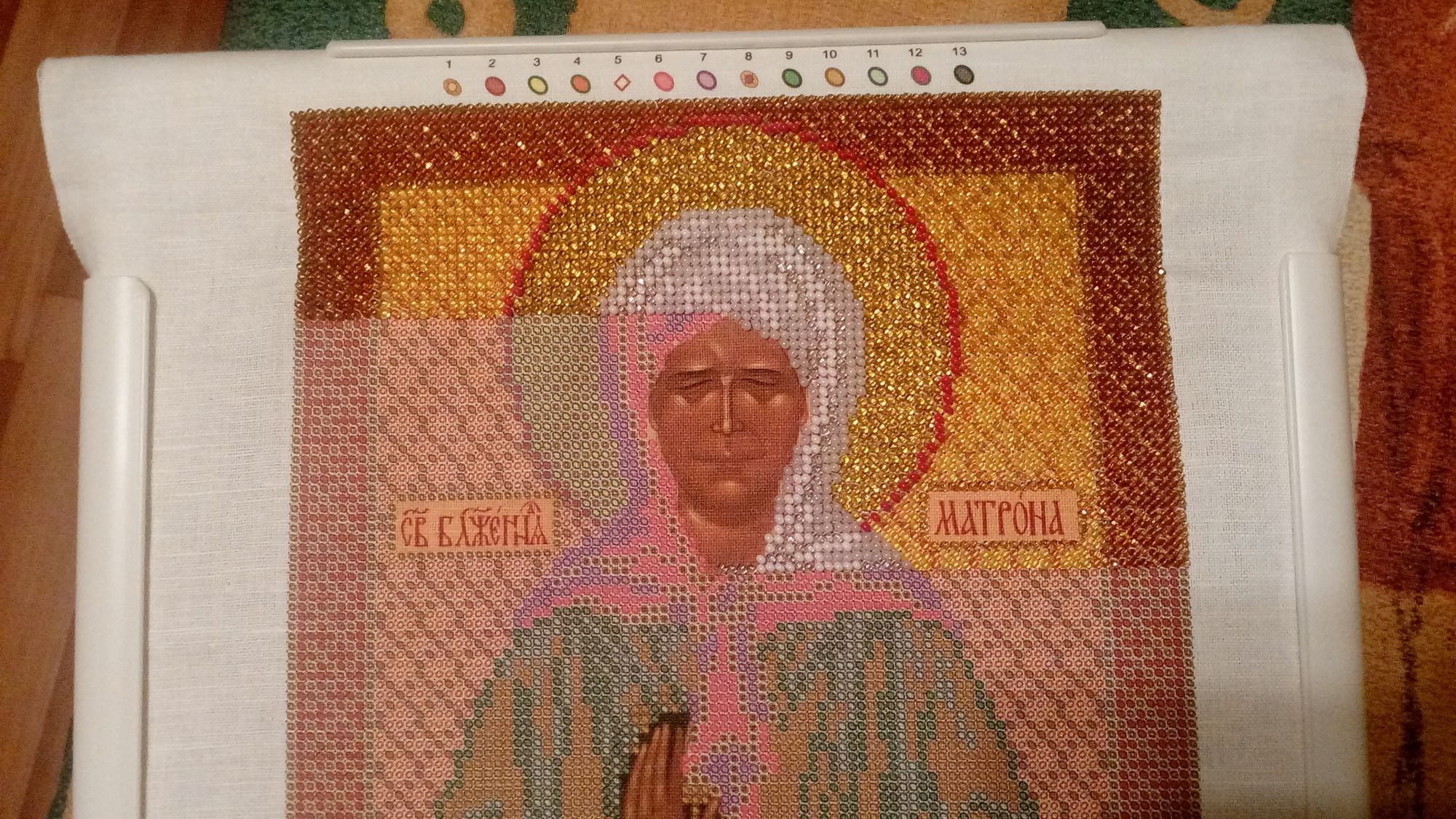 14 апреля 2016 2 день (2 неделя). Я сегодня с Матронушкой. Соскучилась по ней, неплохо пошла. Купила снапы (абалдеть какая удобная вещь!) и нить для вышивания бисером (от мононити лезла на стену), так сразу комфортно шить стало =) Было , стало . Бисеринки не считала. Завтра левую сторону шить буду. Понимаю, что не хватит 4ех цветов бисера..набору уже более 5ти лет, бисер несколько раз рассыпала, и вот результат( Написала производителю, надеюсь, напишет, какой бисер нужно докупать. Иначе придется брать второй набор.. Хозяйка смешных зверей, alexa412, Ксен40 и 13 других сказали спасибо Поделиться сообщением Ссылка на сообщение