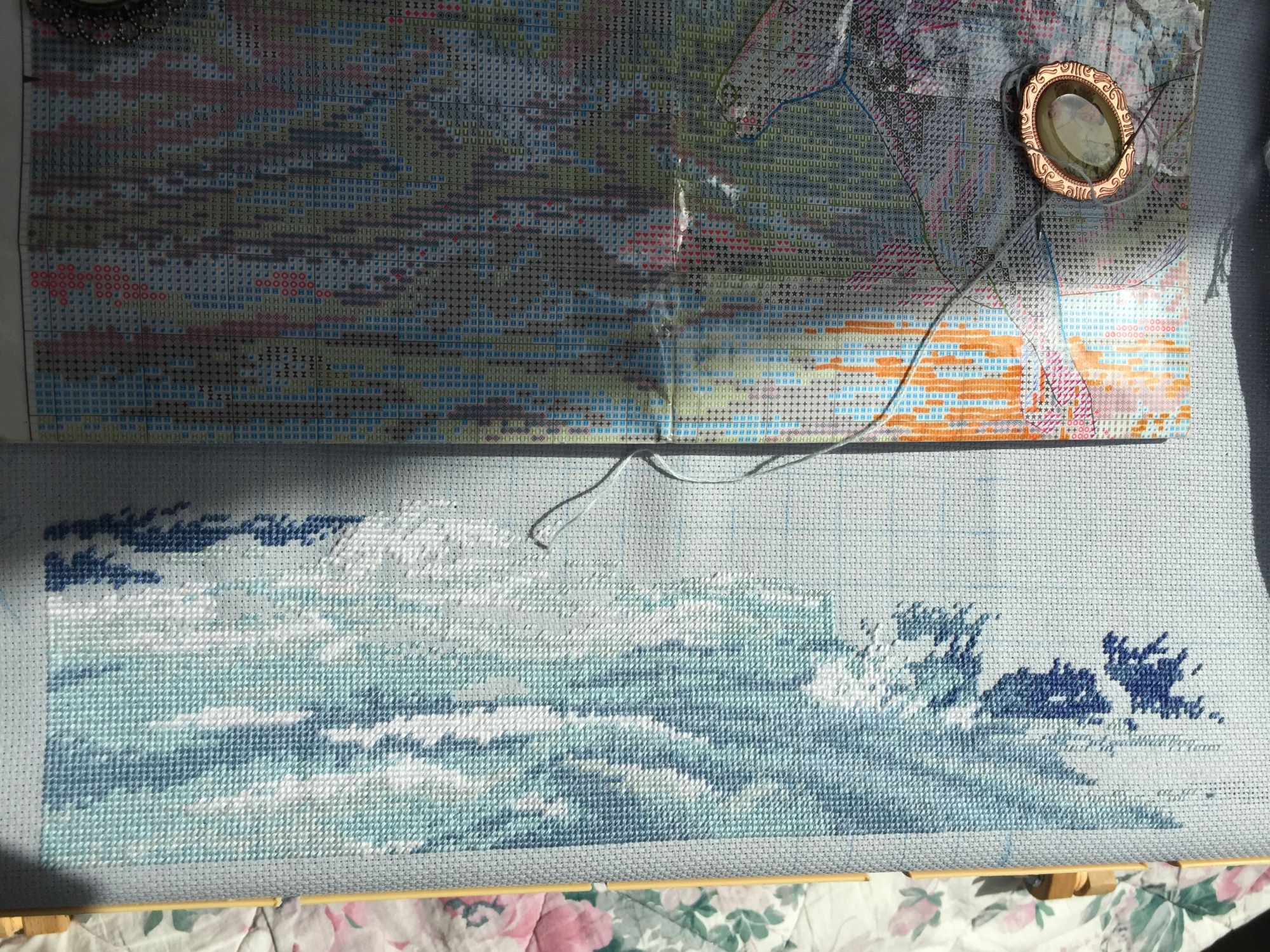 11 апреля 2017 Понедельник. Перекрутила раму. Было стало . Девочки, еще даю наводку кому интересно: в салоне Золотого руна распродаются остатки мулине San Miguel по цене 5р за моток . Чего-то я от жадности нахватала. Там было больше цветов, но я взяла те, которые мне были нужны. yuss, Кисуля, Елена Прекрасная и 8 других сказали спасибо Поделиться сообщением Ссылка на сообщение