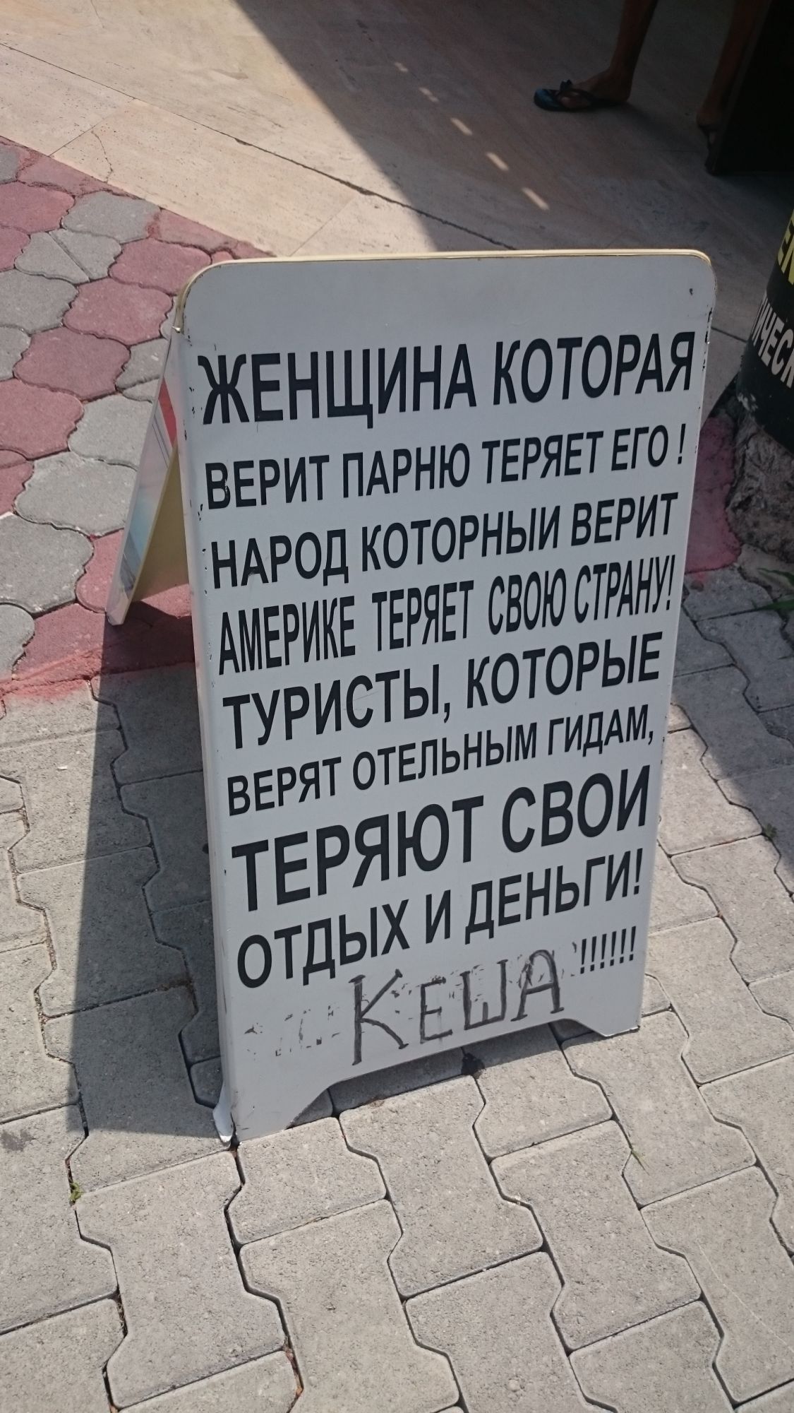 30 июня 2018 Ну вот я и приехала. не сейчас конечно, доделывала послеморские дела. Вообще меня бы устроил обратный режим, жить у моря, а на 7-10 дней приезжать сюда (и то летом). На этой неделе нам обещали 40 градусов тепла, а получила я жалкие 36 и то с дождями. Ну хоть в Турции погрелась. Вот мы отправляемся в дорогу Там все таки огромных размеров, бархатцы размером с дыню, кактусы выше меня. Надо было брать с собой кота. Вот эти плоды можно есть. Даже и хотела провернуть такое дело и незаметно съесть один, но постеснялась. А то наполнился бы интернет шокирующими видео - "изголодавшиеся русские туристы готовы сожрать все что не приколочено". Пришлось кормиться тем, что давали. Немного о турецком чувстве прекрасного. Этот арбуз с портретом девушки непростой судьбы, был у них предметом особой гордости, его даже не разрезали, а выставляли каждый день в разных местах территории. То тут, то нам натыкаешься на этих призраков и вздрагиваешь, когда где-то в кустах мелькнет этот страшный лик. Кеша знает, как затронуть тонкие струны русской души Афремовоподобные картины в изобилии везде, и на рынках и в отеле. Водичка чистая! Так и не могу привыкнуть к этому после детских черноморских поездок. Уж там если зачерпнешь рукой воду, то в ладони будет и рапан, и краб, и дохлая рыбка, и медуза, и горсть гнилых водоролей, и пластиковый пакет. Раньше это было интересно, сейчас хочется скучной чистоты. Когда бы я еще так долго гуляла Покатались на кораблике. Пошляцкий конечно антураж, но детям весело, а взрослым покататься по всему побережью и поплавать у островов можно и закрыть глаза на распухшую голову Джонни Деппа. Не таким, совсем не таким помню я его в фильме! Чайка прилетела, и улетела Ответ на вопрос, почему у меня никогда нет фотографий. - сфотографируй меня с ежиком! -конечно, дорогая! Каори, ОлюшКа, Catopuma и 26 других сказали спасибо Поделиться сообщением Ссылка на сообщение