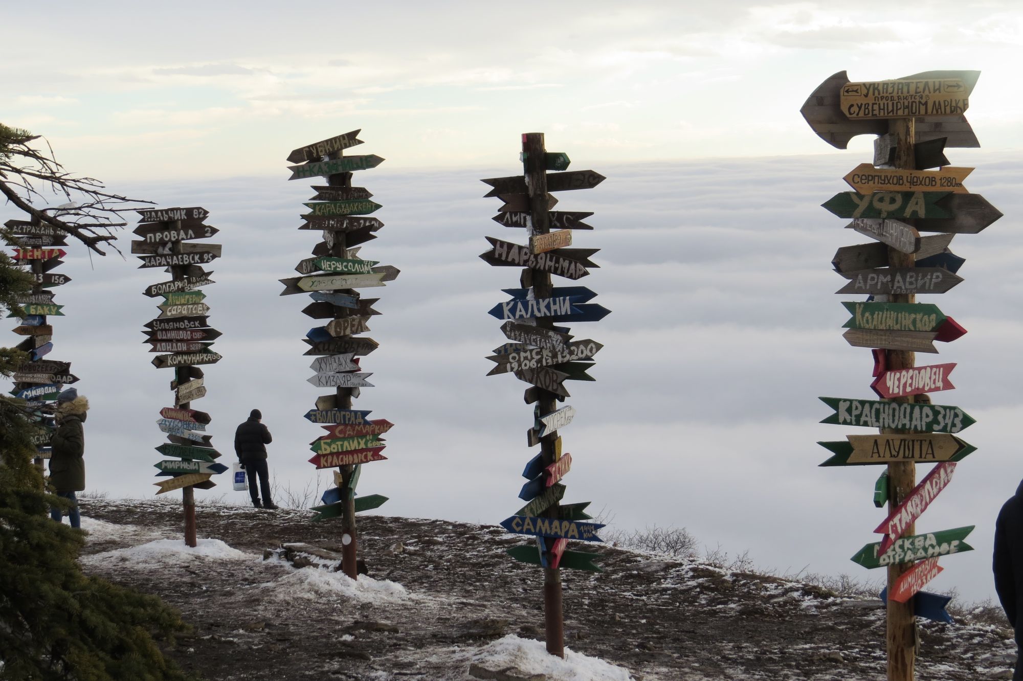 8 января 2019 Часть вторая горно-минеральная. В первые дни нового года покорили гору. Покорили правда с комфортом, на канатке, но если есть возможность воспользоваться плодами прогресса, то не лезть же на гору с альпенштоком Прокатились в Пятигорск, мне нравятся наши курортные кукольные южные городки. Думала не будет вообще никого, только грустные местные жители будут бродить между пустующих пансионатов, но нет, людей море, очереди на восхождение на Машук, везде шеренги приезжих с кружками с минералкой. Виды с горы открываются необыкновенные и очень страшные. по горе ходит Дед мороз и раздает шоколадки Обратите внимание, внизу под облаками маленькие домики, жутко выглядит! у меня не было желания идти по этой лесенке, я прижималась к горе, и старалась постоянно за что-то держаться, все казалось что я сейчас рухну и покачусь вниз, и буду катиться до самого низа, а потом буду катиться по инерции дальше, пока не закачусь куда-нибудь в провал. Очень боюсь высоты! В Пятигорске вовсю эксплуатируется тема 12-ти стульев, часть действий которых разворачивается именно там. Мсье, же не манж па сис жур этвас копек! Я в абсолютной безопасности К Провалу и Остапу Бендеру решили не ходить, все там были много раз, вместо этого съездили еще и в Ессентуки. Всегда в этих городах меня охватывает дикий азарт испробовать все минеральные воды из всех бюветов и источников. Очень они мне нравятся несмотря на их жуткий запах и местами страшный вкус. Вся минеральная вода что продается, даже настоящая (а ведь туча еще и подделок) совершенно не похожа на свежую, налитую непосредственно в местах происхождения. Ни того запаха нет в бутылочной, ни вкуса, ни того ощущения тонуса. Вкус у них бывает иногда довольно мерзкий. Какая-то с высоким содержанием железа на кровь похожа, будто поранился и кровь стекает в горло, какая-то напоминает морскую воду на вкус, почти все пахнут тухлятиной или сероводородом. Исходя из предположения, что все вкусное вредно а все полезное противно, я очень много полезного употребила! По традиции почти каждый раз как оказываемся в городах минеральных вод, покупаем кружку-бюветницу. Они с носиком из которого пьют воду, чтобы страшный запах был подальше от носа и не ощущался. В этот раз кружка-котик (в голове у него пробоина, куда наливается вода, а пить ее из хвоста ) irisheckin, Ветер, Catopuma и 21 других сказали спасибо Поделиться сообщением Ссылка на сообщение