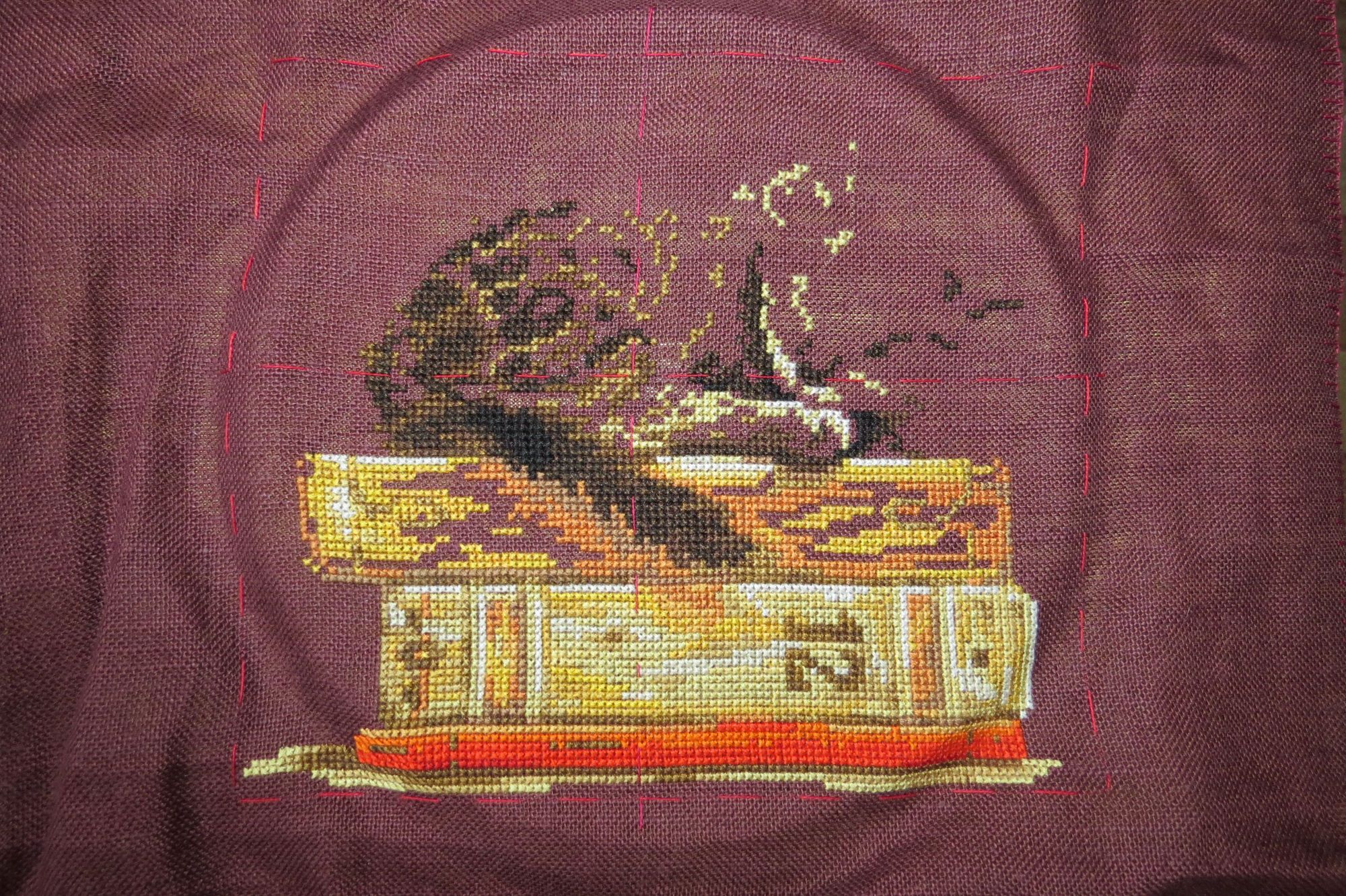 10 июня 2017 Снова на арене я с отчетом! Причиной долгого отсутствия был невышиванец страшной силы, с рецидивами и осложнениями, и виной всему - красавец Леонардо. Все эти его тряпки и доски вынули из меня всю душу. Очень тяжело идет. И время было и возможность, но за несколько часов получалось десяток крестиков, потому что оттягивала я это дело, как только могла. Положу Лео рядом, все приготовлю, и начинаю пить чаи, смотреть кино, читать, ходить по магазинам с выдуманной причиной. В итоге отстранилась от вышивки совсем, надо было от него отдохнуть. Сейчас со скрипом, но дело пошло. Снова начинаю борьбу с изнурительными полукрестами. Не люблю их, ни в пять ниток, ни в одну. Три месяца шью его, а готова едва ли пятая часть. Но я его поборю, я все всегда могу побороть. Леонардо Немного подрос портрет моей кошки И дракончик в одном из последних отчетов показывала свой первый лен, купленный без практических соображений, исключительно из-за красоты. Он не разочаровал, оттенок хамелеон, в зависимости от освещения выглядит то красным, то бордовым, то фиолетовым, то шоколадным. Когда налюбовалась, встал вопрос - что с ним делать. Не придумала ничего умнее, как начать на нем котика RTO. Я не в восторге от выбора, мне кажется темный котенок на темном фоне потеряется. Но деваться уже некуда, поэтому я сама себя хвалю - ах как красиво, как хорошо смотрится. Не сильно в это верю, но если часто повторять, то так и будет Новый процесс https://www.stitch.su/rto/M642 Закончены розочки Алисы. Моя первая в жизни конфетка, подарок Иры Воздух. Никакими словами не передать, как я радовалась этим розочкам, чудесному и неожиданному подарку! И как ни смотрю на эти розочки теперь, чувствую ту же радость Из-за двухцветных крестиков процесс тянулся дольше чем я думала, но теперь они готовы! В середине розочки, раньше я писала, пришлось небольшой участок распороть, и канва чуть растянулась на этом месте дырками. Думала уйдут после стирки, но они остались. К счастью я не перфекционист, так что не печалюсь. Делаем вид, что их там нет Ириша, спасибо!!! Они так и называются в моей голове - Ирины розочки Последнее фото процесса Результат И фрагменты Можно зеленить! Ирочка @irisheckin заразила меня своим азартом. Итог - покупка в Шелковой нити Наступила на те же грабли (некоторых жизнь ничему не учит), снова купила бордовую ткань, и теперь мучаюсь, что с ней делать. Это мурано. Хотела какой-то блэкворк, но передумала, быстро надоест. Нравится вот такой павлин, но сомневаюсь, не слишком ли дикое сочетание цветов для бордовой основы? и еще думала над вот такой лисичкой, но сомневаюсь, до сих пор к этой лисичке меня не тянуло, не получится ли натягивание совы на глобус, вышивать только лишь бы чем-то забить красивую ткань. Огородный вестник - на балконе зацвели посаженные ребенком цветочки, не уверена что это, кажется георгин. Кот без костей. Как я хотела бы, чтобы у меня все так же гнулось как у него! Как голову вывернул, страшно смотреть. Каори, Catopuma, ЛюдмилаЕр и 29 других сказали спасибо Поделиться сообщением Ссылка на сообщение