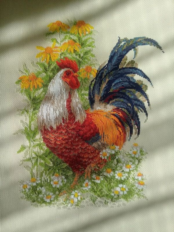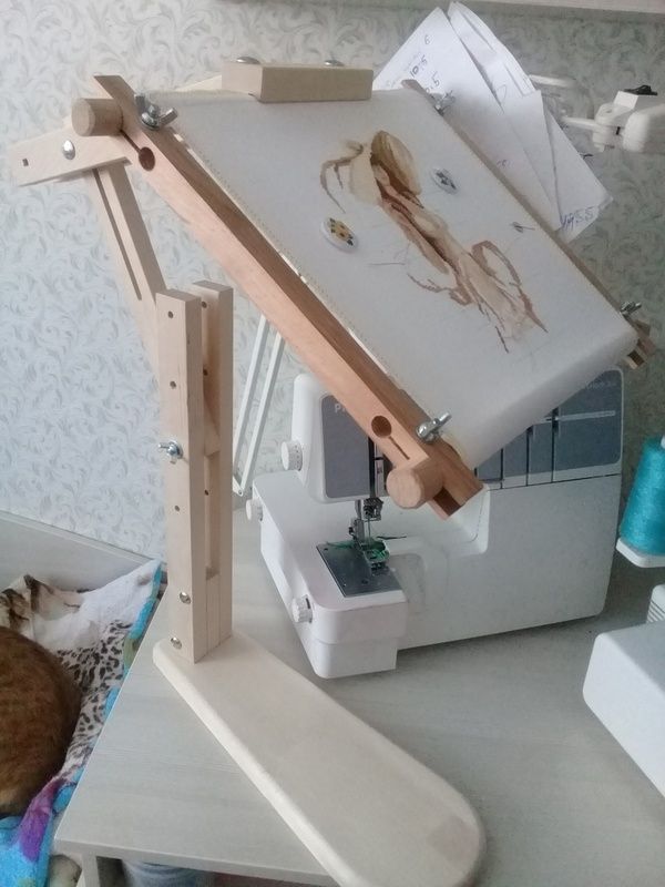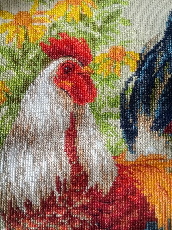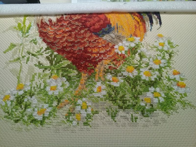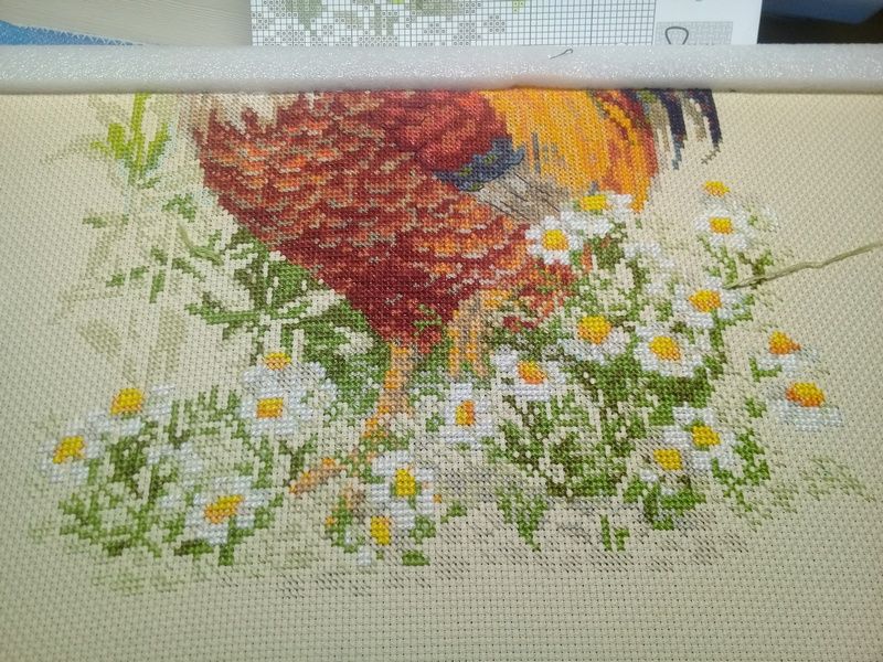 3 марта 2018 И снова здравствуйте! Не прошло, как говорится, и полгода... Итак, отчёт о проделанной работе. Часть первая. Долгожданная. Гайкозеленительная. Петух. Дошила таки я его. Один из моих долгостроев. Начат аж в 2015 году, потом отложен на неопределённое время и вот он готов! Процесс лёгкий, разнообразный. Скучать не получалось. Крест и полукрест в 1-2-3 нити дают очень выразительный объём. Товарищ смотрится как живой. Ближе к концу работы заметила, что ошиблась в самом начале, вышив один из оттенков листьев не полукрестом, а полным крестом. Т.к. это был последний в работе цвет, решила переделать и не пожалела. Цветочный фон стал гораздо воздушнее, а сам петух выступил на первый план. Бэк... здесь немного, но я посчитала, что он не везде уместен. Не стала (точнее, сделала, убедилась, что с ним ерунда и распорола) на хвосте и на ромашках. Без него картинка кажется не столь перегружена и лучше видны переходы цвета. Вот, в принципе, и всё. Оценка набора и процесса 5 из 5. Очень даже рекомендую. было стало готовый с перешитой зеленью и немного макро Гайки зеленить всегда приятно, а если зеленится долгострой, то приятно втройне! Всё! Часть вторая. Прогулочная. Шьётся себе и шьётся. Процесс лёгкий, схема простая, несмотря на сепию. было стало Часть третья. Гобеленовая. Я таки его начала! Знакомьтесь, гобелен от Лука-с "У фонтана". Процесс далеко не лёгкий. Особенно после 14-й аиды. Даже я сдалась и взяла в руки текстовыделитель - черкать схему. Иначе никак. Мало того, что мелочь, ещё и очень близкие оттенки рядом. Для меня два неудобства. С намоткой и органайзером можно смириться. А вот отсутствие на стыках листов дублей пары клеточек соседнего, как это есть у многих производителей, сильно усложняет работу. Но, тем не менее, процесс нравится. Вдохновляет проявляющиеся детали и полное (хи-хи-хи) отсутствие бэка (да, я начинаю любить гобелены ещё больше хотя бы только за это). Движется медленно, но "тараписа нэ будем, да?!" (с) первые стежки за почти две недели и кусок схемы Часть четвёртая. Девайсно-приобретательная. Случилось так, что не так давно начала я призадумываться о покупке станка. Напольный мне ни к чему, ставить некуда. Настольный тоже. А вот диванно-подпопный оказался самым оптимальным вариантом. Выбор пал на два. Первый - держатель для пялец от Серёги-мастера (собственно, для пялец и небольших рам) и универсальный держатель фирмы Бос для рам побольше. Бос благополучно развалился ещё при вкручивании первого конфирмата и был отдан на доведение ума и укрепление специалисту. Кстати, он и выглядел гораздо хлипче, начиная от платформы и заканчивая стойками. А вот Серёгу-мастера умышленно собрали не совсем по схеме и в итоге я имею мега удобную конструкцию для своих сонных (это когда дочка спит) процессов. Плюсов море. Обе свободные руки, удобная посадка, удобное (мы заменили боковое на фронтальное) крепление работы. Кстати, при родном боковом креплении, левая рука постоянно цеплялась за стойку. А так хоть вертолёт изображай, ничего никуда не сместится. На фото на держателе рама, а сейчас я её замениа на пяльцы. Держится-стоит насмерть. Как пуговицы у Райкина. Во какая прилада (процесс не в гайку!) В общем, я очень довольна. Как Бос до ума доведём, обязательно покажу. Я его как раз для гобелена планировала. Но пока по-старинке на одеялке (чтоб рама не бумкала по столу) шью. Во