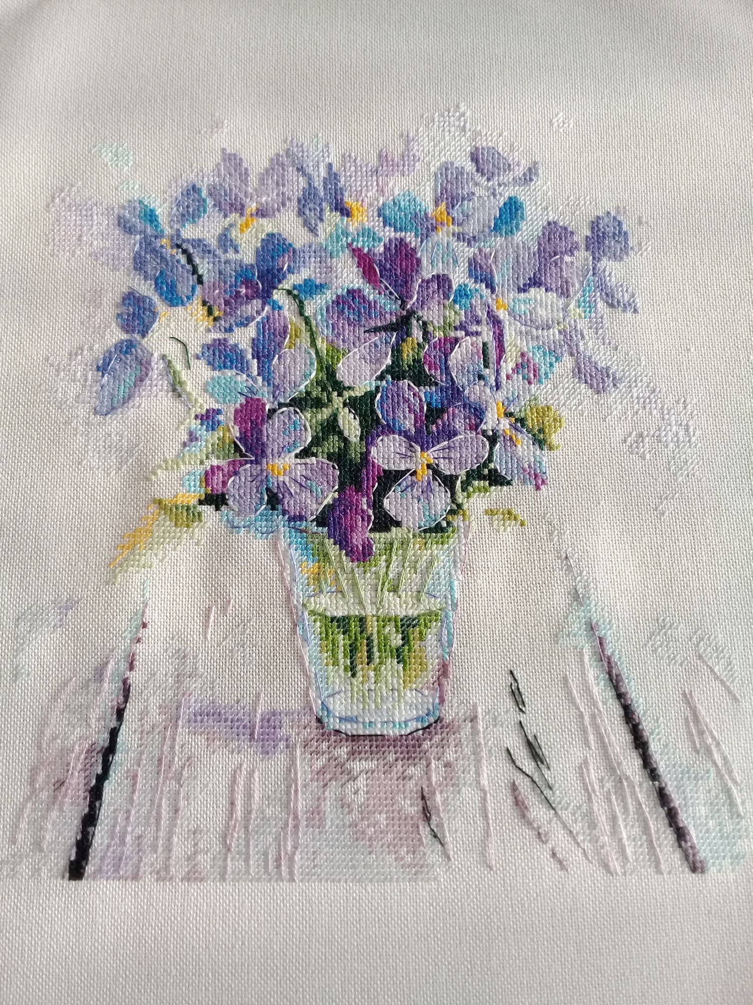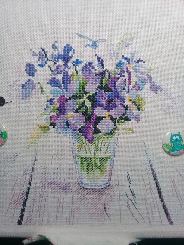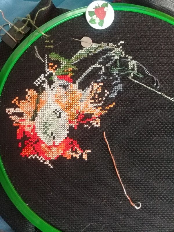 29 декабря 2018 Ну что, дорогие товарищи, последний отчёт в уходящем году. Выйдет он немного насыщенным. Но, надеюсь, тапки за это в меня не полетят. Будем крутить гайки и подводить итоги. Итак, отчёт в N-цати частях с троллями и профитролями. Эпиграф: "Ударим автопробегом по бездорожью долгостроям и разгильдяйству!" Часть первая. Таксо-собако-гайкозеленительная. Так как работу начинала аккурат в прошлый новый год, то символично завершить год Собаки зелёной гайкой именно этого процесса было стало Та-дам-м! Готово! и чуть макро Процесс очень лёгкий. Из тех, что я называю "можно шить на коленке левой пяткой". Бэка много, но он весь по клеткам и совершенно не напрягает. Фсё! Часть вторая. Цветочно-равномерочная-снова-гайкозеленительная. Виолы. С уверенностью могу сказать, что мои любимые. Меняя сознательно(!) канву на равномерку, я понимала на что подписываюсь. Процесс и сам по себе не слишком простой. Я же для себя его усложнила раза в три. Ну не дружим мы с Мураной... Зато результат отличный! Одно но... после снятия с рамы (ещё до стирки) ооооочень сильно провис бэк. Эта зараза (равномерка) тянется, что хороший француз. Плюс стянуло середину у вышивки. Но при натяжке, я уверена, всё это уйдёт, поэтому переделывать не стала. В общем смотрите сами было стало и готово! Стакан, с его прозрачностью, просто великолепен. Я хочу сказать огромное спасибо Саше @Gala83 за этот набор! Это её подарок. Схема отличная, понятная. Несмотря на частую смену нитки и жуть на изнанке, цветы выходят очень нежными. Каждый крестик на своём месте. довольна на все 258% Незабудки в пару уже куплены. Ждём второго приступа мазохизма. Фсё! Часть третья. Птичье-долгостройная. Т.к. наступающий год был анонсирован мной годом по сокращению количества долгостроев, я начала это дело не дожидаясь 1 января. В итоге имеем вот такую птЫцу. Третья из серии, так что можно будет оформляться. "Малиновая песня" было стало ииииии... готово! Фоновый полукрест, как оказалось, надо было шить в 1 нить. Но т.к. я прочла это уже после завершения второй птички, то решила так и оставить. тем более, что на обложке смотрится именно как в две нити, и первая (голубая) птица тоже была вышита в две. Все три птахи вместе Фсё! Часть четвёртая. Долгострой-проветривательная. Некоторое время назад пара человек интересовалась, вернусь ли я когда-нибудь к процессу Гимн любви. Обещала, что вернусь и обещание сдерживаю. Правда, для себя обозвала его "процессом хорошей погоды". Ибо для чёрной 18-й аиды уже прыть не та и сосредоточиться как надо не получается. Поэтому медленно, по ниточке при свете солнышка, но "пошёл, Страус, пошёл!" было стало Часть пятая. Снова долгостройно-продолжательная. Ещё один махровый долгосторой, начатый аж в 2015 году - это Горный ручей от Риолис. Пока не знаю, пойдёт или же просто проветрится, но пока вот так было стало Одиночек море. Плюс сочетание шерсти в 2 нити и креста в 3... Не просто, но интересно. На мой взгляд, тесновато таким крестикам на 14-й цвейгартовской аиде, корявенькие выходят. Но, надеюсь, что после стирки хоть немного всё станет на свои места. Часть шестая. Планами поделительная. После трёх законченных за месяц работ, руки, конечно же, чешутся начать новое. И новое будет. Скорее всего опять три процесса (хых... никак не выходит сократить количество красных гаек до 10), но как пойдёт. Ибо рабочий сезон никто не отменял. 