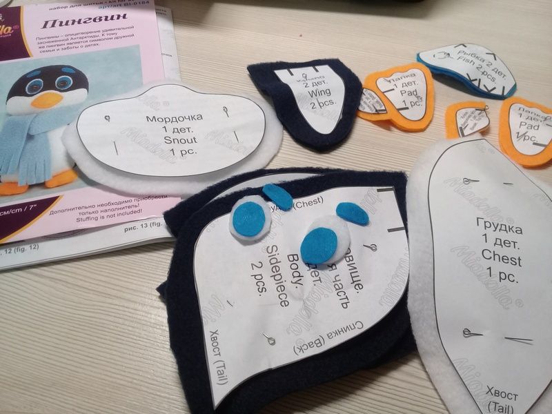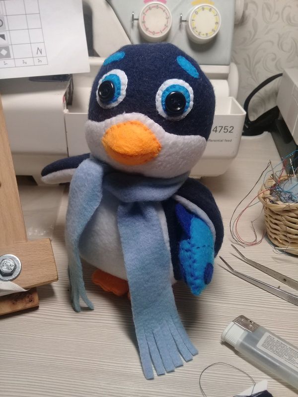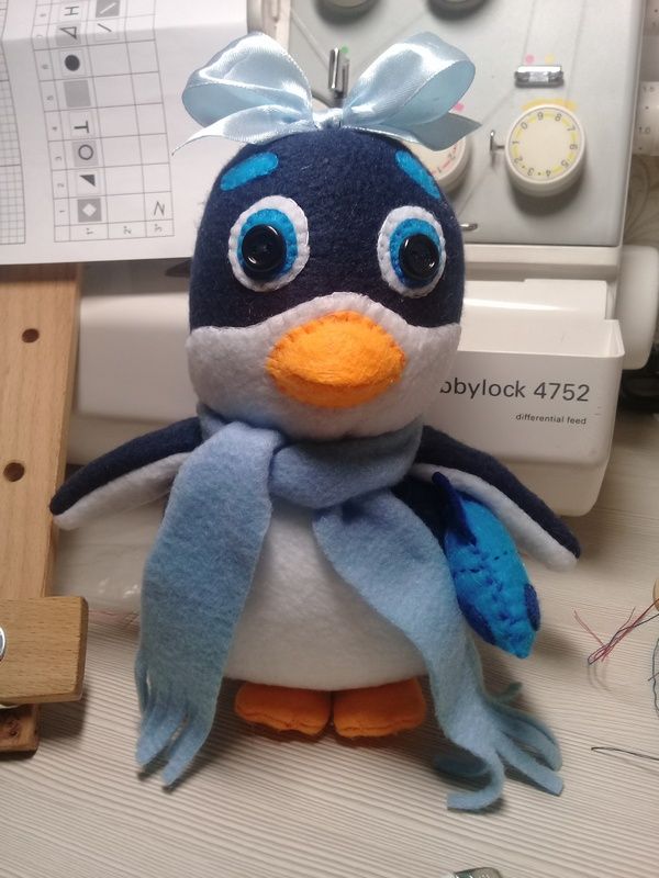 23 декабря 2018 Всем привет из гнезда! Новость сегодня будет не вышивальная, но, надеюсь, всё равно интересная. Многие просили сделать фото процесса пошива игрушки. Так вот, делюсь. Вашему вниманию представляется Пингвин от Миадолла. Первые впечатления о наборе самые приятные. Материалов предостаточно, с большим запасом. В наборе предусмотрены даже такие мелочи, как игла и нитки для сшивания. Нужно было докупить только наполнитель. Отдельно скажу о схеме сборки и инструкции. Они наиподробнейшие! Всё разложено по полочкам, каждый этап сопровождается несколькими подробными картинками. Справиться с таким набором сможет даже новичок, ни разу не державший иглу в руках. Итак, первым делом вырезали выкройки и выкроили детали Далее этап соединения деталей. Мне было лень морочаться вручную и крупные фрагменты я прострочила на машинке. Мелочь уже руками. Потом набивка... ...и сборка. Промежуточные результаты бывают весьма забавными И вот товарищ Пингвин готов Дочка покрутила его в руках и сказала, что это таки должна быть девочка! Ну, что делать, менять пол игрушкам мне не впервой (надеюсь, кто-то вспомнит историю про куклу) и вот она, пингвиниха Глаша. Уже после пары часов трепания ребёнком игрушки сделался вывод, что всё же это больше настольно-декоративная вещь получается. Фетр (рыбка, клюв, лапки) не выдерживает интенсивных детских игр и уже стал похож на мочалку. Флис скатался, но пока ещё прилично выглядит. Пожалуй, это единственный недостаток. Поэтому набору твёрдая четвёрка и вполне уверенные рекомендации другим. Ещё смастерилась вот такая хрень вещица. Оказывается, это сейчас пипец как модно. Крестница заказала в подарок на новый год. Ободок - единорожек Но, опять же, главное, чтобы ребёнок был доволен. Вышивального пока не будет. Нужно фото разгребать... Всем бобра! Ваш Соловей Nadinka-Blondinka, Galagenka, АриЯ и 28 других сказали спасибо Поделиться сообщением Ссылка на сообщение