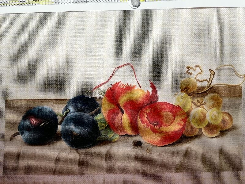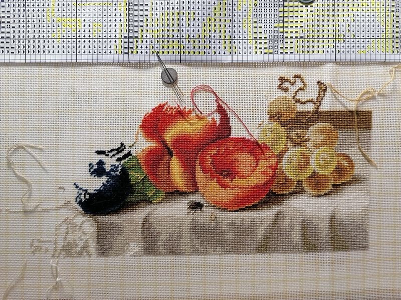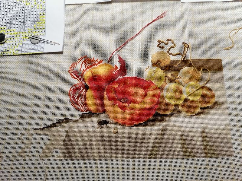 17 июня 2020 Сказ о том, как Персик оказался Редиской и подложил свинью. Жила-была девочка. Ну как девочка, скорее уже тётенька, которой ну просто до визгу нравились разработки одной молдавской фирмы. И вот однажды сия фирма выпустила весьма недурственный натюрморт с персиком и аж двумя сливами. Девочка, тихонько взвизгнув от радости, тут же быстренько побежала шерстить ассортимент рукодельных магазинов, дабы быстренько приобрести себе этот НАТЮРМОРТ! Но, т.к. весь мир страдал в это время от грозного и непонятного вируса, ждать ей пришлось не одну неделю. В конечном итоге, девочка таки заполучила себе вожделенный набор и тихонько мурлыкая принялась за работу. По началу ничего не предвещало каких-либо катаклизмов и скатёрка, а после и гроздь винограда, вышились вполне себе быстренько. Но потом настал черёд вышивать его! ПЕРСИК! Разрезанная половинка шилась в панике от обилия красных цветов. А вот когда дело дошло до целого... Схема этого... помягче сказать фрукта, оказалась состоящей из весьма схожих значков. "Ну ты и редиска, а не персик!" - подумала девочка. Но когда эти значки оказались шахматкой, девочка раззадорилась и затыкала иголкой ещё проворнее. Ибо чего это какие-то персики будут тут выпендриваться и подкладывать такую свинью? Права на ошибку не было. Схожие значки в сочетании с очень близкими оттенками да ещё и в гобелене - воистину дело для настоящего снайпера. Дошить его не дожидаясь перитонита и дело с концом! И ведь дошила. И получилось офигенно. Дальше началась совершенно банальная, но не менее прекрасная слива. Ну а верхняя часть сюжета вообще состоит только из фона в три оттенка. Вот такая вот случилась история. А теперь картинки к ней (гайка есть!) Есть у меня для каждого процесса своя точка невозврата. Т.е. такой момент, после которого работа ну никак не может быть отправлена в долгострой, а захватывает целиком и полностью. Персик эту точку прошёл. Дальше будет намноооооого проще. Продолжение персиковой эпопеи следует... Nata_Struchkowa, mag, АриЯ и 19 других сказали спасибо Поделиться сообщением Ссылка на сообщение