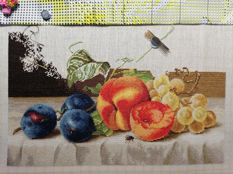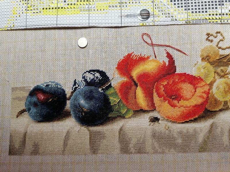 10 июля 2020 Часть третья. Редископерсик или мой любимый гобелен. Что тут сказать. Персик, а также сливы, дали прикурить конкретно. На данный момент это, пожалуй, самая сложная работа в моём послужном списке. К гобелену я спокойно отношусь, но вот шахматка их оооочень схожих символов это жесть. Но, несмотря ни на что, обожаю этот процесс. Результатом безумно довольна и очень хочу поскорее его завершить и приступить к следующему натюрморту со сливогрушей. Наивно я думала, что после персика отдохну на сливах, но сливы сказали: "Щазззз!" и порадовали всё той же шахматкой и частой сменой нити. Из 57 цветов некоторые используются всего в 5-6 крестиках, зато (не перестаю повторять) какой результат! было стало Сейчас веду борьбу с листком (виден на процессе). Выглядит это вот так Небольшие продвижения по Ладе. Также очень нравится и сюжет, и процесс. Одно но - поняла, что на 18 канве мне некомфортно вышивать из-за того, что крестикам там просто тесно, требуется больше усилий, чтобы уложить их ровными. было стало Совсем чуть-чуть швейной машинки. А то не показывала начало, хотя гайка с подготовкой есть. Очень лёгкий и понятный процесс. Классные нитки и длинная нарезка. Ну и на этом пока всё. Всем бобра и комфортной погоды Ваш Соловей АриЯ, татьяна0674, оленек и 23 других сказали спасибо Поделиться сообщением Ссылка на сообщение