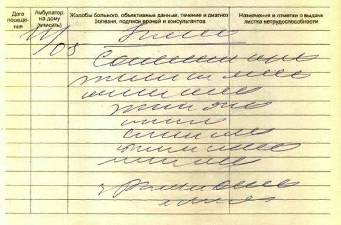 27 июля 2016 2 минуты назад, оленек74 сказал: Я как-то пришла к врачу с такой записью, повторно. он посмотрел и спрашивает:- Это я написал?.....посмотрел подпись и обреченно :- Я !.....Потом поворачивается к медсестре и говорит :- Вы не прочитаете, что я написал, а то я не понимаю ...Бывает и так Anicha, ole4k@, Хорошуля и 16 других сказали спасибо Поделиться сообщением Ссылка на сообщение