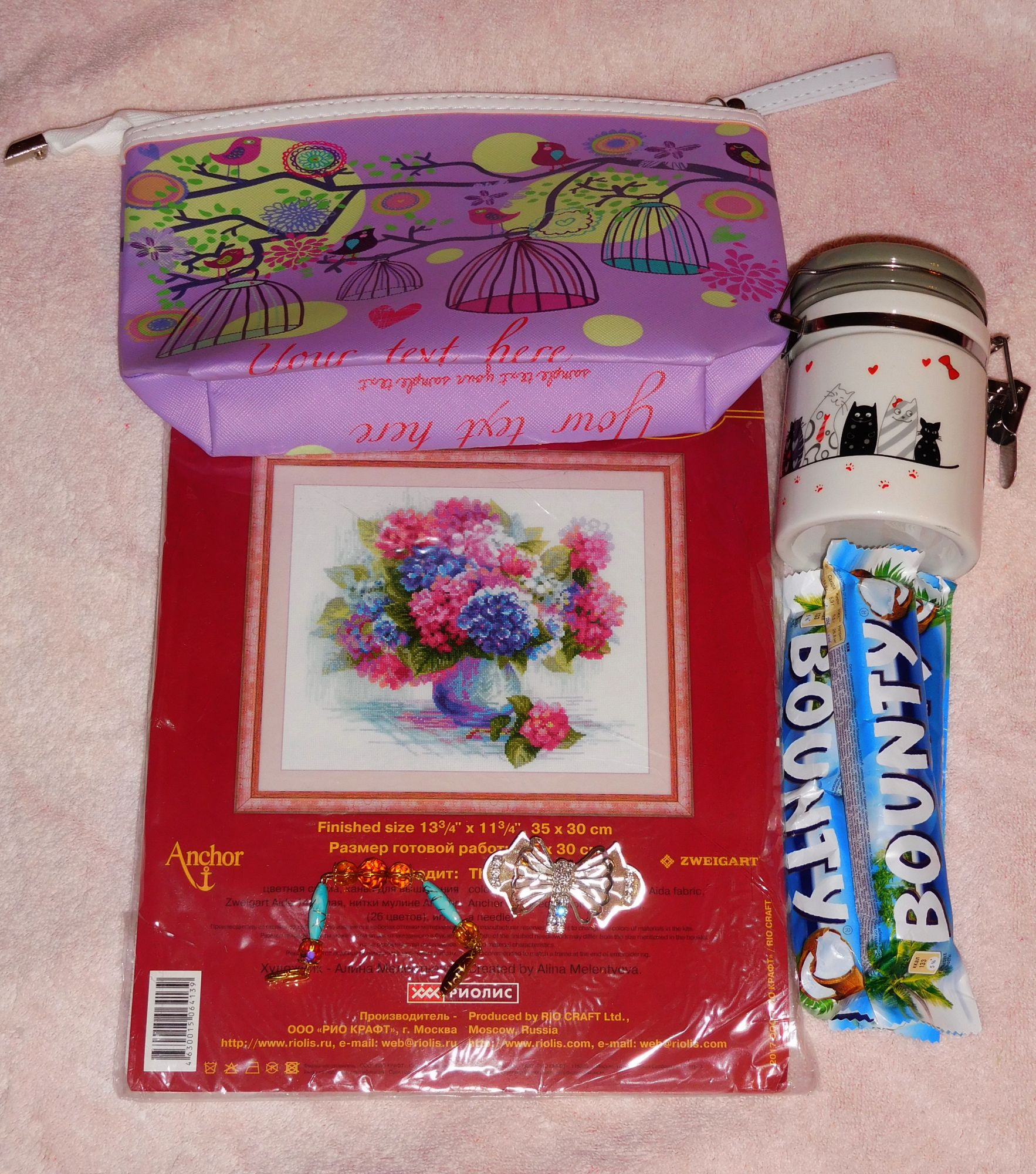 22 июня 2018 Всем - хорошего времени суток!!! Я с отчетом....ага! Тюльпаны мне удалось повышивать совсем немного. Причем на столько немного, что и показать нечего. Однако, процесс сдвинулся и это меня ооочень радует. В последнее время вышивка стоит, а я ужасно скучаю по крестикам. это побудило меня купить набор от Слободы в виде открытки, с пластиковой канвой. Это дает возможность хоть пяток минут потыкать иглой, не отвлекаясь на раму и схему - пришел с работы, присел, потыкал и вперед по дому!!!. Тем более, что результат мне нравится. Вот этот процесс: Нова Слобода ОР7568 "Дыхание весны" - нежнятина Делать или не делать гайку - на усмотрение модераторов. Пришла мне конфета от Светы -Solovey-Набор шикарнейший!!!! А какие цвета!!!Не обошлось без подарка .... Я долго думала купить косметичку, но все не покупалось. То одно не нравилось, то другое, а тут!!!! та - даммм то что нужно да еще и подарок!!! и конфеты!!!! обожаю Баунти!!!! Скрытый текст Это, похоже, были мои последние конфеты нашли у меня диабет и диабетическую невропатию В больницу хотели положить, я отказалась. Глупо, наверно, но я боюсьтак что, пока дома) Света, эта точка в моих шоколадных отношениях - лучшая!!! Спасибо тебе огроменное!! Хоть напоследок порадовала меня!!! Уйду на диету с гордо поднятой головой. Вот такая наиочаровательнейшая баночка с котиками хотела в ней бисер хранить, а положился чайочень удобно!!!!брелок и брошь - очень нежные и красивые дополнения. брелок сейчас висит на лампе - так нравится-нравится!!!! вот все вместе Света, огромное спасибо!!!!! Конфета оооочень класссная!!!! Пришел неожиданный подарок от Наташи nata2017Дико приятно!!! Классное зеркало суперский магнит (очень люблю ракушки) и вот такая подставка под горячее. Она можжевеловая!!! Девушки, какой запах словами не передать!!!! Наташа, спасибо тебе Пришел обмен от Оли zeynalova. Как всегда - я засыпана подарками это вкуснющий чай!!!! С манго очень понравился книга - поставлю в очередь на прочтение. Сюжет обещает быть интересным. и.... моя любовь - Оланта Очень странно, но нитки в наборе не на плашках, а на органайзерах в дырочку. Причем, китайских. Схема тоже удивляет - цветная и мелкая, когда как в тюльпанах - черно-белая и крупная. Я не думаю, что это подделка. Оланта только появилась на рынке, так что сомнения в оригинальности не беспокоят. Я вышью. И меня не остановят ни нитки, ни схема, ни органайзер Оля, спасибо тебе огромнейшее Мои новые сокровища. без этой Новослободской красоты - вышивальная жизнь не представляется возможной понравилось маме купились наборы не в моем вкусе, но понравился сюжет и глубина картины , а эти розы понравились тем, что похожи на картину мазками ОбОлантилась Света подарила баночку с вареньем и чашку от МП Студии, но мне казалось, что чего-то не хватает. Теперь, я спокойна! все на месте Давно нравилась Нимфея очаровательный букетик и герань. Хотела ее от ЗР, но Овеновская понравилась больше Нитекс. Мне не нравятся их разработки, но жирафы классные просто букеты устоять невозможно! милая пара и вот такой сюжет ниток - куча , хочу вышивать на 16 канве, надеюсь, их хватит. И случилась накладка. Человек не знал о уже подаренном наборе, в итоге - задвоилось, но второй наборчик уже нашел добрую хозяйку!!!!! За сим, у меня закончились свободные деньги, перехожу в спящий режим. всем спасибо за минутку внимания!!! Очень надеюсь, что в следующий раз