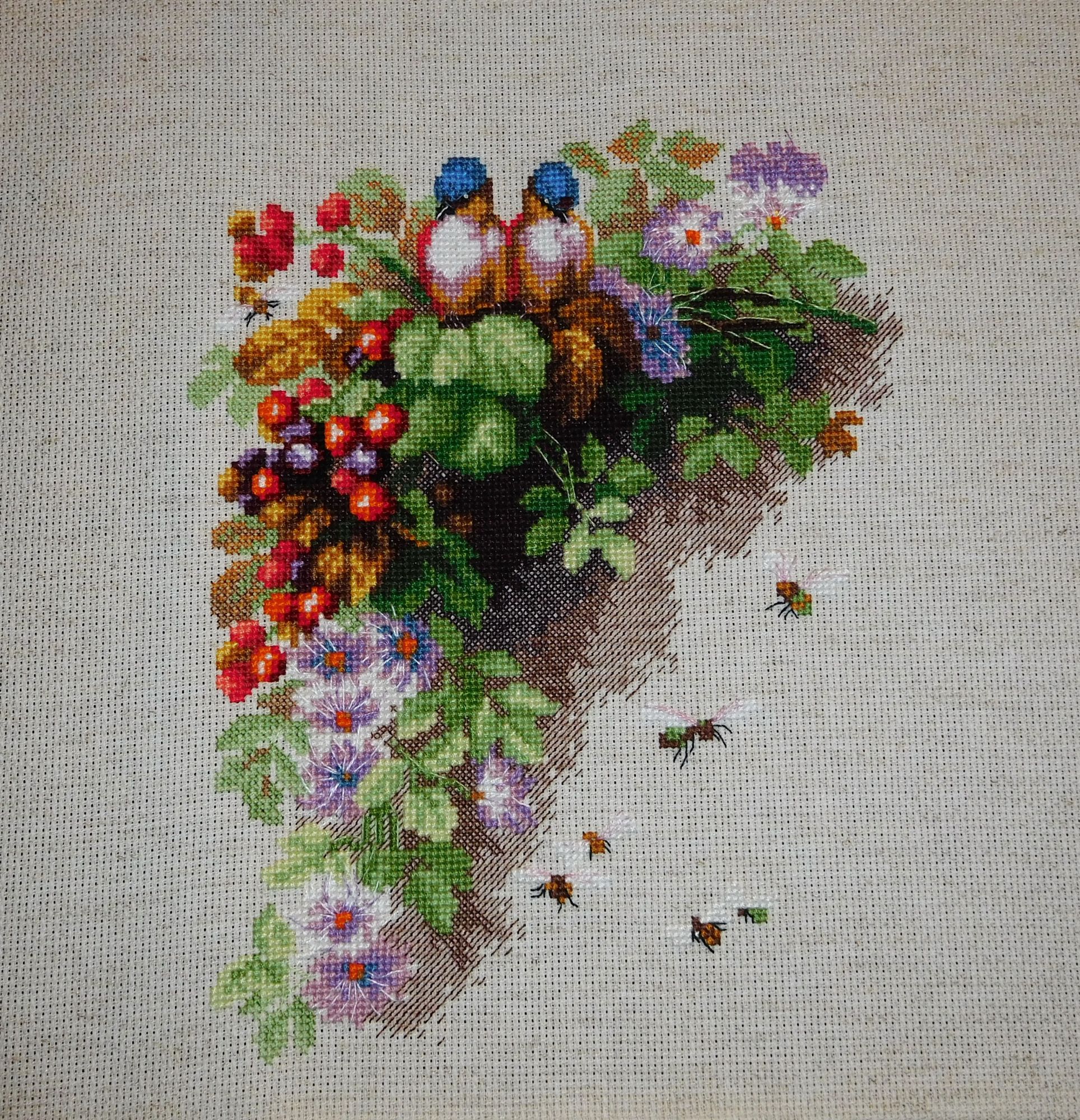 18 июля 2019 Девочки, спасибо огромное за поддержку!!! Я ЗЕЛЕНЮСЬ!!! (фото гаечные) Итак, ЧМ Птички на ежевике Ягоды - крест в три ниточки, есть блэнды - подбирала так, чтобы мулине соответствовало бисеру. Да, не ежевика, от слова совсем, но мне нравится результат Птички оказались слепыми. Бисер блестит, красиво очень, глаз - живой. Просто крестик из мулине - птички ослепли. Пришлось сделать микро фрузелок - 1 ниточка в 1 оборот. Получилось очень красиво Короче, я дико довольна результатом. Перенервничала с бисером, но все получилось и без него. Размер вышел, учитывая мою ошибку и севшую канву - 16,7х21,4. Я очень довольна!!! Канвы по краям осталось много. Я ж рассчитала на 14 каунт, да еще и воздуха побольше. Одним словом - от души отмерила! Мне так нравится результат, что я прощаю ЧМ все ее закидоны. Мне так нравится!!! Так нравится!!! Далее - ВСЕ ФОТО НЕ ГАЕЧНЫЕ!!! Итак, оригинал Набор от Марьи Искусницы То, что должно было получиться у меня, то, что в итоге получилось у меня Что скажу, и там и там что-то нравится, а что-то нет. Надо объединить обе разработки - получится шикарно. П.С. С расстройства по бисеру, начала заведомый долгострой. Поэтому показывать не буду. belyasik, PrimaN, nata2017 и 38 других сказали спасибо Поделиться сообщением Ссылка на сообщение