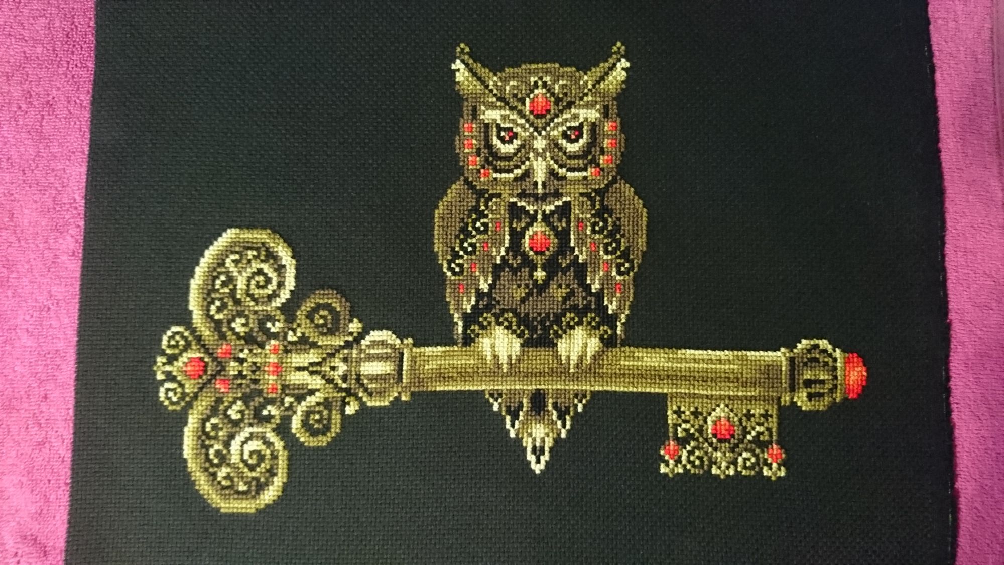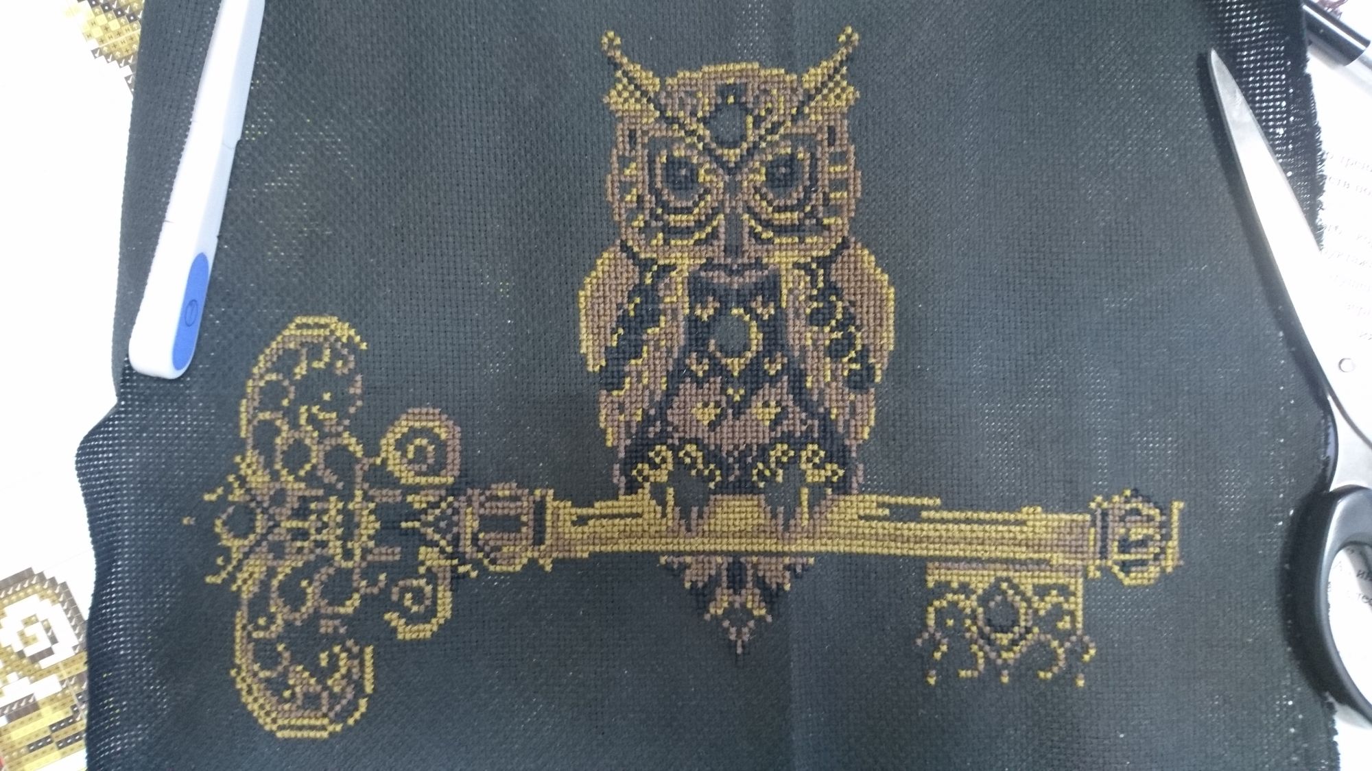 8 октября 2018 Танюшка, приветствую) Даже не знаю, откуда эти вышивки - может из журнала, а может кто-то из знакомых принес просто картинки и она подбором вышивала. Честно - не спрашивала) Всё внимание было приковано к Ангелу) Впечатления от набора Ключ Мудрости... ну даже не знаю) Канва стандартная, удобная для моих глаз Аида 14, не мелкая. Ниточки на Анкор похожи - не такие плотные как ДМС, но и не рассыпаются как Бестекс, такие средние. Хотелось бы понадежнее, но и с этими можно работать. Каждую ниточку из трех вынимала из пасмы, потом уже складывала вместе и вышивала как всегда делаю - не путались, узлом не стремились завязаться. Было очень необычно вышивать в три нити, но потом даже понравилось - крестики получаются такие пухленькие) Много переходов, что при вышивке по цветам не очень удобно. Рисуя следующий цвет, находила, что несколько раз пропускала один-два крестика. Приходилось тут же восстанавливать, иначе потОм не найду) Как уже говорила - начала с темных оттенков, поэтому в процессе Филин посветлел) Ну а когда пошел красный цвет, то тут Филин приобрел поистине серьезный и строгий вид, прям очень хорошо красный цвет дополнил картинку. Бэка нет вообще, чему я несказанно рада))) Всех ниток хватило, запас остался, но небольшой, еще на одну картинку не хватит, а вот на подбор - запросто. Поэтому если кто захочет - обращайтесь) Правда схема там идет с разрывом, с белой полоской между листами - мне нужно было быть очень внимательной, чтобы не ошибиться и не добавить лишний ряд. Но в целом впечатления положительные, каких-либо трудностей не возникло. Ох, а у листиков остались ягодки крестиками, море разноцветного и в разное сложение бэка (понятия не имею, как буду идентифицировать куда бэк вставлять, мне кажется, там на листьях все оттенки одинаковые (оранжевые, сиреневые, зеленые), как буду различать - большой вопрос) и фрузики))) Но будем разбираться по ходу) mamatata, Mizeri, bieloczka и 4 других сказали спасибо Поделиться сообщением Ссылка на сообщение