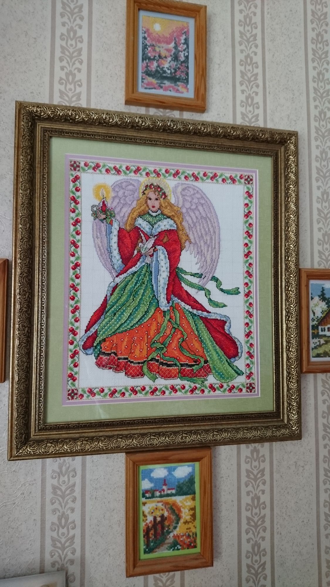 7 октября 2018 всем доброго времени суток кто еще не забыл, я помогала дошивать Ангела, отдала дошитого хозяйке и очень хотела посмотреть как она его оформит. Недавно была у нее в гостях и смотрю - со стены на меня что-то знакомое смотрит))) помчалась за телефоном) Представляю оформленного Ангела) очень хорошо получилось. Оформлялись в той же багетке, куда и я ношу свои работы. По бокам маленькие картинки, символизирующие четыре времени года. Ну как и ожидалось - мой красавчик , и отстиранный и отглаженный , на той неделе пойдет оформляться ну и продвижения в осенних листиках было , стало , продолжаю работать над фоном) bieloczka, Marbll, BlueeYeS и 18 других сказали спасибо Поделиться сообщением Ссылка на сообщение