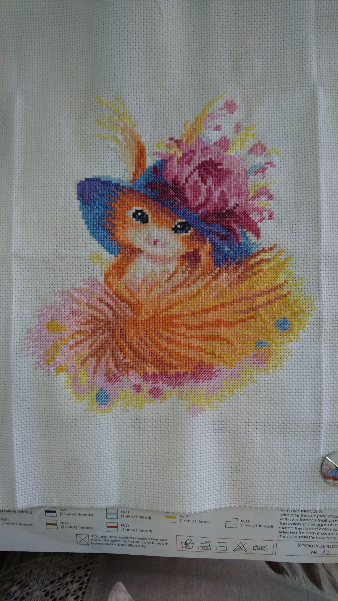 21 июня 2019 С удивлением обнаружила, что с крестом я закончила на Моднице) (для статистики - крестом было 12 чистых цветов и 12 блендов, некоторые цвета используются только в блендах) (к чести дизайнера (Ирина Штро, как написано на упаковке) могу сказать, что схема разработана очень хорошо, и, несмотря на схожие цвета, в схеме очень хорошо подобраны значки, удачное цветовое решение и обозначения - не перепутаешь. И в данном варианте вышивать по цветам - одно удовольствие. Вышивается разумными кусками, нет оторванных 2-3-5 крестиков, стоящих где-то на отшибе. Я везде могу ниткой дотянуться до этого кусочка и продолжить, не обрезая нить и не делая больших протяжек) Остались 4 цвета п/крестом в 2 нити, 3 в одну и, О, Боже! 8! цветов бэка (в 2 и 1 нить поровну)! На такой малышке! Девочки! Это нужно иметь адское терпение или чтобы картинка ну очень нравилась!) Vereena, bieloczka, Marisanna и 10 других сказали спасибо Поделиться сообщением Ссылка на сообщение