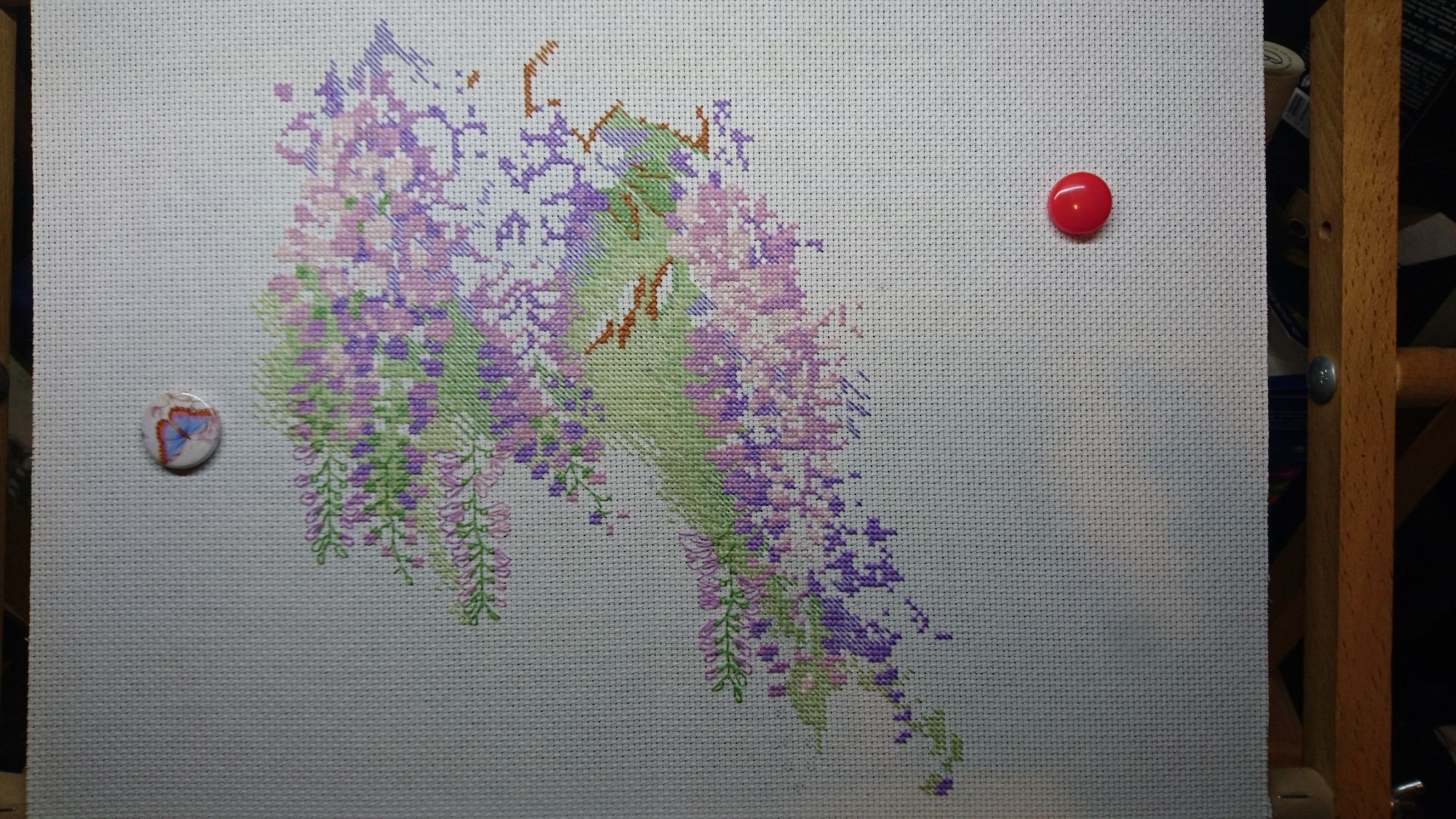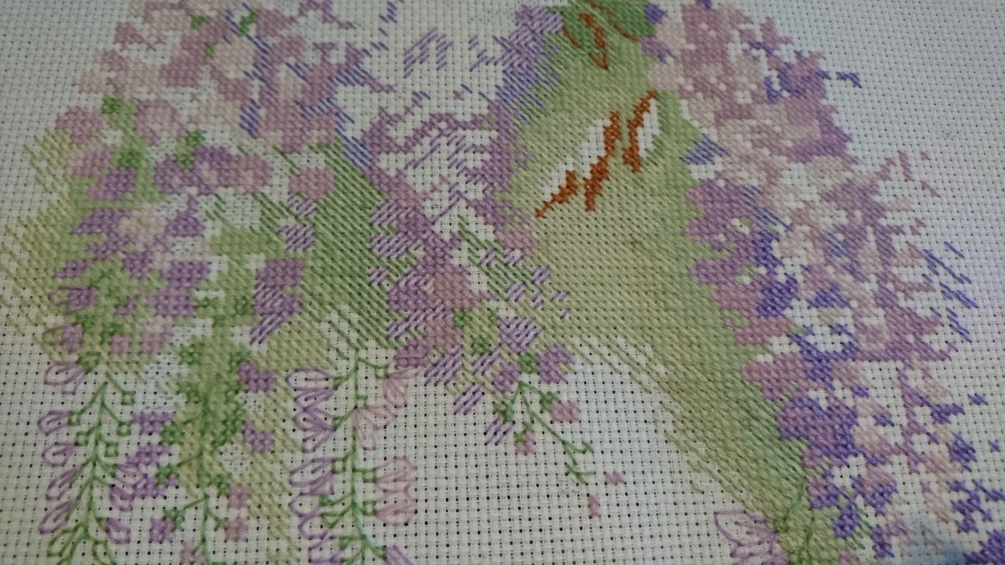 28 сентября 2019 Танечка, большое спасибо! Принесла вам продвижение Глицинии. Что-то она медленно идет( Вроде кажется, что вышила много, отодвигаюсь - а там же, где и была) Нонсенс) как-то пошла и пошла вышивать сначала нижнюю нитку в этих хитрых крестиках) вот что получается и сразу видно, где по ней нужно вышивать другой ниткой верхний полукрест - уж сильно эти полукрестики из общего фона выделяются) а вот уже готовые, закрытые полукрестики и поближе - если приглядеться, видно, что нижняя ниточка розоватая, а сверху на ней сиреневая) так что все оказалось не так уж и сложно) сначала полукрестом по отмеченному прошлась, а потом другой ниточкой "иногородние/иностранные" полукресты закрыла) ну и решила сразу делать "гроздья", посмотрела, что там расстояние между втыканиями в канву небольшое, ниточка сильно при стирке не должна провиснуть. Но как сразу преобразилась картинка! Теперь буду стараться закрывать свободные места в канве. Уж сильно кусочками получается вышивать) mamatata, DjOlechka, titania и 19 других сказали спасибо Поделиться сообщением Ссылка на сообщение