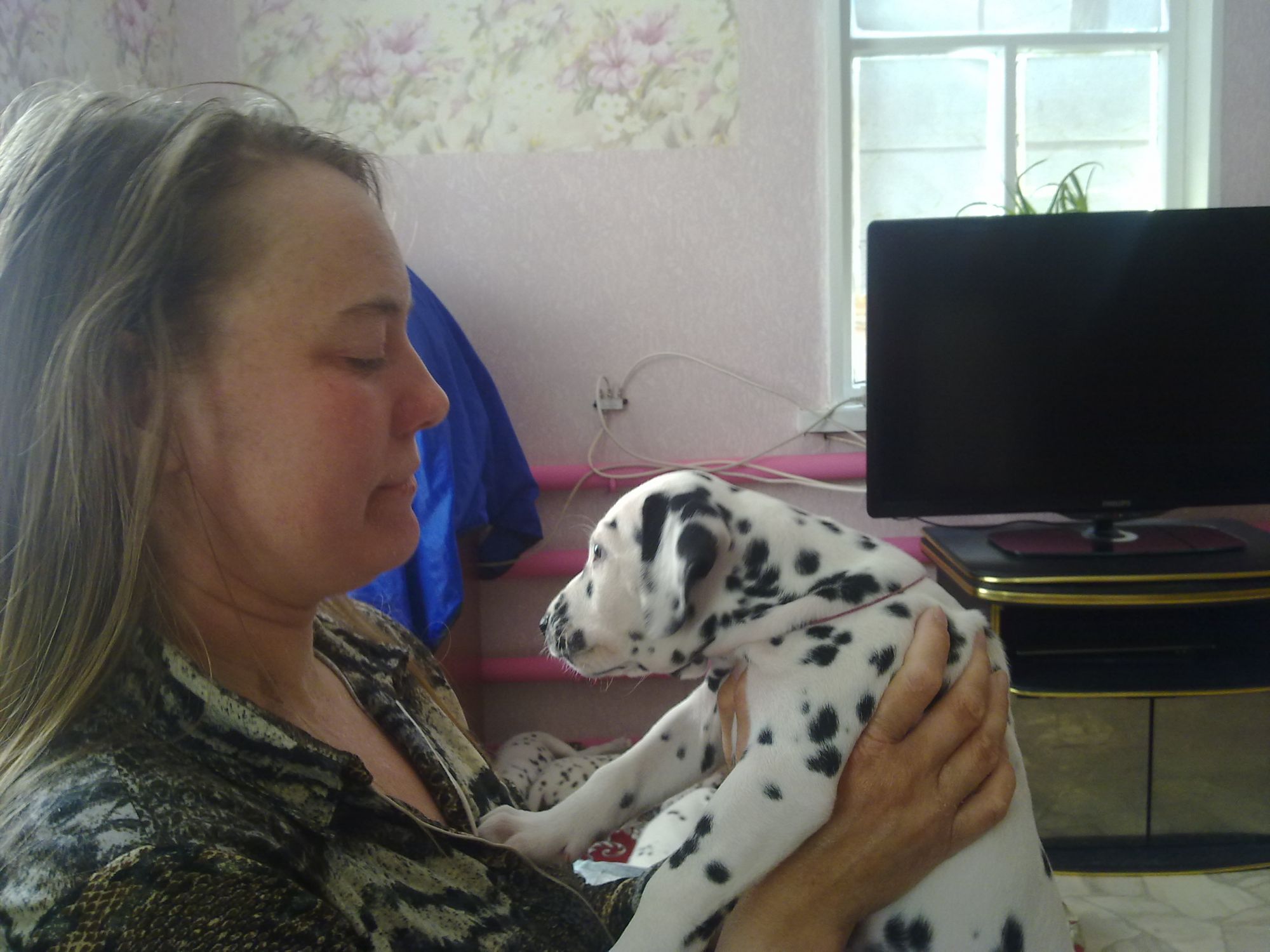 28 мая 2016 а разве алиментных щенков не отдают папе-самцу? (ну, его хозяевам, конечно)) да, выбрать было очень сложно))) мы приехали - у них для этой мелочи отдельная комната, все бегают под ногами, играют друг с другом, один все смотрины продрых между тумбочкой и стеной, пухленький такой))) все это сопровождалось умилением хозяйки и заводчицы, заводчица довольно часто туда наведывалась, заодно рассказывала нам про характеры щенков, какими они будут, когда подрастут (уж у нее-то опыт в этом деле богатый))) ну в общем, коричневых мы даже не рассматривали (их, помнится. было 4-ре), так как это для нас не классические далматины) был один практически без пятнышек))) двух мальчиков, которых мы выбрали по фото на форуме, уже зарезервировали буквально за день до того, как мы туда приехали, ну и решили не зацикливаться на мальчиках, тем более до этого у нас была девочка, что с ней и как - примерно уже знали) Выбрали самую активную, веселую и забавную - отсюда и имя Фанни (Funny). Забирать приехали через месяц, нам выдали кроме девочки корма на 2 месяца, все бумаги, надавали кучу советов, видно, что хозяевам не все равно, что они заботятся о судьбе своей "дочи". Девочка стойко выдержала всю дорогу обратно в машине (ехали где-то минут 40), мы с ней сидели на заднем сиденье. Они так ко мне привязалась, что не отходила от меня неделю, все время за мной хвостиком ходила (да и сейчас старается меня не выпускать из поля зрения, у мамы же всегда что-то вкусненькое найдется))) Потом месяца через два был забавный момент - хозяева привезли корм (у них лишний оставался), я предложила зайти к нам домой. Я хотела посмотреть как отреагирует Фанни, вспомнит ли этих людей. И была очень удивлена - она не только вспомнила - она им так обрадовалась, как человек., хозяйку всю облизала чуть ли не с ног до головы. Вот такая у них замечательная память, даже со щенячьего возраста помнит, кто о них заботился) Galagenka, bieloczka, Shetka и 4 других сказали спасибо Поделиться сообщением Ссылка на сообщение