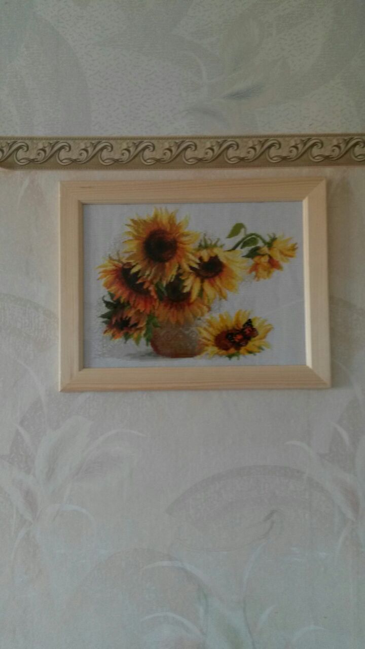 14 ноября 2017 долго ли сказка сказывалась, да не скоро дело делалось. Но так уж совпало, что добралась все же до меня фото оформленных подсолнухов. Вышивала по просьбе коллеги для подарка её тёте. Отдавала в виде тряпочки. А вот в каком виде она сейчас. Оформлено в деревянную рамочку. Возможно, рамочка со временем будет как-то красиво покрашена или как-то по-другому декорирована. Меня заверили, что тётя "с руками", творческая, долго в таком виде томиться подсолнушки не будут) Хотя и в таком виде очень даже хорошо, по-родному рамочка смотрится. В общем, я довольна) -Solovey-, letka, nogres и 20 других сказали спасибо Поделиться сообщением Ссылка на сообщение