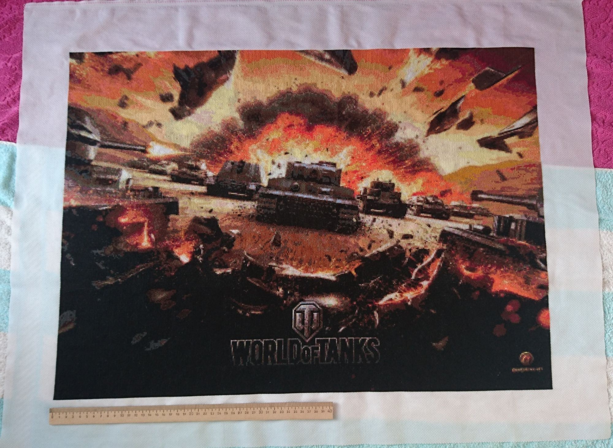 9 января 2018 девочки мои дорогие! Спасибо большое за поздравления с завершением такой грандиозной работы. Я-то уже привыкла каждый день ее видеть на станке да тягать туда-обратно для закрепления нитки. А как на диване положила или как она целиком даже поперек в ванну не влезла - да, тут понимаешь - масштаб) Людочка ЛюдмилаЕр нужно паспарту или нет будет решать муж - я ему сказала, что оформление - за тобой) Ну а места на стене много))) Иришки, картинка практически одна из первых, которые выводятся по запросу "World of Tanks картинки" - эта картина - их "визитная карточка". Тут собран как бы основной посыл всей игры. И хорошо проработанные танки, и взрыв на заднем плане и обломки от горящего танка и осколки на переднем и чтобы хорошо было видно видно логотип - он на черном для контраста. Я сначала сопротивлялась и не хотела отшивать внизу полосу черного. А потом посмотрела на картину в целом - без этой полосы надпись осталась бы как бы висящей в воздухе. Поэтому послушала мужа и сделала внизу черную полосу. Ну а после танков все остальные вышивки кажется так быстро продвигаются - не заметила как вышила сначала листики в Ирисах, а потом и лотосы. Остались сами Ирисы и наверху бутончики (крестиком в одну нить). Размечать такую мягкую канву тяжело - сильно на карандаш давить приходится и все равно плохо видно - как по мылу рисуешь. Так что практически с листа вышиваю) Впервые имею дело с такой мягкой канвой - сильно затягивать нельзя иначе крестик в палочку превращается) Но уже приспособилась. Интересно узнавать что-то новое, применять смекалку, подстраиваться. В общем, продуктивно праздники прошли))) Пушистая, Catopuma, Mizeri и 6 других сказали спасибо Поделиться сообщением Ссылка на сообщение