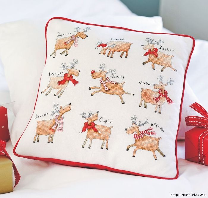 15 февраля 2017 14 минуты назад, Mara_ сказал: подушечка понравилась с такими веселыми яркими оленями Это рождественские олени Санта Клауса. У них имена подписаны по рождественской песенке Клемента Кларка Мура. В центре главный олень Рудольф с красным носом. А вообще их вот сколько: · Дэшер («Стремительный»), · Дэнсер («Танцор»), · Прэнсер («Гарцующий»), · Виксен («Сварливый»), · Комет («Комета»), · Кюпид («Купидон»), · Доннер (Дандер) (от нем. и голланд. «Гром») · Блитцен (Бликсем) (от голл. «Молния»). Эти имена впервые прозвучали в 1823 году в стихотворении «Ночь перед Рождеством». Позднее в американский фольклор вошёл ещё один олень — Рудольф, который стоит во главе упряжки и имеет светящийся красный нос. Он появился в результате чикагской рекламной акции 1939 года. А вообще я люблю сюжеты с историями ЛюдмилаЕр, оленек, Galagenka и 7 других сказали спасибо Поделиться сообщением Ссылка на сообщение