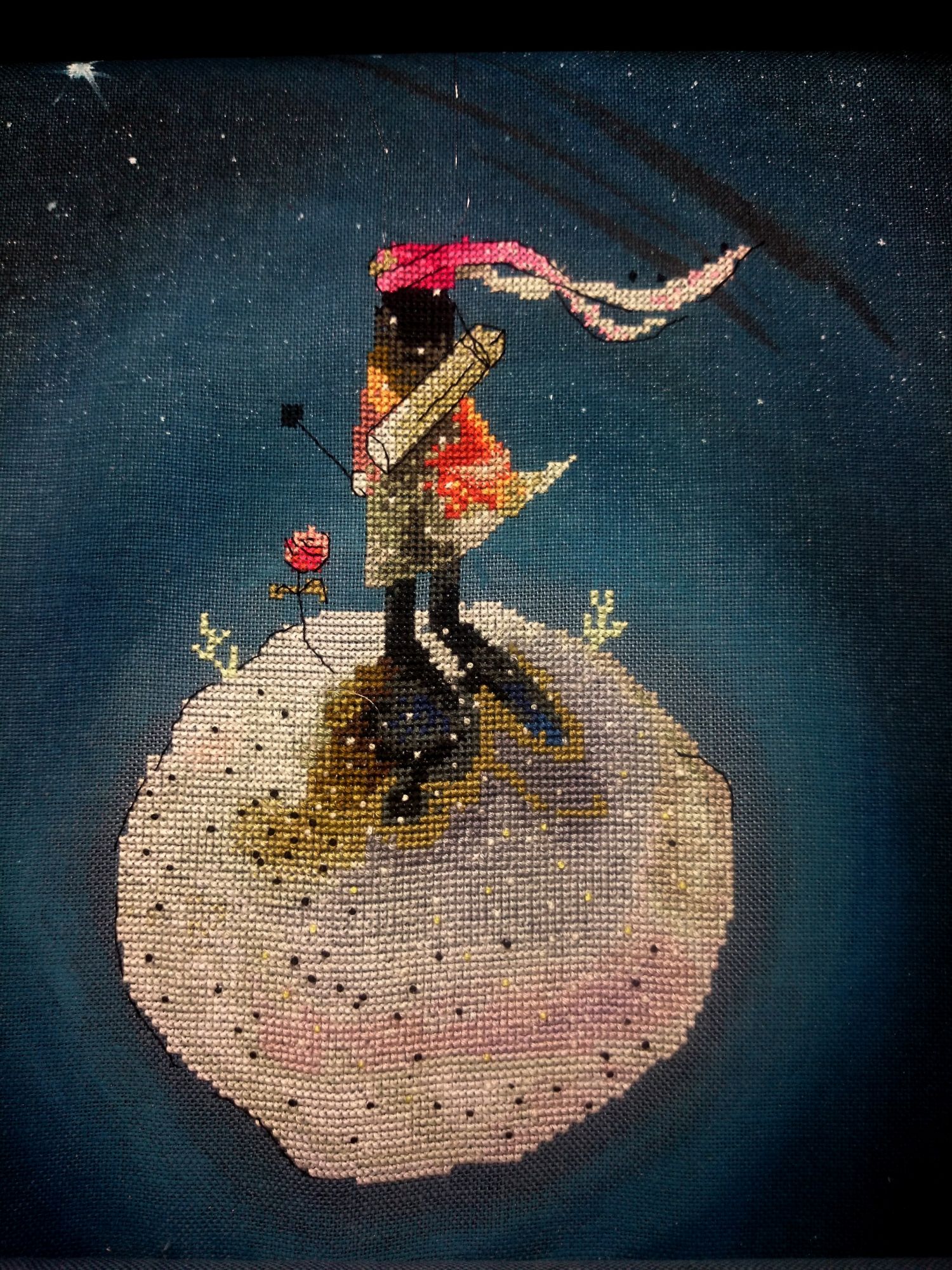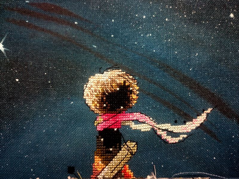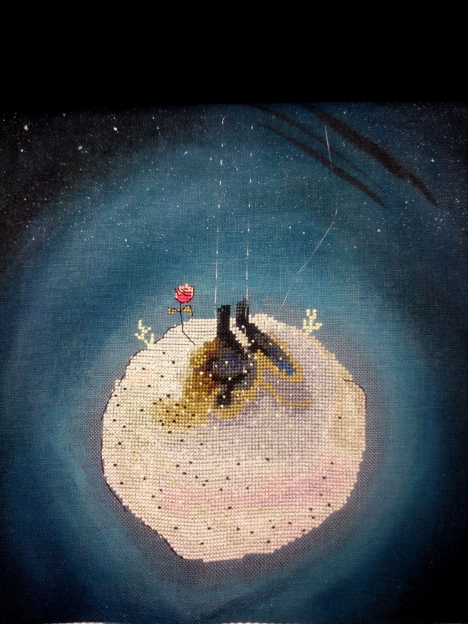 31 мая 2017 Добрый день всем. Очень рада, что могу показать что-то из вышивального, а то меня последнее время понесло в иные стороны увлечений . Я готова наполовину показать свою авантюру, про которую я где-то слегка заикнулась и которую шила между куклами, совами и иными занятиями. Сразу скажу честно, что все держала в секрете, потому что в очень хорошую авторскую схему рискнула добавить свои ощущения по общему фону. Но получившийся результат мне самой нравится и понравился еще одному человеку, мнению которого я доверяю. Кажется, что своими дополнениями я не сильно переврала суть картины и возможно еще кому-то это будет близко. Итак: Полина Тарусова - " Маленький принц" Начало процесса было обычным. Канву подходящего цвета по рекомендации автора я не смогла купить и появился вот такой кусок - Zweigart Belfast 32, цвет 578. На нем были вышиты первые крестики , которые я показала раньше. Но..... чего-то мне не хватало и в голове все время вертелось желание реализовать свое видение этого сюжета. Для этого пришлось заняться изучением вопроса тонирования канвы. Просмотрела кучу мастер-классов по батику, купила краски и рискнула. Сначала покрасила чистый кусок ткани, а потом уже кусок с начатой вышивкой. Пришлось осторожничать с контуром. Ну и чтобы рассказ не затягивать мелочами дальше окраску просто смотрите: Вот на этом последнем куске с продолжила вышивать. Картинка вышивки на покрашенной канве продолжила рисоваться примерно так: Поскольку мелкой белой пыли (по моему мнению) на основе более чем достаточно, я не стала делать белые фрузелки на фигурке принца. Но готова выслушать ваши мнения и исправить, если это будет уместно. В звездочки добавлены малюсенькие кристаллики, которые от света в реальном времени блестят, а на фото просто блеклые стекляшечки. Сейчас, когда картинка видна полностью, наверное надо было бы меньше делать светлый ореол вокруг планеты (но я красила впервые такой рисунок и пока не вижу всех тонкостей , не хватает художественного восприятия будущей картинки в целом). Ну и вот он, МОЙ ПРИНЦ, которого я люблю и который мне нравится таким, как он получился. Я очень надеюсь, что задумку автора я не испортила , поместив его вместо рассветной вселенной во вселенную ночную. Всем спасибо за то, что дочитали и досмотрели до конца!!!!! чеба, Графиня, Гало4ка и 41 других сказали спасибо Поделиться сообщением Ссылка на сообщение