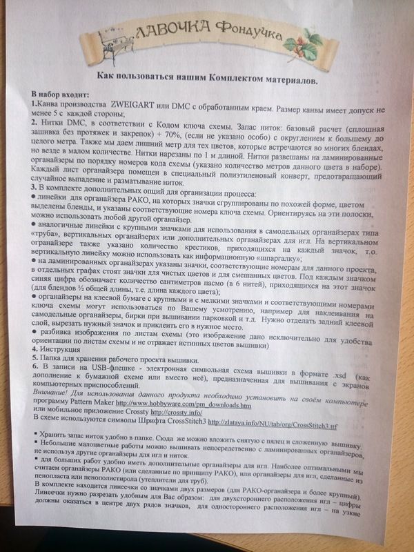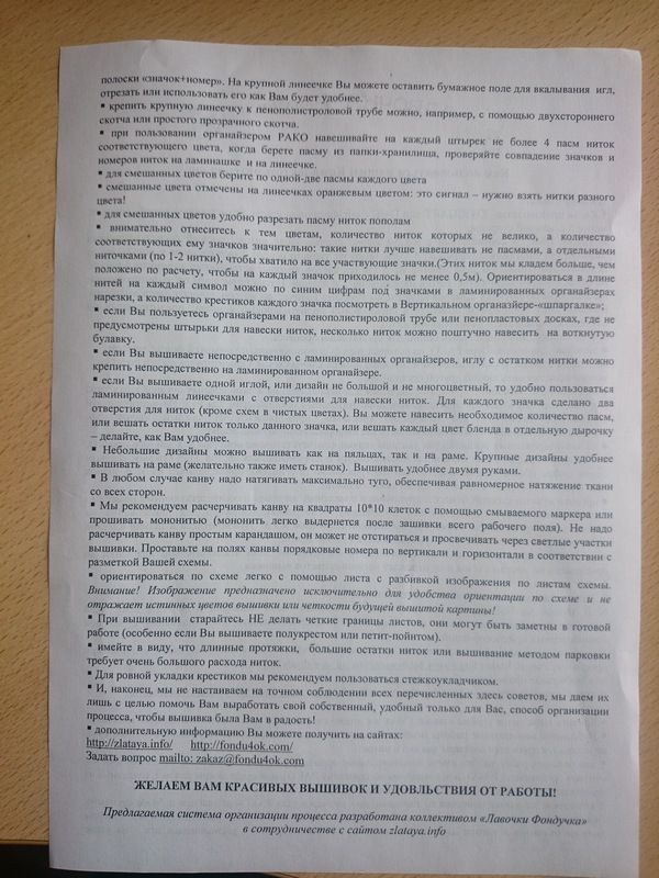 29 июня 2017 21 минуту назад, mamatata сказал: да-да! Фото обязательно! Я постеснялась сразу попросить, погуглила этот набор Нитки написаныДМС, но номеров нет, только порядковый номер в органайзере и значки. Нитки нарезаны по 1 м. Интересно написано про количество. " Запас ниток: базовый расчет (сплошная зашивка без протяжек и закрепок) +70% с округлениемк большему до целого метра (если не указано особо) Также мы даем лишний метр для тех цветов, которые встречаются во многих блендах, но везде в малом количестве" Очень подробная инструкция Канву можно было выбирать разную и количество ниток комплектуется от размера канвы. Представляю такой размер крестиком - удавиться можно. Тут и гобеленовым пару лет шить. mamatata, Anicha, CherepOlka и 18 других сказали спасибо Поделиться сообщением Ссылка на сообщение