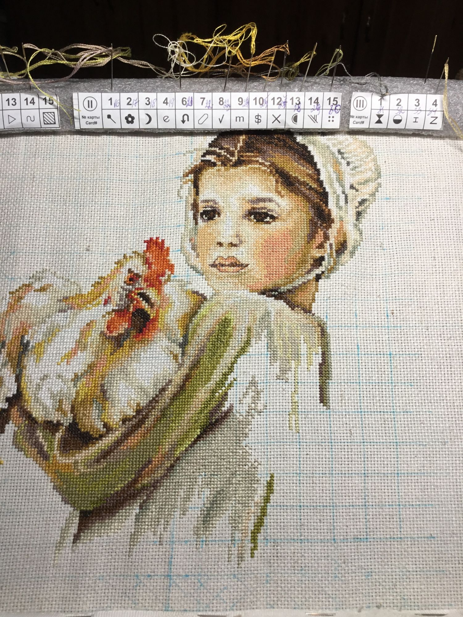 7 ноября 2017 Здравствуйте всем! Вот решила позеленить одну из своих красных гаек. Закончила я РТОшную девочку с петухом. Было Процесс Окончание А это моя красотка постиралась и погладилась кто-то рассказывает ( не буду "показывать пальцем") , что есть волшебный фотоаппарат, который выстраивает крестики под линеечку. Сколько ни пыталась "уговорить " свой планшет снять ровненько, он решил показать все так, как есть , так что сильно не ругайте, но ровность точно не мой конёк. Еще есть в моем конкретном наборе косяк комплектации. Ниток достаточно и много осталось ,но вот один цвет - просто катастрофически не хватило , скорее всего случайная ошибка и прицепили мало ниток. Пришлось изощряться и искать замену. Наконец-то моя девочка с гусем дождалась свою пару и вместе маленькие птичницы отправятся в багету, так что продолжение показа следует....... Anicha, Gala83, FEDORMaзиус и 29 других сказали спасибо Поделиться сообщением Ссылка на сообщение