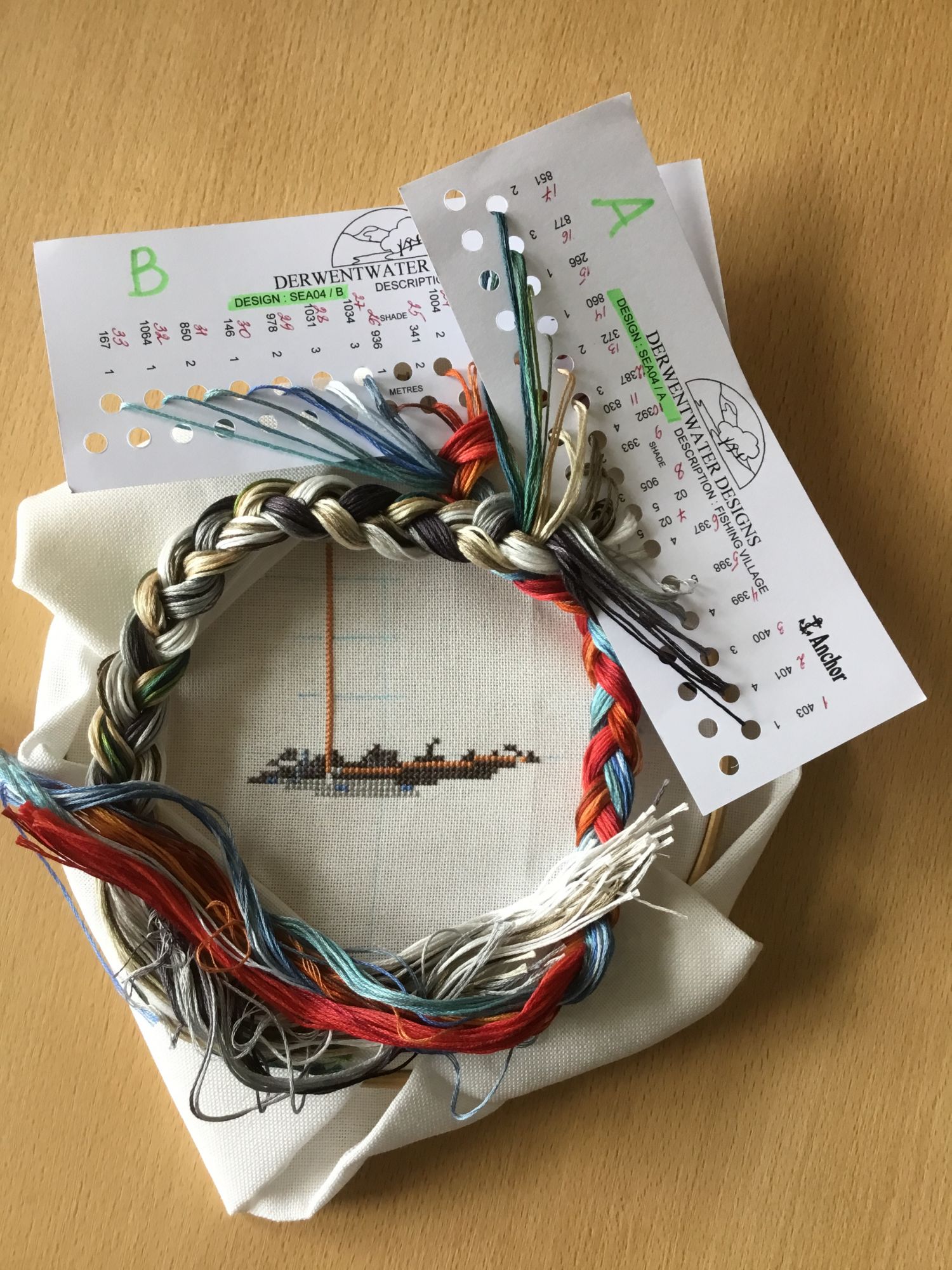30 августа 2018 Доброе утро всем. Что- то не спится с утра и решила к вам с утра пораньше с последним летним отчетом. Забрала вчера из багетки Викторию. К сожалению в багетке произошла техническая неточность с багетами и я получила не совсем то, что заказывала, но переделывать времени нет ( не успею к дате предполагаемого подарка) так что Новый владелец сам потом будет решать, оставить так, как есть или переделывать. Впечатления у меня совсем неоднозначные, сказать, что мне не нравится , не могу, но и удовлетворения пока нет. Должно было быть и то, что сделали фото разныепо оттенку из-за света, на самом деле рама белая, как на первом фото. Поставили красную рамочку в два раза шире, чем я хотела и мне кажется, что выглядит тяжелее. И в честь 1 сентября и нового учебного года решила открыть несколько красных гаечек, чтобы не скучно было Процесс 1 - Риолис 1569 Процесс 2 - Риолис 1670 в двух наборах была канва 11 и предлагается вышивка в три нитки. Мне не нужен такой размер и я не люблю шить в три нити, поэтому в обоих наборах заменила канву на 14 и шью в 2 ниточки. В зиме есть бленды 2+1, но на тех оттенках и по одной ниточке должно быть приемлемо. Лето укомплектовано нитками старой намотки, просто в моточках , а зима - намотана по другому - на картонках. Если сравнивать удобство - мне на картонке менее удобно. Каждую ниточку надо отдельно откручивать каждый раз, а из пастмы в навеске вытягивать легче и быстрее. Шерсть ложится такими пухлячками, и даже у меня получается почти ровно Всем хорошего дня и удовольствия от крестиков. mamatata, оленек, apanjul и 28 других сказали спасибо Поделиться сообщением Ссылка на сообщение