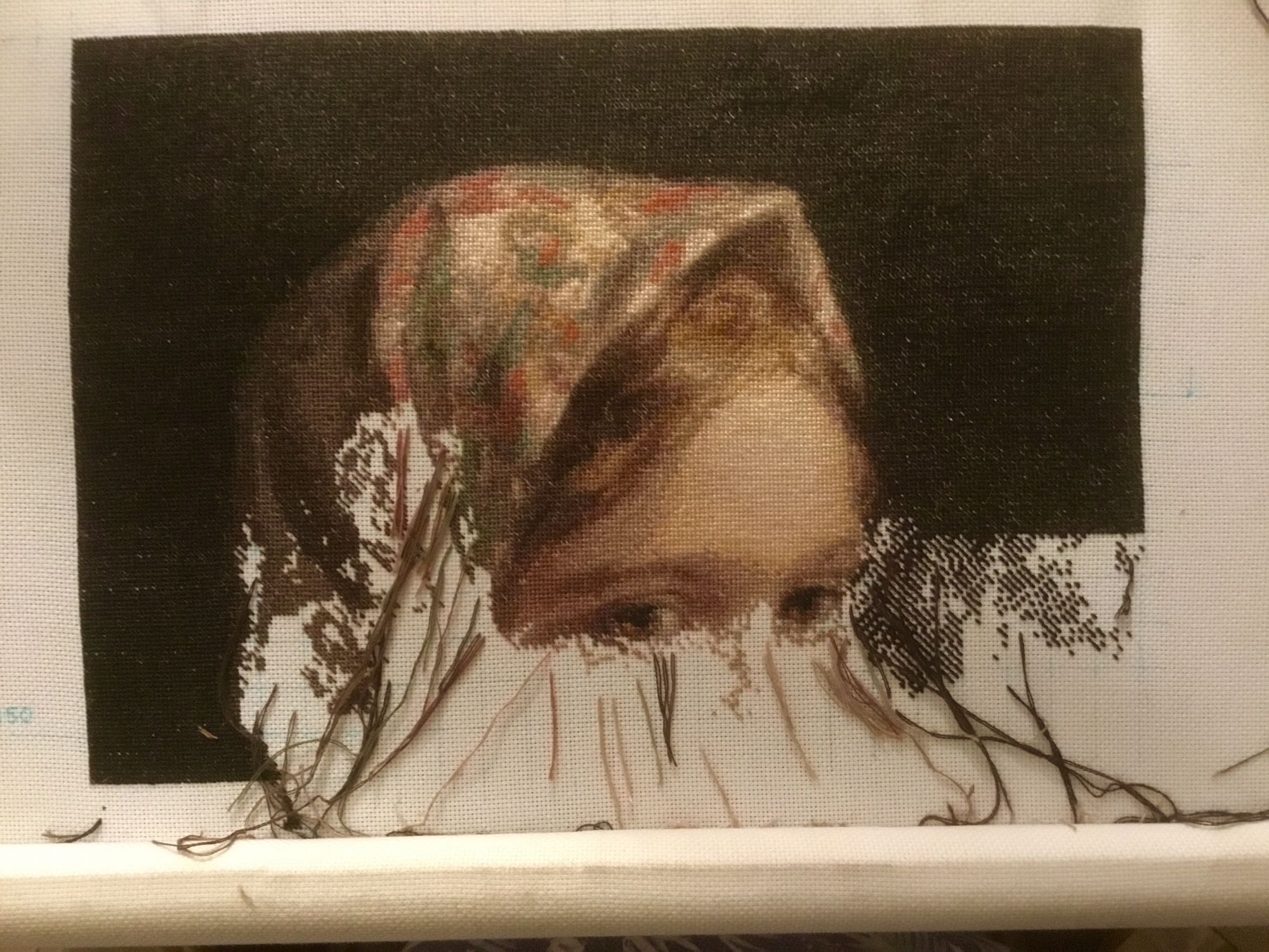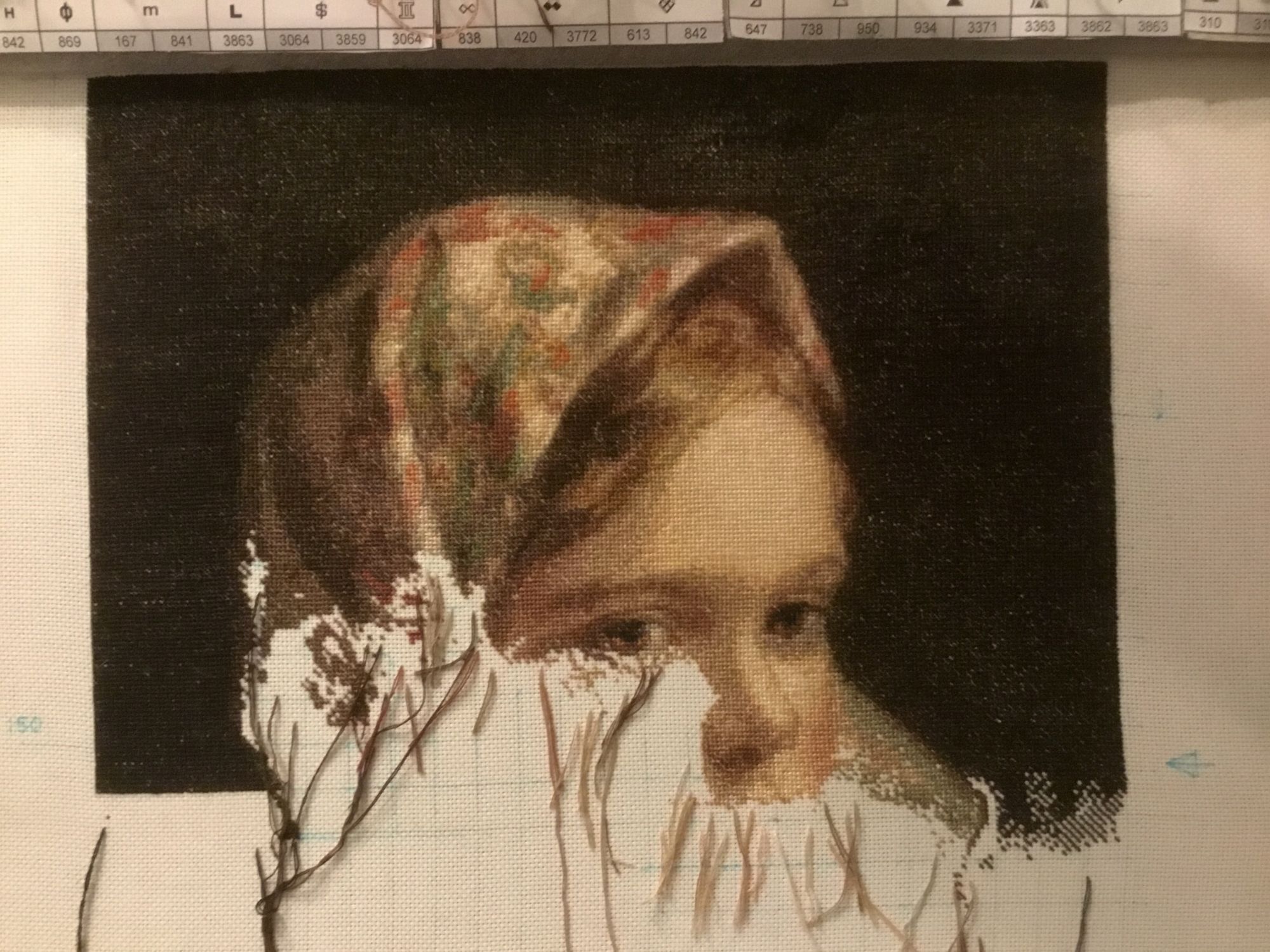 3 сентября 2019 12 часов назад, makalicha1970 сказал(а): Ой, Таня, отчаянная ты вышивальщица! Ника, уж не знаю, какая я вышивальщица, но авантюристка точно . Поскольку я прокукарекала, что если определится дизайн , я открою новую гайку , придётся выполнять обещание. Но перед открытием гайки должна дать пояснения, что же это будет ... Когда-то давно меня очень поразила история одной вышивки на другом форуме, где был факт присвоения чужой работы. Кто-то выложил фото якобы своей вышивки, но так сложилось, что это попало на глаза настоящему автору вышивки. Были большие разборки авторства с прикладыванием фотографий с вышивкой в руках, интерьера, на котором она была снята и всякое иное. Вот тогда у меня и появилось желание хоть «блоху» , но добавить отличительное место на своих работах. А в итоге этот порыв вылился в пробы своих схем и тех переделок, без которых я уже не могу в силу своего противного характера и чем старше становлюсь, тем все больше меня это затягивает . Так что уж вам остаётся либо принять мои авантюры, либо просто пройти мимо и не обращать на них внимание (типа «пусть придуривается», если делать нечего) Ни в коем случае не претендую ни на какое ободрение, просто это то, что мне хочется делать для себя. Итак: схема из интернета , где она была подписана, как эсте. Но поскольку источник не оригинальный (Эсте может быть гарантированным только на официальном сайте), я позволила себе усомниться в абсолютно точной версии. Картинка очень приличная по схеме, размер 240*317 , цветность прямых оттенков 58 и блендов 65. Всего цветов ниток 76. Позиционировать это как оригинал я не буду точно, поэтому для меня это схема из инета, а раз это так, позволила себе её посмотреть подробно и в итоге у меня получилась смесь следующего состава : Новый процесс « Девочка в платке» По мотивам неизвестного художника размер 240*317 нитки ДМС - 53 номера, в том числе 34 прямых цвета, 36 блендов. Основа 22 каунт , техника гобелен. Исходная картинка и мои первые кусочки вышивки дальше должно быть повеселее, а пока чёрный «квадрат» обрисовывает контуры будущей героини картины. Пока все. Сразу прошу прощения у тех, кто будет следить за этой работой, если мой эксперимент окажется не очень удачным .... (я не художник, я только учусь..... ) МамаЛё, ОльгаВл, Ксен40 и 25 других сказали спасибо Поделиться сообщением Ссылка на сообщение