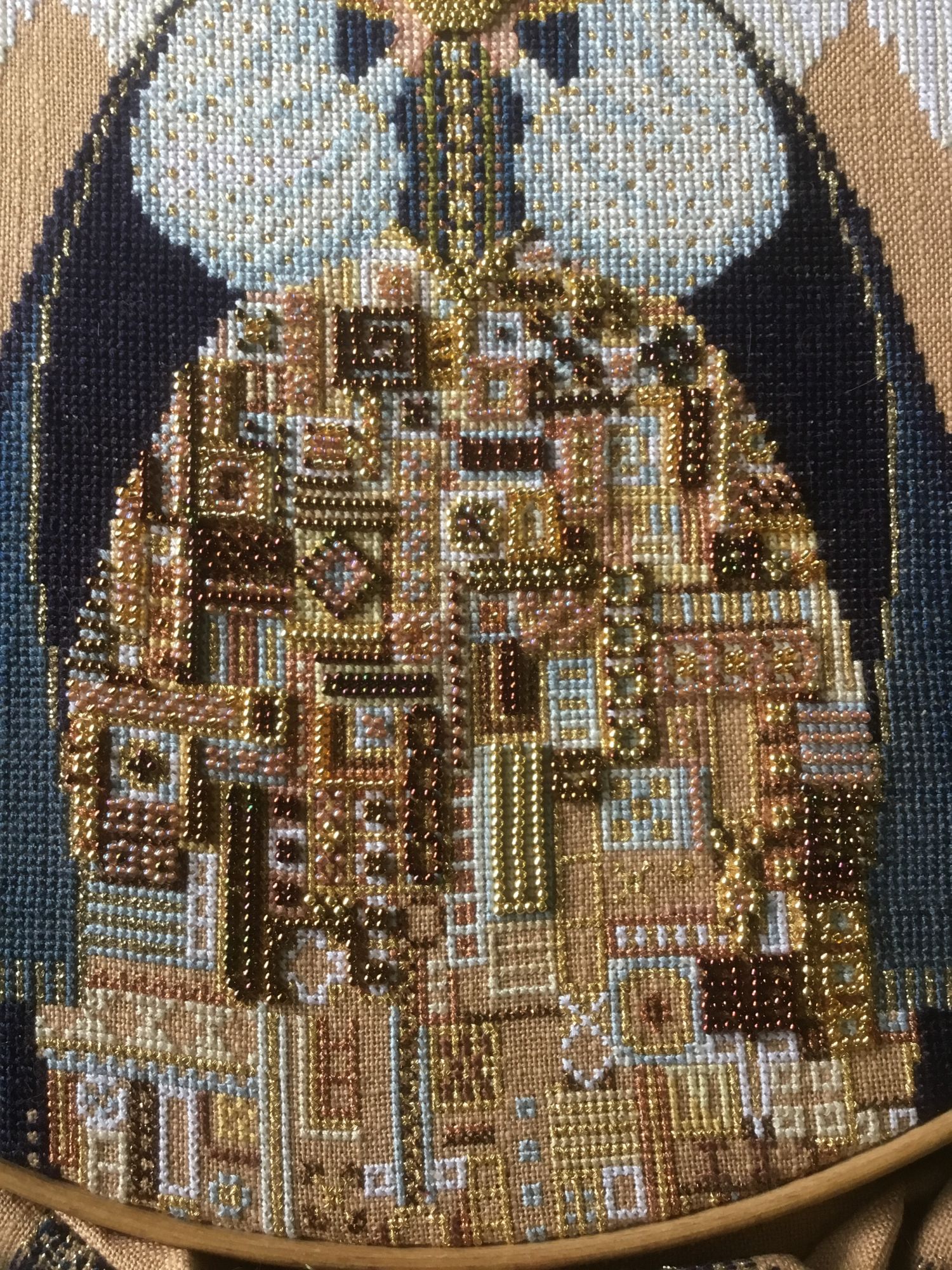 23 марта 2020 Девочки, отвечаю всем сразу, кто заметил моего Ангела. СПАСИБО всем огромное, мне оооочень приятно, но этот ангел действительно достойный! Юбку шила просто с упоением, сначала безумно нравился узортолько нитками, смотрела и думала - ну зачем ещё и бисер, если и так красота !!!! Потом начала пришивать бисер и тоже он меня заворожил. Но после отшива бисера точно пришла к моему собственному мнению - ниток можно было столько и не смешивать, многие одиночки просто утонули под бисером и хорошо виден узор только в местах, где бисера нет. Конечно фон ниточки дают, без сомнения, но не все оправдано с моей частной точки зрения. Разработка очень хороша Один номер бисера не понравился в работе. Все кругленькие бусины, а этот не очень круглый и даже на 14 каунте бусины толкаются и кривятся.... Вчера отнесла в багетку и скоро ( две недели ) жду результат ..... Есть ещё один хочушный ангел полной комплектации, но покарешила его не шить, устала от металлика - три работы подряд это уже напряжно, хотя приспособилась практически как нитками - рука набилась и шилось не так сложно, как первая работа. irisheckin, Надежда Минск, makalicha1970 и 6 других сказали спасибо Поделиться сообщением Ссылка на сообщение
