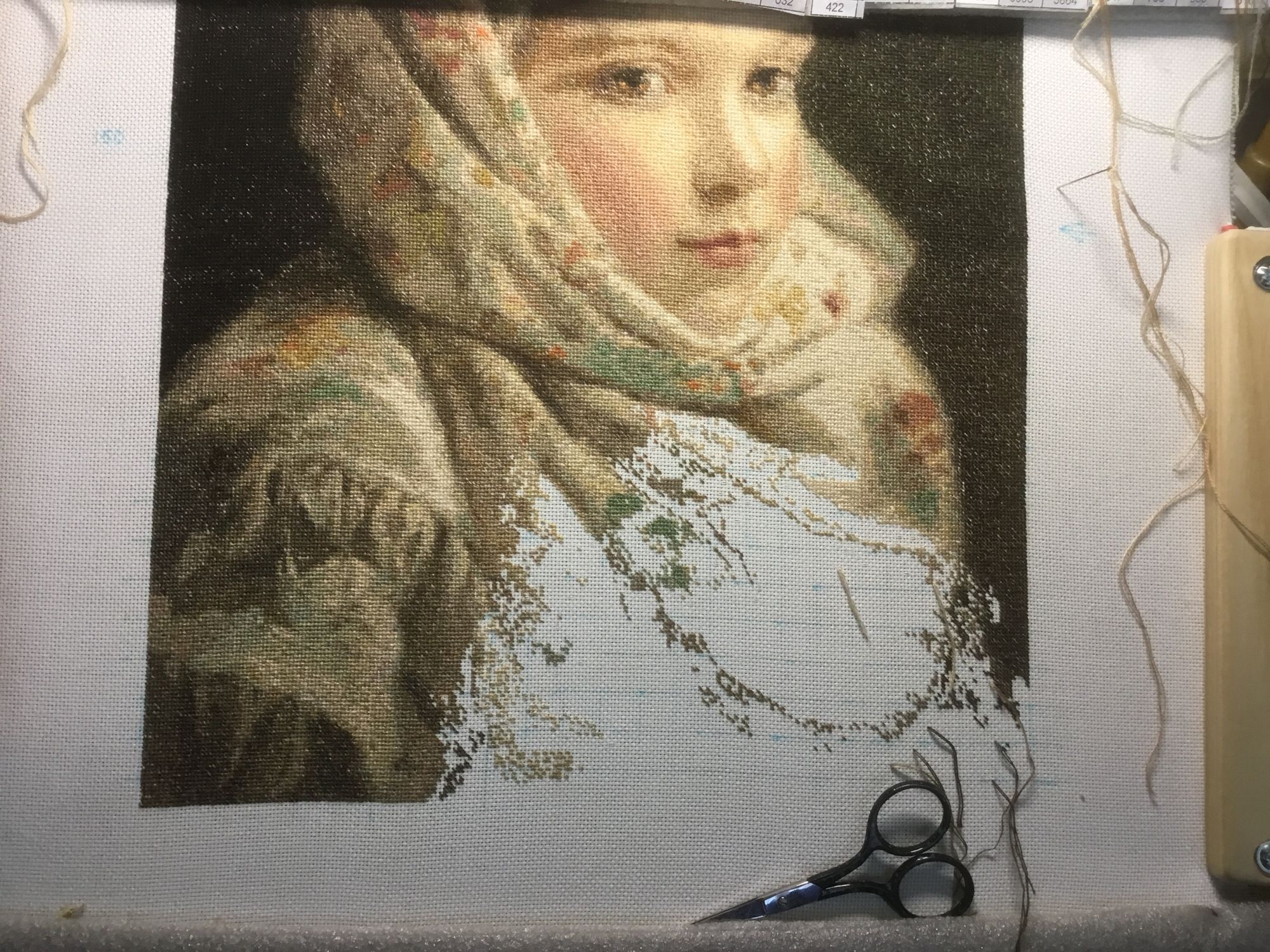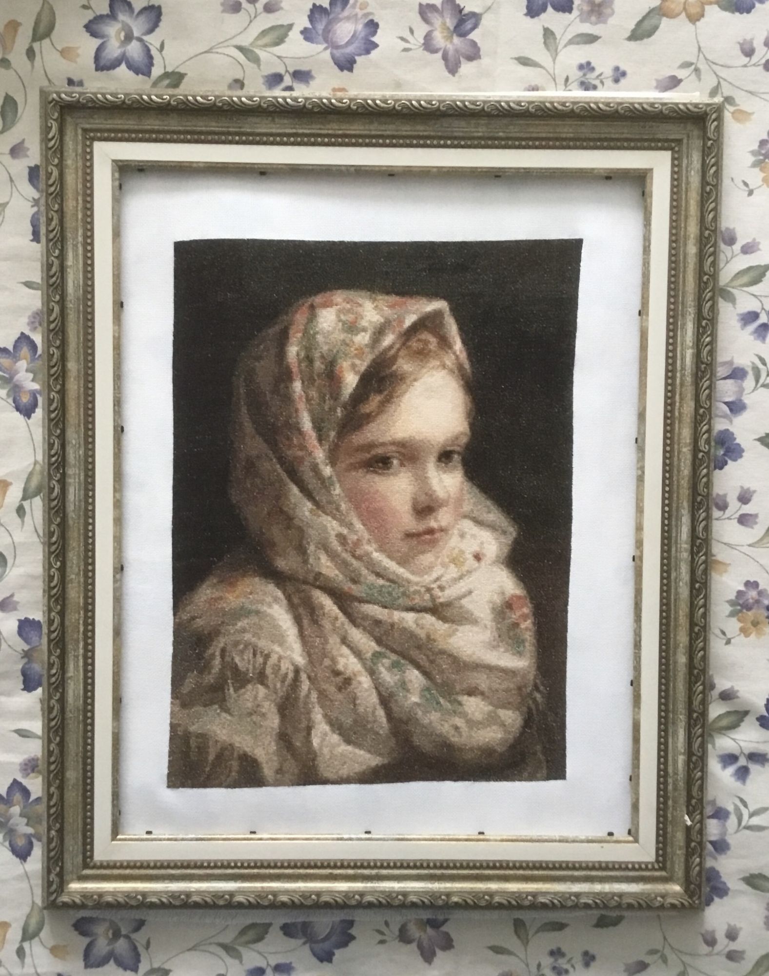 14 мая 2020 Всем привет. я закончила свою девочку. Еще раз напомню, что это схема не Эсте, а найдена в интернете. Канва 22 каунт, гобелен. Размер 340*213 , количество цветов ниток 53, чистых цветов - 34, блендов - 36. Нитки СХС. Вышивала с 18.04.2019 по 14.05.2020 по календарю больше года, но по дням получилось 52 дня. Зеленим гаечку!!! несколько фото окончания процесса и завершение не для гаечки приложила дежурную раму от другой вышивки Пока не могу сказать, сто я всем довольна. Есть нюансы, которые я уже исправить не смогу. 22 каунт для гобелена оказался «прозрачным» и светится , попробую постирать так, чтобы максимально посадить ткань, может поможет. Но все равно эта девочка мне нравится и будет оформлена. Спасибо всем, кто обратил на эту вышивку внимание. Пикусёнок, МамаЛё, nogres и 23 других сказали спасибо Поделиться сообщением Ссылка на сообщение