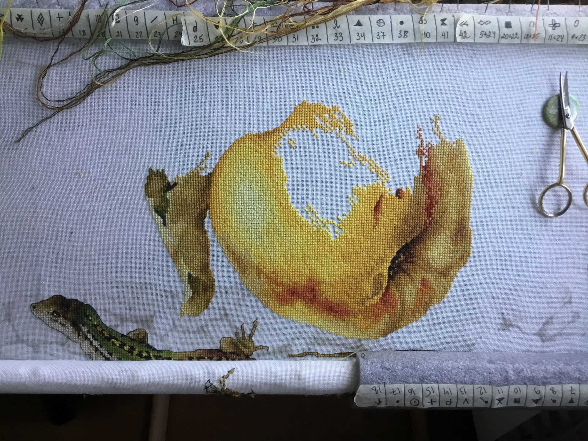 23 августа 2021 Рада приветствовать всех, кто зайдёт на мою страничку, всех, кто вспомнит меня и всех, кто просто зайдёт в первый раз. Меня долго не было здесь, не было новых начатых работ, но я всё-таки немного вышивала в промежутках между другими занятиями и мыслями, поэтому готова показать и открыть два новых процесса . Они не будут такими быстрыми, как некоторые ранее. Для новых гаечек...... Первый процесс - давно купленная схема Волковой «Айва» Начала вышивать с самого интересного для меня элемента - ящерицы и вот она моя красотка без бэка и с бэком Начало айвы и продолжение ( пока без бэка) kreolka, Lucia-del-Umago, makalicha1970 и 21 других сказали спасибо Поделиться сообщением Ссылка на сообщение