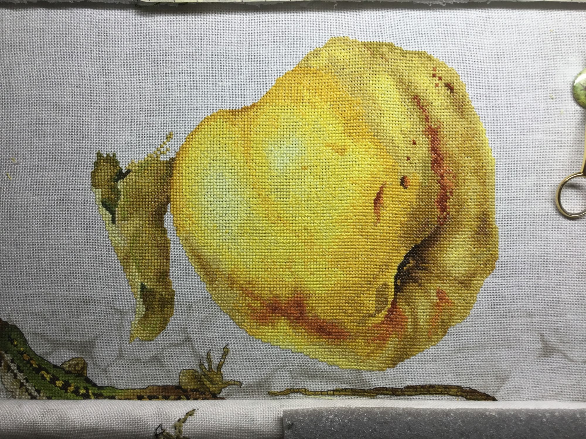 19 октября 2021 Всем привет А я сегодня пришла позеленить гаечку !!!! Процесс - схема Екатерины Волковой Айва с ящерицей Последние два фото в процесс листочки без бэка и вся картинка в целом завершённая Поскольку канва у меня с принтом камушков, полукрест фона на схеме я не шила….. Теперь можно начинать что-то новое . Возможно это будет инжир с жуком, чтобы оформить потом все вместе, а может быть что-то ещё не очень большое, потому-то одного большого процесса Эсте мне более чем достаточно . Пока перебираю свои запасы и выбираю . Всем хорошего дня Надежда Минск, ОльгаВл, Хозяйка смешных зверей и 14 других сказали спасибо Поделиться сообщением Ссылка на сообщение