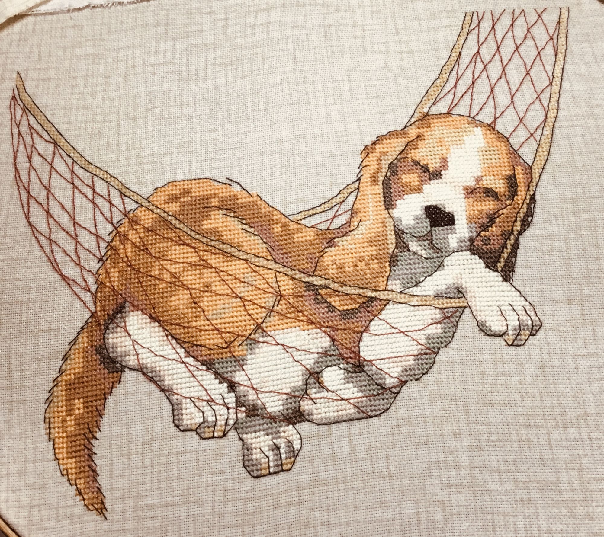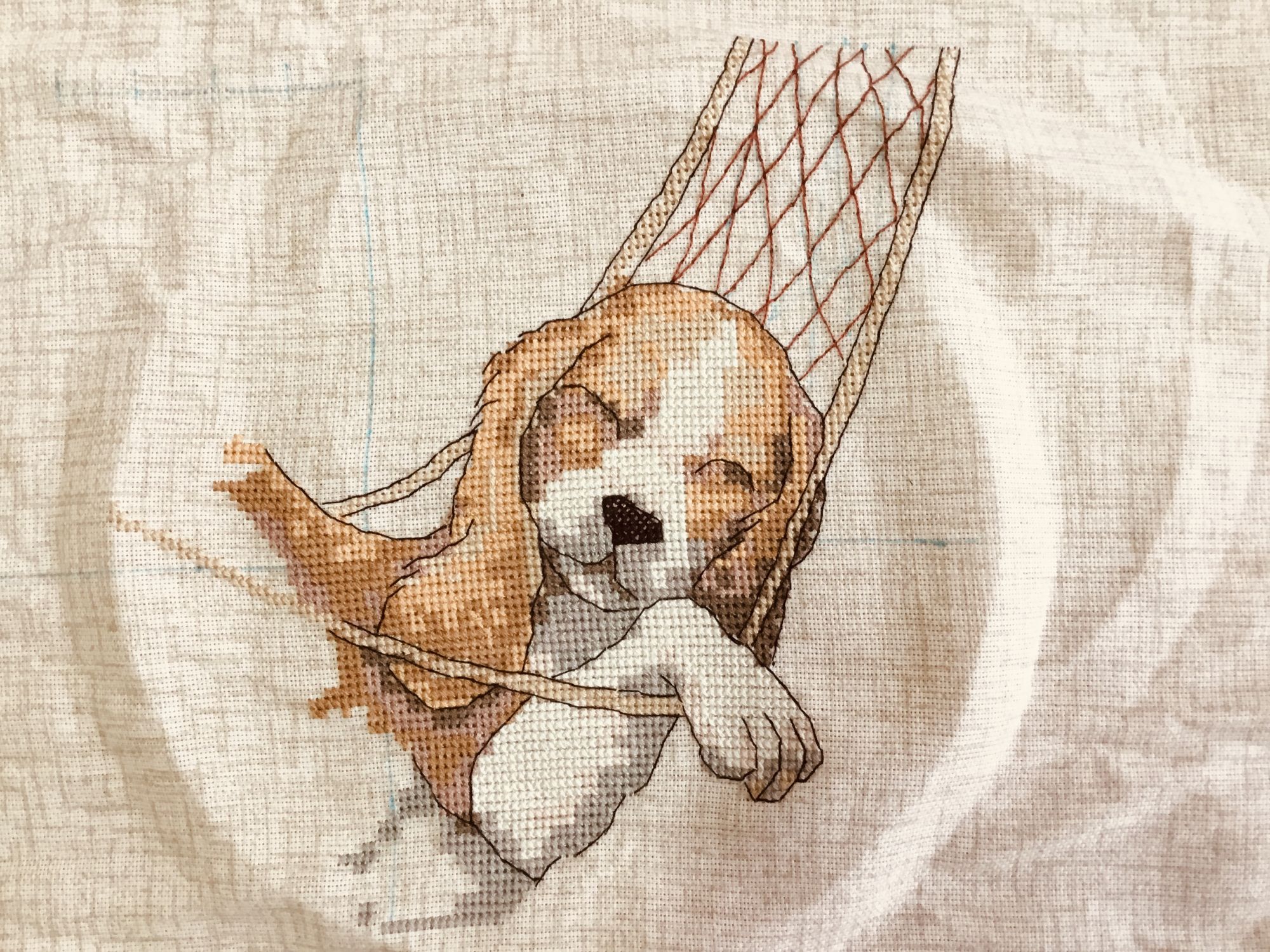 16 июля 2022 18Начинаю новый процесс по просьбе моих детей. захотели они подушки декоративные …. Предложила им разные варианты и к своему удивлению они выбрали аж 4 штуки ( по 2 разного дизайна) Первая пара будет вот такая Думаю, что кто-то узнаёт эти дизайны, но для того, чтобы они по размеру совпали, мне пришлось ДИМ ( собаку ) увеличить, а лису дорисовать начала с ДИМ…… Dimensions 65058 Сон - радость жизни (The Good Life), 18х13, аида 14, счетный крест (В моём варианте увеличения на 14 каунте 28*18) и начало процесса … для подушки взяла хлопковую ткань рогожка, которая не совсем квадратная, о где-то процентов на 20 одна сторона более вытянутая , но для этих дизайнов это совсем не критично…. На фото видна разница в прямоугольных крестиках на мордочке собаки меня не напрягает вытянутость крестиков и она вполне гармонично смотрится ( чуть вытянута по высоте относительно оригинала) Вышивается быстро и легко, так что эту пару закончу быстро… Каори, Catopuma, PrimaN и 23 других сказали спасибо Поделиться сообщением Ссылка на сообщение