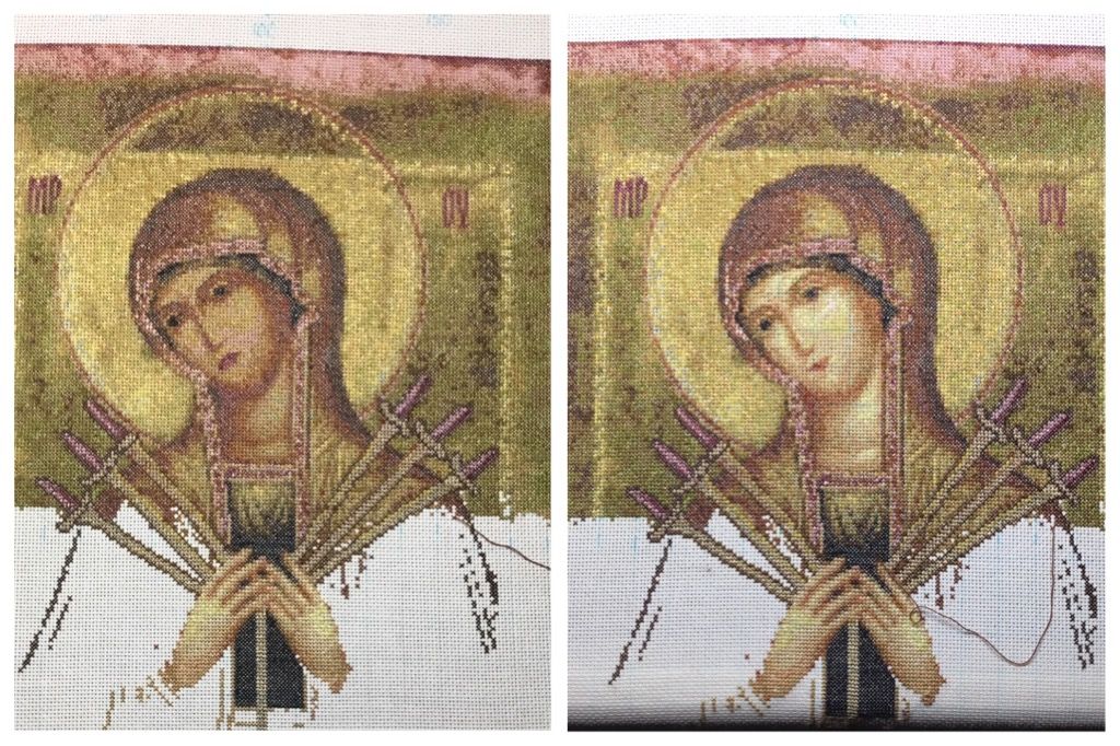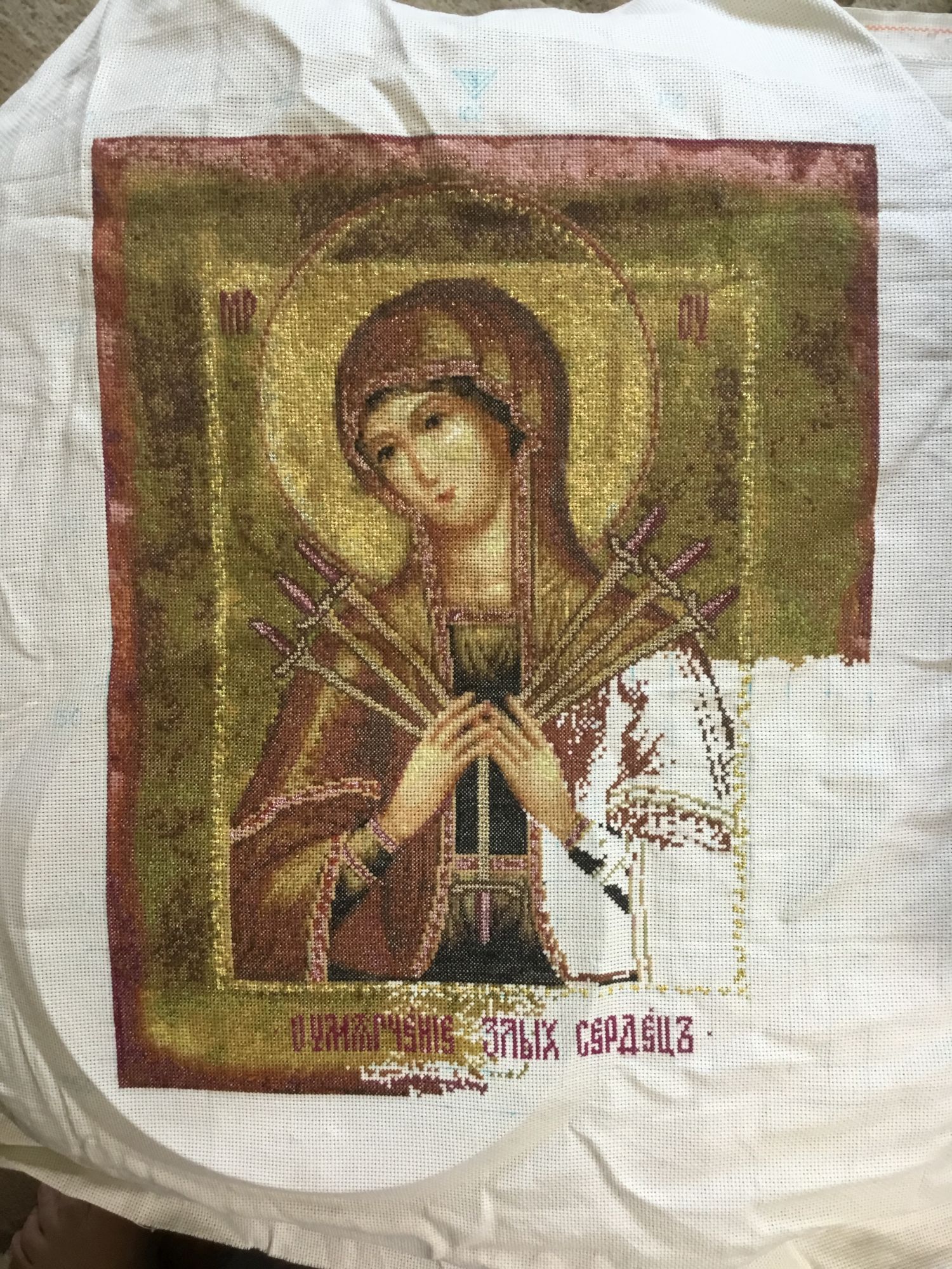 3 июля 2022 Здравствуйте. Сейчас не получается часто заходить на сайт, но сейчас я закончила свою работу и может быть кому-то будет интересно ее увидеть. Семистрельная икона Божией матери - о смягчении гнева, обид и недопущении войны, о примирении всех враждующих….. Размер схемы 200*250, нитки ДМС 56 оттенков. Вышито на 20 каунте в одну ниточку. Вышивала с 3 марта по 1 июля с перерывам в один месяц…. Примерная картинка, с которой делалась схема Процесс вышивки Здесь смена оттенков лица и рук и результат на 20 каунте работа получилась не большая всего 25*31 см, но по количеству крестиков заняла много времени….. Спасибо, что посмотрели Всем добра и мира …. Gala83, 19199707770, musya и 22 других сказали спасибо Поделиться сообщением Ссылка на сообщение