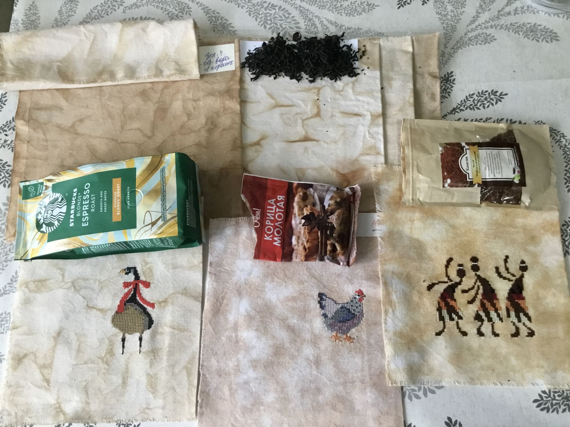 28 ноября 2022 Татьяна, благодарю за подробный мастер-класс! С удовольствием записалась бы к вам на курсы, если бы такие были Покрашенные вами образцы долго, с интересом рассматривала. Еще раз, основываясь и на своих образцах, и на ваших, сделала для себя вывод, что оттенки при покраске чаем и кофе (и иногда корицей) практически одинаковые. А вот то, что зеленый чай даёт такой же оттенок, как и чёрный, явилось для меня открытием. 26.11.2022 в 13:08, tashu02 сказал(а): Сверху кусочек, который просто покрашен в растворе зелёного чая, а нижний постиран сразу в горячей воде со стиральным порошком. Он сразу стал темным во время стирки. Удивительно! По логике, после стирки он должен был бы посветлеть, а обернулось всё совершенно неожиданно! О, сколько нам открытий чудных готовят краски, ткань и чай! 26.11.2022 в 13:08, tashu02 сказал(а): Обратила внимание на то, что более светлые пятна у вас получаются светлее, чем у меня в моих опытах, и это смотрится эффектнее. У меня почему-то даже при смятии цвет участков, которые должны быть светлыми, всё же несколько темноватый. 26.11.2022 в 13:08, tashu02 сказал(а): Очень интересный эффект! А как выразительно на таком романтичном фоне смотрится розочка! 26.11.2022 в 13:08, tashu02 сказал(а): 26.11.2022 в 13:08, tashu02 сказал(а): ( снежинки у меня точно не получились). Первая мысль: как это похоже на дождевые потёки на окне! Ткань получилась фантазийной и завораживающей! Когда писала о "снежинках", имела в виду что-то типа окраса, как на втором кусочке справа: голубой фон с белыми хлопьями снега, но мне нужно, чтобы эти хлопья были как бы размытыми, не такими отчетливо выраженными, как на фото Наверное, тогда просто лучше взять кусочек синей ткани, увлажнить и потыкать в него ватной палочкой с отбеливателем? 26.11.2022 в 01:20, tashu02 сказал(а): Ангел красоты необыкновенной! Почитала, каким образом окрашена канва. Восхитилась вашей фантазией! Поняла, что здесь использованы веточки туи, которые вы положили на ткань, и сверху побрызгали краской. Однако для меня осталось загадкой, каким образом получились разводы? Ведь смять ткань с веточками туи невозможно? Значит, использовался какой-то другой приём? 26.11.2022 в 13:08, tashu02 сказал(а): Надеюсь, что не очень утомила длинными рассказами. Совсем нет! Буду ждать продолжения ваших мастер-классов, когда у вас будет время и настроение для экспериментов! Спасибо за то, что делитесь своим опытом! tashu02, PrimaN, Надежда Минск и 2 других сказали спасибо Поделиться сообщением Ссылка на сообщение