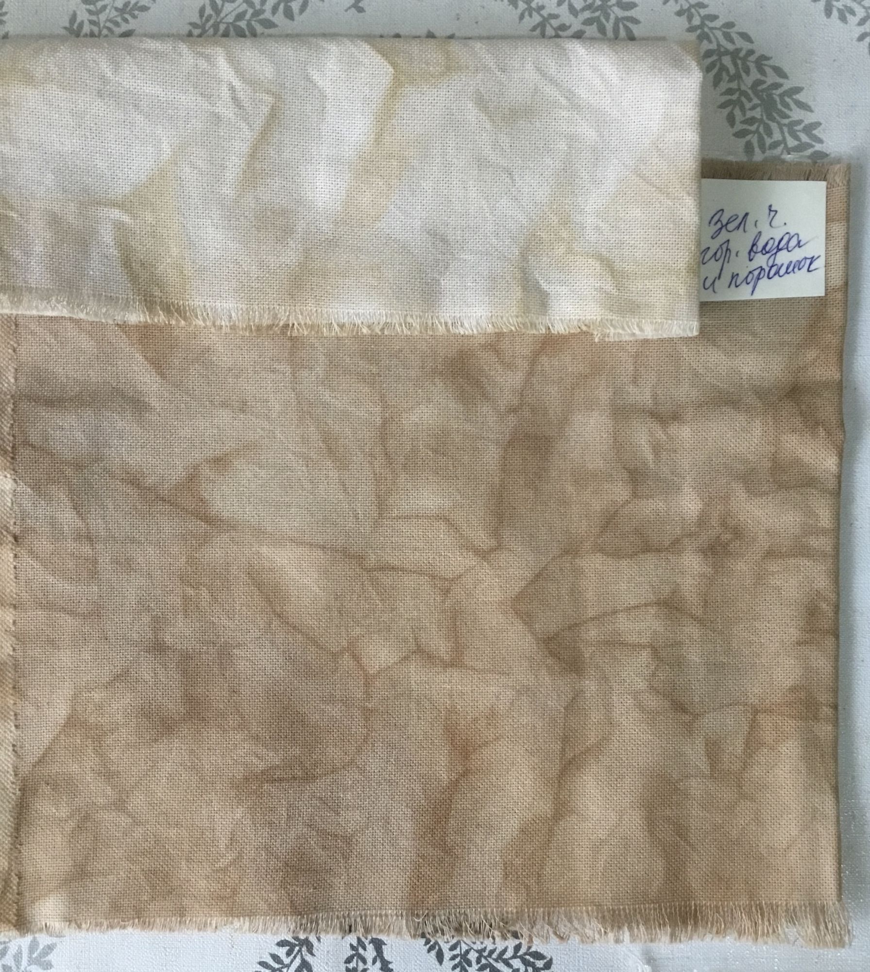26 ноября 2022 24.11.2022 в 20:21, Raduga777 сказал(а): Безумно интересно! Буду ждать с нетерпением! Спасибо за ценные советы! Все фото не для гаечки Наташа, как я вам и обещала, покажу несколько кусочков по окраске и разницу в цвете и заломах . Это то, что получилось у меня……. чай Ройбош ткань сохла в смятом виде корица Кофе Чай чёрный этот верхний кусочек запекался в духовке и линии более выраженные интересный эффект получился со стиркой: зелёный чай обычно даёт светлые оттенки . Сверху кусочек, который просто покрашен в растворе зелёного чая, а нижний постиран сразу в горячей воде со стиральным порошком. Он сразу стал темным во время стирки. Что повлияло не знаю точно, больше пока опыт не повторяла Здесь все кусочки вместе и видна разница оттенков…. Можно выбрать, какой оттенок ближе к нужному для сюжета Теперь о применении соли 15 часов назад, Raduga777 сказал(а): Интересно, получится ли у меня эффект "снежинок", если, например, покрашу ткань в голубой цвет акрилом, а потом (наверное, до высыхания краски?) посыплю сверху солью? не уверена, что можно получить эффект снежинок. Вот этот кусок покрашен акриловые для батика ( два тона : основной светлее и потом размазня кисточкой более темными пятнами) и потом посыпала солью достаточно много получились крупные потеки . Лежало с солью до полного высыхания. А вот этот просто экспериментальный кусочек, чтобы на одном увидеть разницу эффектов Покрашено все в один тон. Краска не очень яркая, потому что красила какими-то остатками, чтобы посмотреть эффект от соли. Потом верхняя часть была расправлена и на неё насыпала соль , но не большими кучками, а достаточно мелко, но свободно. Нижнюю часть смяла просто руками как попало без соли . Немного соль попала в складки перехода ровной части в смятую. Сверху видны мелкие капельки потеков от соли ( снежинки у меня точно не получились). Надеюсь, что не очень утомила длинными рассказами. Gala83, kreolka, PrimaN и 14 других сказали спасибо Поделиться сообщением Ссылка на сообщение
