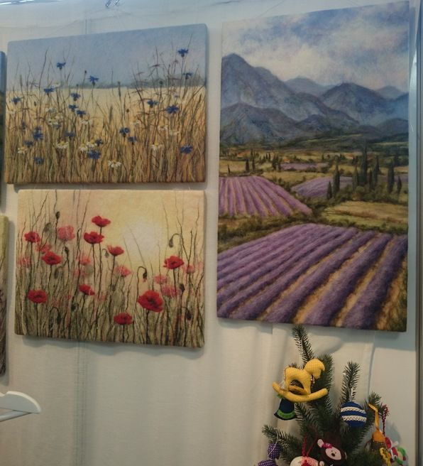 19 декабря 2016 Девочки, в эти выходные у нас проходила ярмарка мастеров "Млын". Вот я половину воскресенья там и проходила. Попробую показать, чем мы живем и какие у нас рукодельные забавы "в моде". Пожелуй, начну с того, что вышивки практически не было. В нескольких местах продавали минимальное количество ниточек и наборов и небольшие вышитые салфетки Очень меня порадовали стендики с мылом Огромное количество поделок валяния шерсти от огромных картин, которые мне очень нравятся Всевозможные валяные игрушки Очень порадовали прикольные носки, тапочки, шарфики и шапочки для детей: огромное количество изделий из металла: Всевозможные куклы от довольно миленьких ангелов до откровенно мультяшных страшилок на любителя: Очень много рисованных картин и досок: Масса бисерных украшений: Немного объевшиеся коты: керамика кожа подушки дощечки В общем, сделала около сотни фоток. Конечно, подарки купить к НГ можно было. irisheckin, Хорошуля, Путешественница и 22 других сказали спасибо Поделиться сообщением Ссылка на сообщение