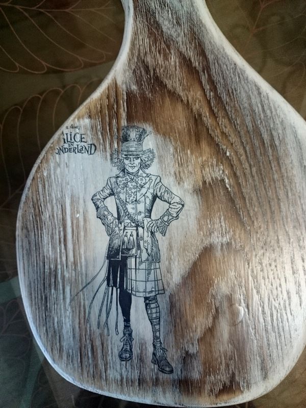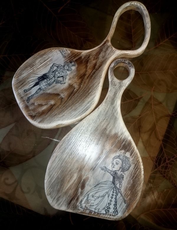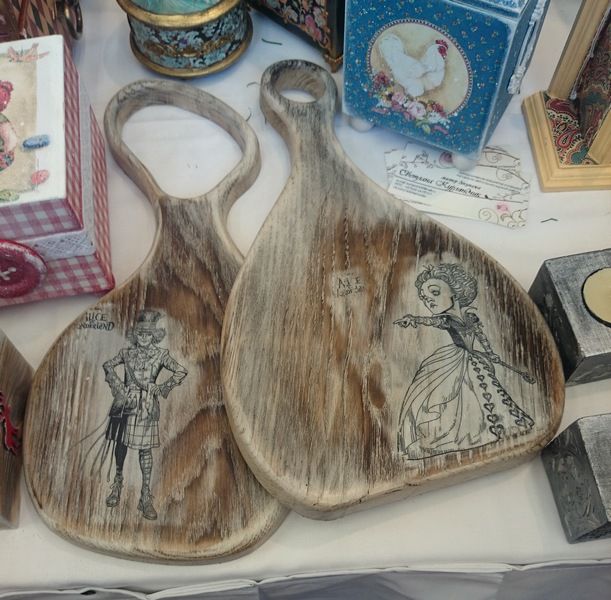 19 декабря 2016 Ну и естественно не удержалась и купила пару штучек себе-любимой. Очень люблю дерево. Я его готова руками гладить бесконечно. Доски покупаю практически везде, где быва. Вот и тут не удержалась и купила две кухонные дубовые дощечки. Да еще как только увидела сюжет, так и не смогла отойти от прилавка. Вот мое очередное кухонное приобретение: Был последний день выставки и осталась только Королева и Шляпник. Но какой же там тонкий рисунок!!!!! Весь вечер разглядывала и радовалась. Ну и еще купила в подарок шерстяную сову собирательнице сов . Такой приятный и уютный шарик в руках!!! Мммм.... mamatata, АриЯ, Catopuma и 19 других сказали спасибо Поделиться сообщением Ссылка на сообщение