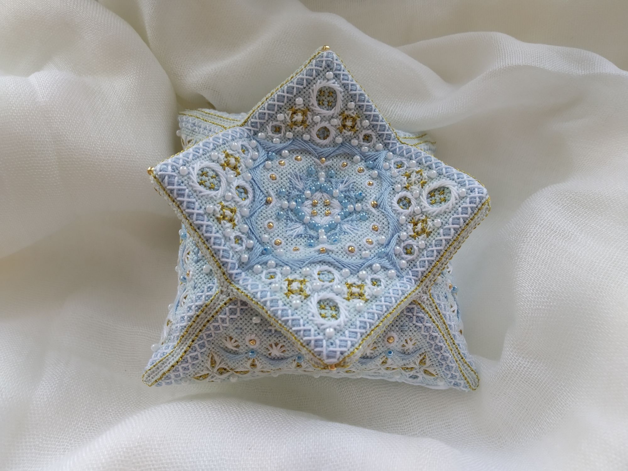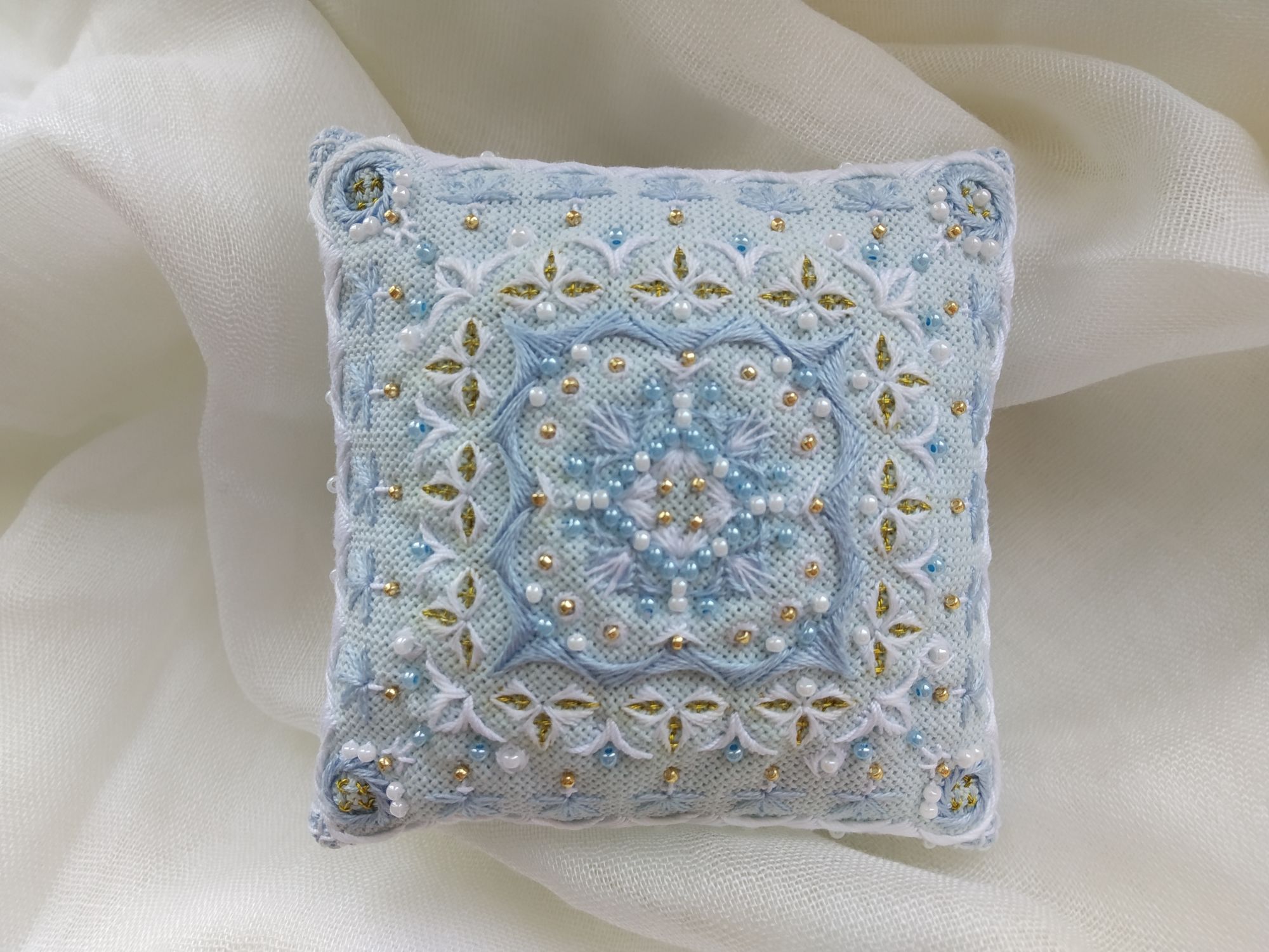 11 сентября 2019 Вышилась у меня подушечка для колец по схеме Ксении Дмитриевой. Основа Линда 27 ct цвета голубой лед, ниточки Гамма и Canaris, бисер МиллХилл 11/0 и 15/0, металлик - люрекс Аллюр (кстати, по качеству очень похож на металлик, который вкладывает в наборы Dimensions). Схема и описание швов мне не очень понравились, новичкам я бы не советовала. Г@лина, Евгения Чичкова, niksi и 16 других сказали спасибо Поделиться сообщением Ссылка на сообщение