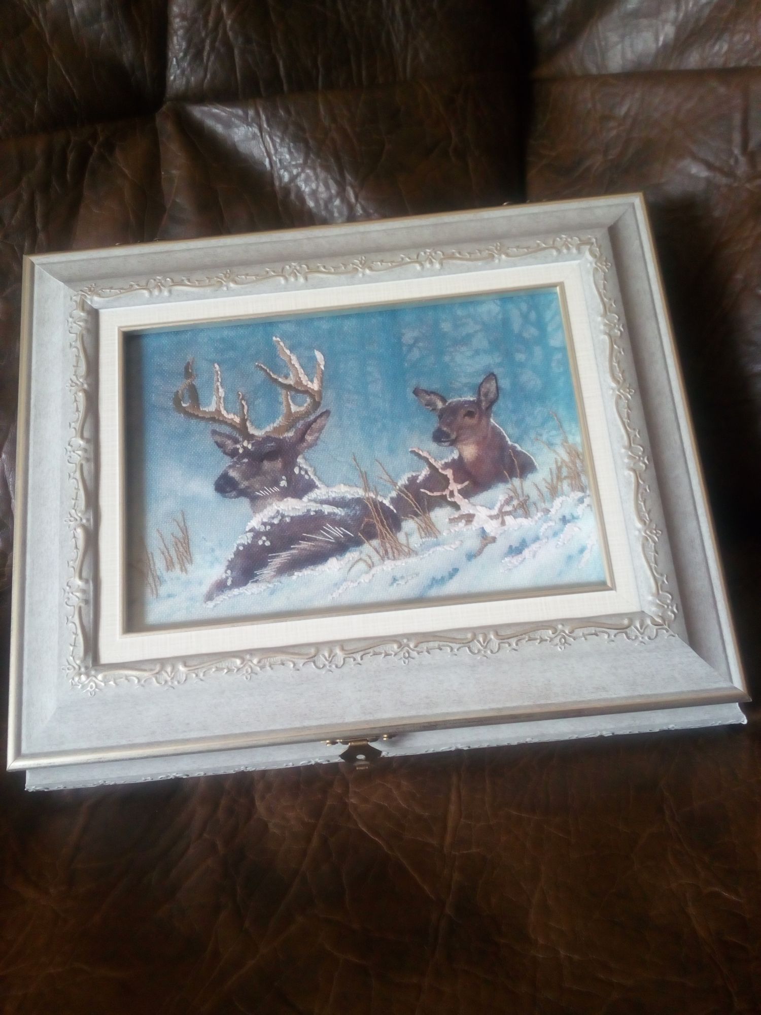 4 августа 2020 Вот это олени от Дименшенс, фотографировал по моей просьбе багетчик. И оформились тоже в шкатулочку. Наверное, гладью вышивать понравилось, но крестиком удобнее, что ли:) Закончила два мини-цветочка от Панна "Синие розы". Разный каунт канвы, в одном случае канва тонированная. Пожалуйста, позелените гаечку с розами. И еще один долгоиграющий процесс завершила: Жук от Риолис. Больше года его шила. Тоже прошу позеленить гаечку. Цветочки и автомобиль отдаю на оформление. Tata44, Egelia, Lady_flame_))) и 1 другой сказали спасибо Поделиться сообщением Ссылка на сообщение
