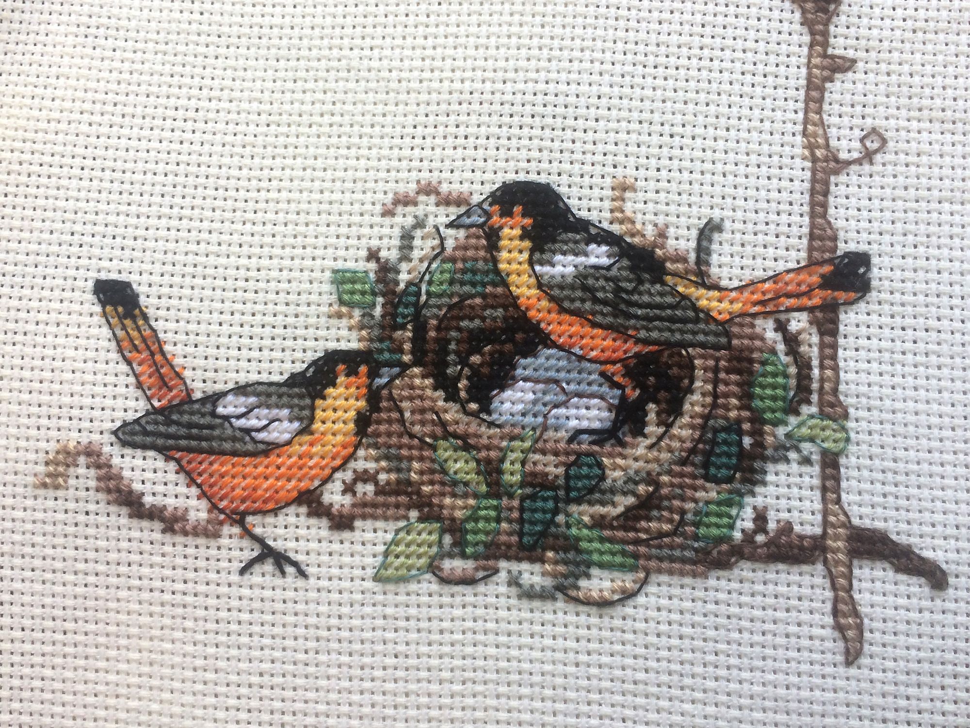 21 февраля 2018 Всем доброго дня! Нежданно-негаданно принесла отчет, который я торжественно нарекаю отчетом плохих (и даже чудовищных!) фотографий, но я очень надеюсь, что вы немножко соскучились, а потому закроете на это глаза (подобно тому, как кольца пялец закрыли глаз волчку-дурачку ) (шютка!) Ладно, шутки в сторону, показываю, чем я занималась в последнее время. Хвастаться особо нечем, но картинок много, так что поехали! Волчок. Маленькое серое чудовище у меня сейчас в приоритете. Шьется в целом достаточно просто, но последние пару дней мне что-то начало казаться, что я совсем не продвигаюсь было - стало - стало - стало На работе шью Птиц из 31 робина. Практически закончила - один сюжет осталось оббэкать и еще один - вышить полностью. Надеюсь, что загруженность позволит это дело закончить в обозримом будущем. как было, показывать не буду, сразу стало-стало-стало: (все для гаечки) Хорошие птички, мне очень нравятся. Цветов мало, схемы не замороченные, а получается невероятная красота. В рамках 32 робина Аня @Ан4оус вышила для меня еще одно одеяло для Autumn Quilts: Много времени занял заключительный сюжет из 27 робина - французское пирожное для Насти Sweet coffee: (не для гаечки) Я намучалась не столько вышивать само пирожное, сколько - складывать и сворачивать ткань, потому что это, девочки, скатерть: Я не сподобилась посчитать точный каунт, но крестики по размеру похожи на 16, то есть, наверное, 32. Лен достаточно рыхлый слеповатого оттенка - шить можно было только при хорошем свете. Первые крестики шли с огромным трудом, а потом втянулась и на больничном дошила за пару дней. Не считая немного нездорового цвета глазури, скажу, что мне очень понравилось. Результат очень крутой! Моя мама втихаря вышила мне подарок на день рождения, Ирисы от Алисы: Я в таком восторге, это что-то! рама очень красивая, немного потертая, светлая, нарядная... льняное фактурное паспарту... кант... очень, очень нравится! Хотя больше всего поражает, как за полгода мама умудрилась ни разу не проколоться, что она что-то для меня вышивает Ну и в завершение - кошачья любовь! Подобные моменты милоты и спокойствия настолько редки, что я не смогла выбрать лучшие фотографии, все они, на мой взгляд, совершенно очаровательны На этом все, новости закончились. Спасибо, что заглянули! Не болейте! Обнимаю, ваша И. snowflake, Selenia, Mizeri и 30 других сказали спасибо Поделиться сообщением Ссылка на сообщение